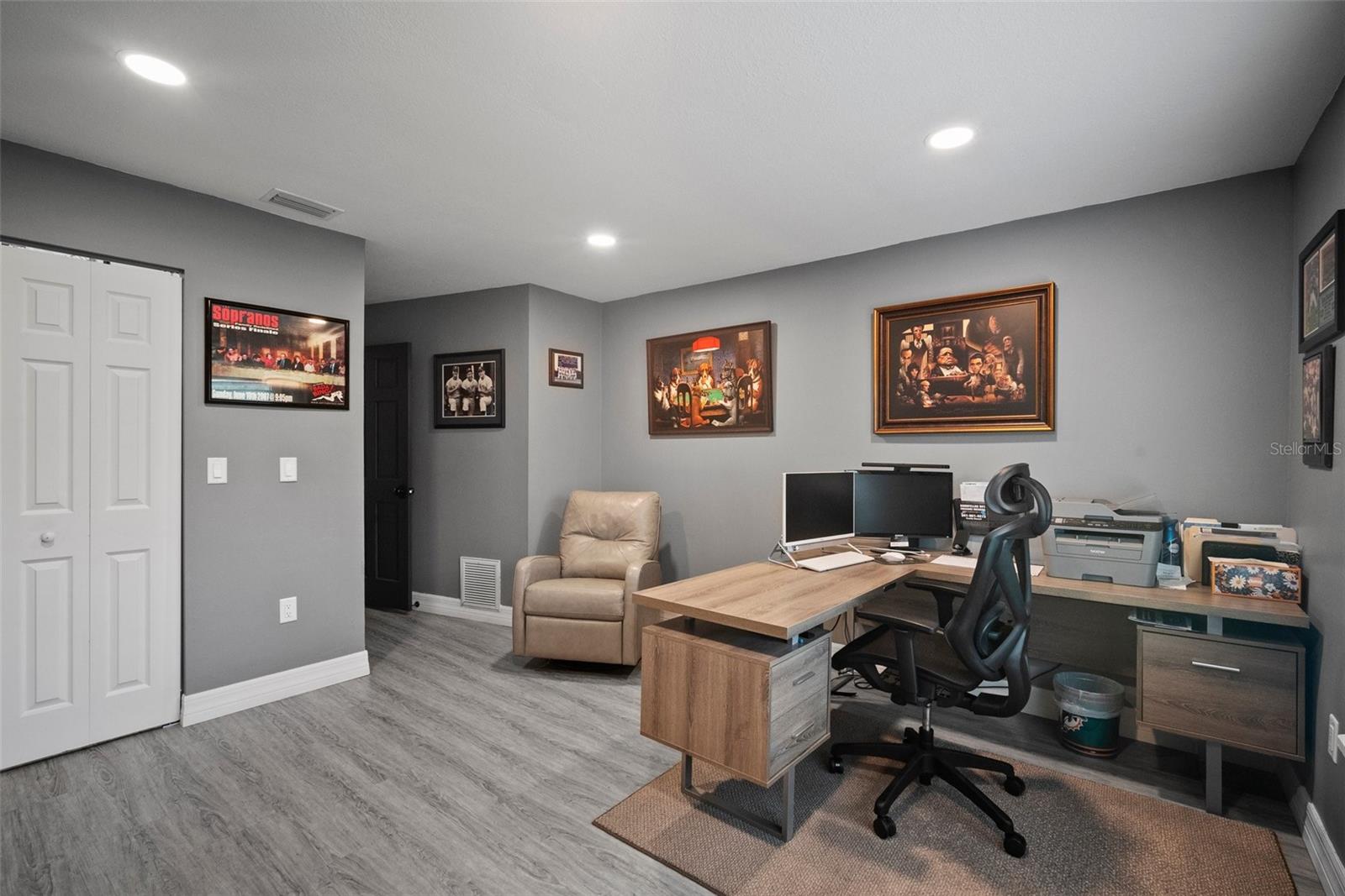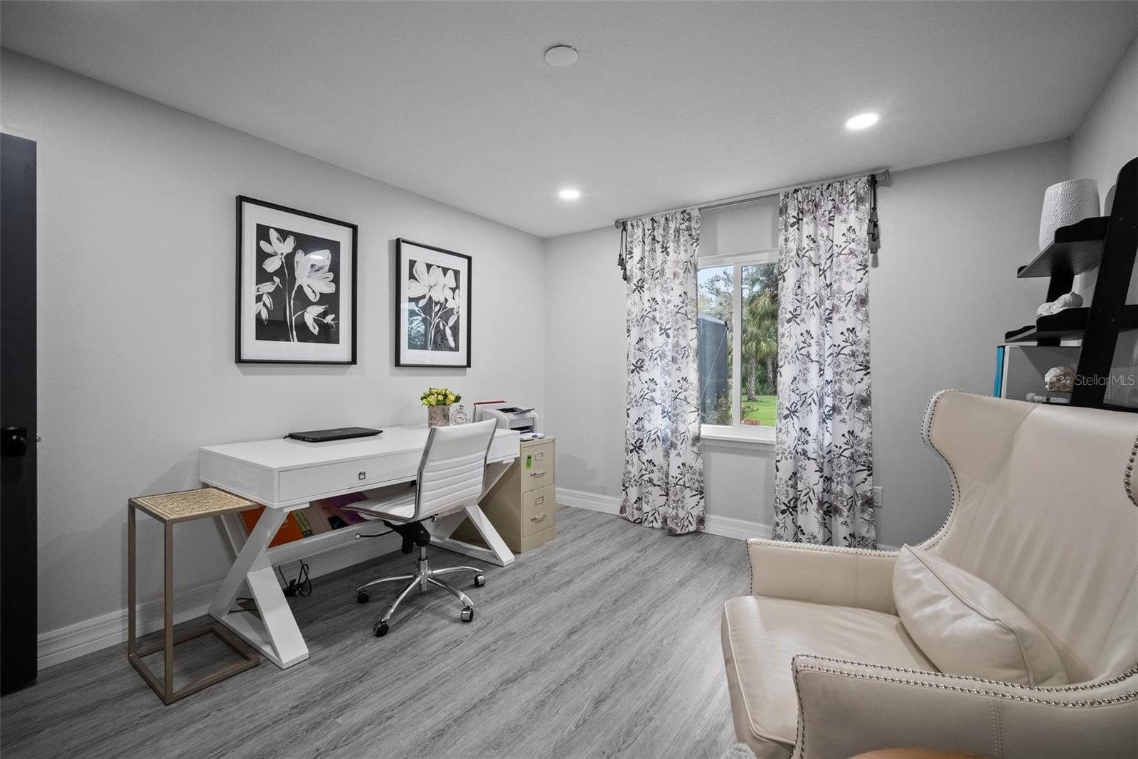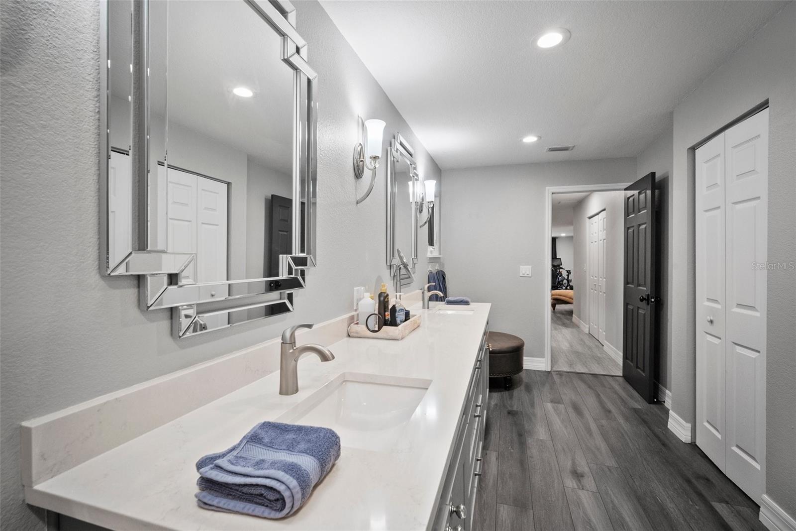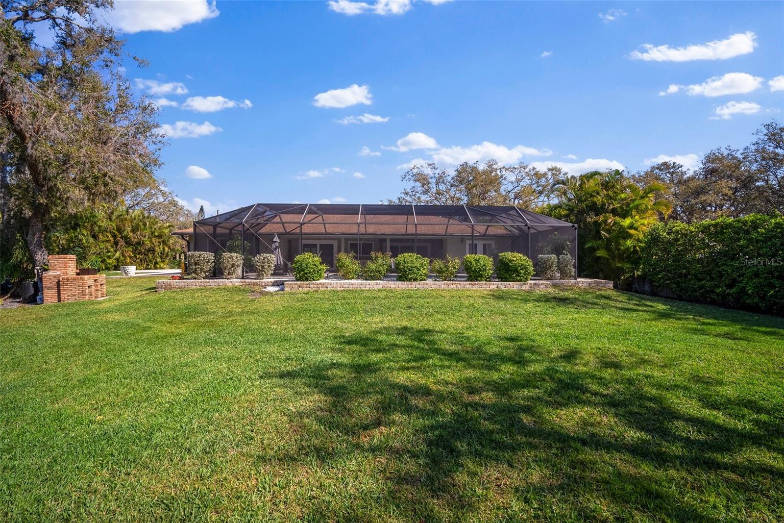 Town & Country come together in this most sought after community known for it's majestic Oaks, beautiful lakes and large home sites. This gem is situated on the largest of the lakes with over 300 ft of water frontage and sits on 1.15 acres. Completely upgraded, 4 bedrooms, 2 bathrooms with a split floor plan. As you enter the double doors you will see this home is special and inviting. Enjoy butterflies, and nature through the screened in foyer located off the family room. Custom kitchen features solid wood cabinets, an extended quartz counter, island cook top with vented hood. Tons of counter space make for great family entertaining. Enjoy the lake view from the screened in lanai with extra large pool. The extended Primary Suite has two custom walk in closets, primary suite bath with dual sinks and large shower. Shwinco Hurricane impact windows and doors, new garage door motor and insulated. Private guest wing provides spacious rooms with EnSuite bathroom with large Kohler soaker tub. This is an amazing homesite with spectacular sunsets, mature landscaping, and breath taking water views. Professional landscape lighting. Minutes to I75, great schools, fine dining, entertainment, and shopping.