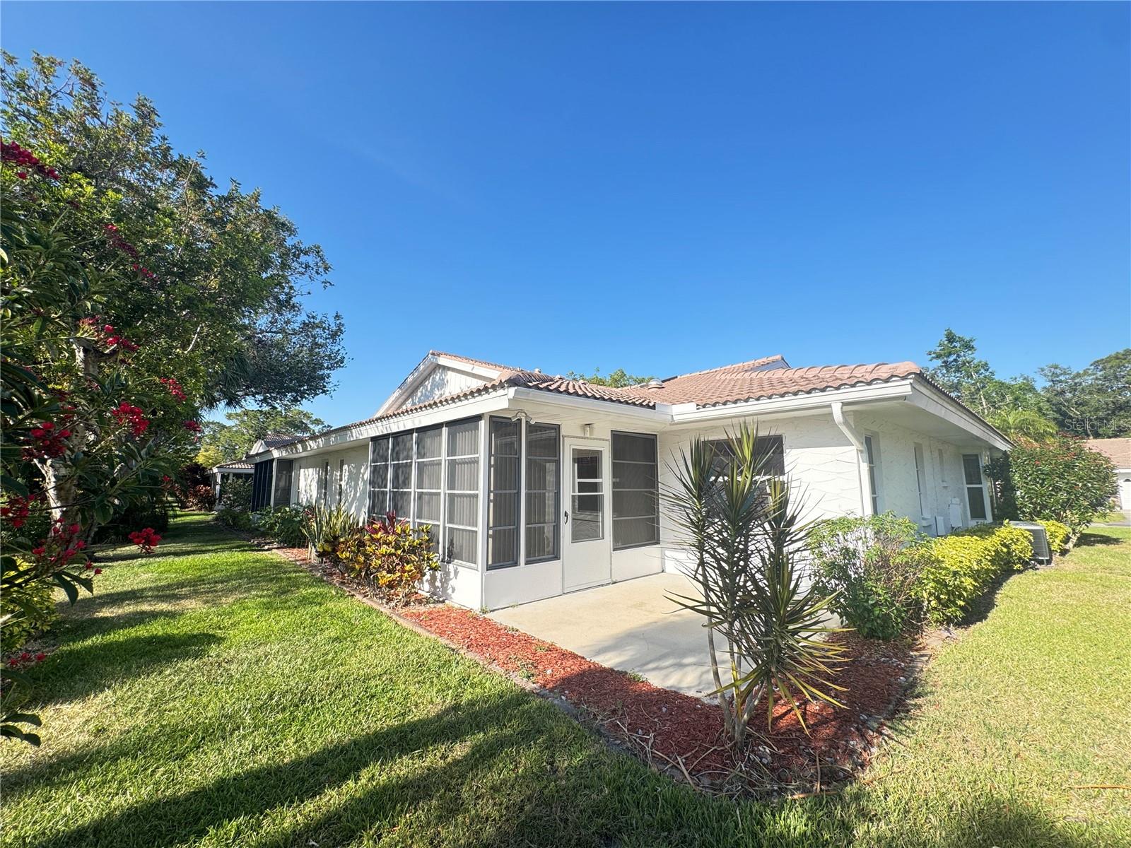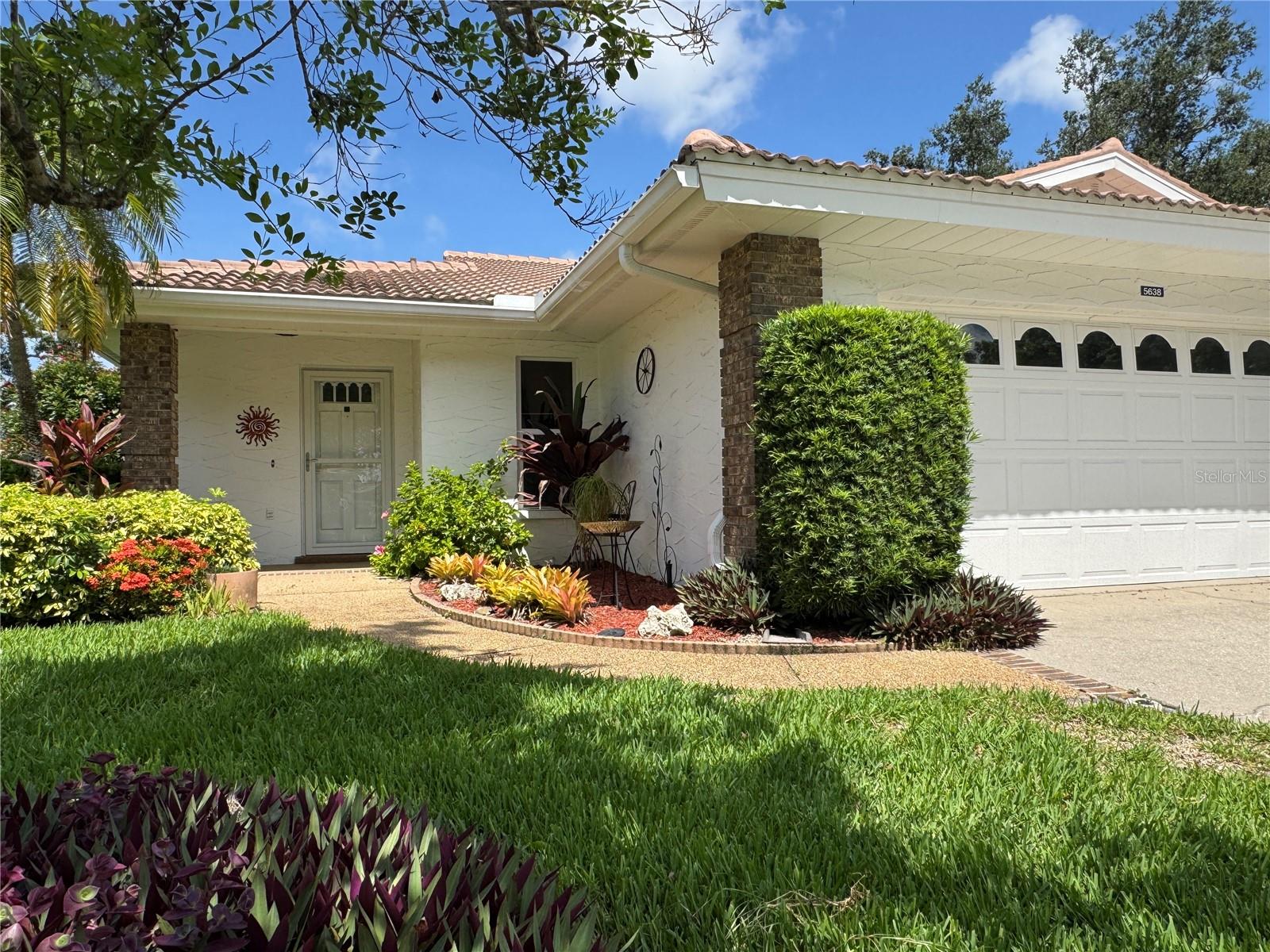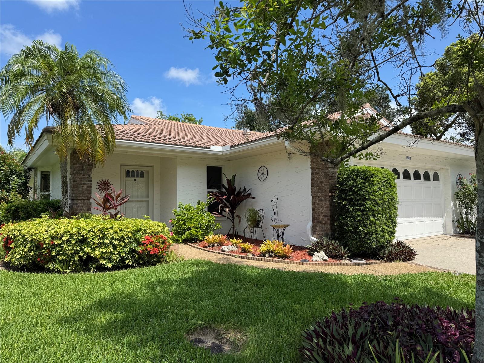 Tucked beneath grand oaks and surrounded by lush, manicured landscaping, this inviting villa feels like a private retreat—but comes with a vibrant social life just steps away. Inside, the open layout flows naturally from the living room to the dining area and into a cheerful kitchen, complete with a spacious pantry, center island, and cozy breakfast nook—perfect for casual bites or coffee with a friend. The smart split-bedroom floor plan offers privacy for you and your guests. The primary suite features direct access to the enclosed Florida room, so you can greet the day with tranquil views or unwind in total comfort. Your guests will love having their own wing, complete with pocket door privacy and a separate entrance to the Florida room. Multiple skylights bathe the home with cheerful, natural light. The air-conditioned Florida room offers flexible space for hobbies, reading, entertaining, or simply relaxing in year-round comfort. The garage offers lots of built-in storage to keep all your tools and equipment neat and organized. Step outside and choose your pace— the tranquil, gated Garden Lakes neighborhood offers something for everyone! Enjoy meeting up with friends and neighbors at the newly renovated clubhouse with full kitchen & dining facility, dance floor, library, meeting rooms, and a calendar chock-full of social events. Stay active and fit with the heated pool, fitness center, pickleball and tennis courts, shuffleboard, or explore the walking trails under shady trees. Conveniently located near shopping, dining, medical care, and entertainment—with easy access to University Town Center, I-75, and the beautiful Gulf beaches—this home checks all the boxes. Plus, with no CDD fees and low-maintenance living (including lawn care, landscaping, irrigation, cable, and internet included), you can spend less time on chores and more time enjoying life! This is your chance to embrace Florida living at its best. Schedule your private showing today.