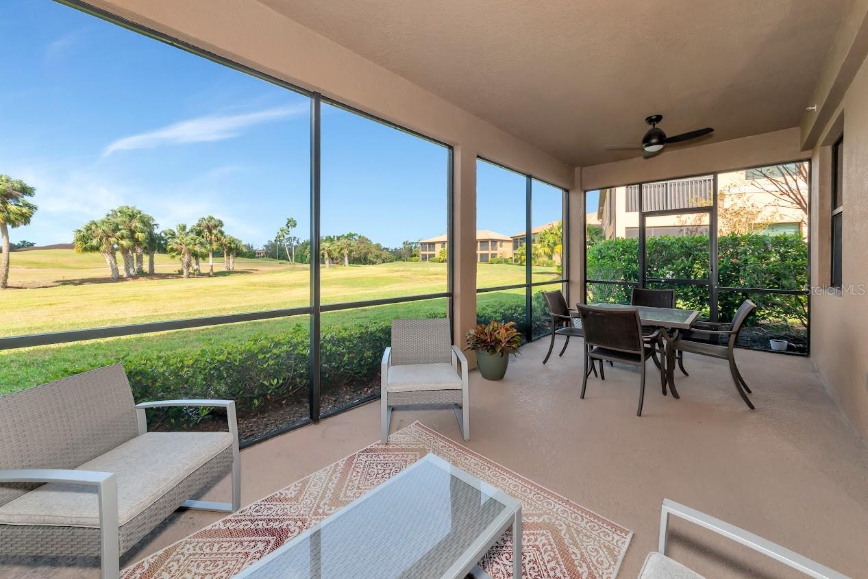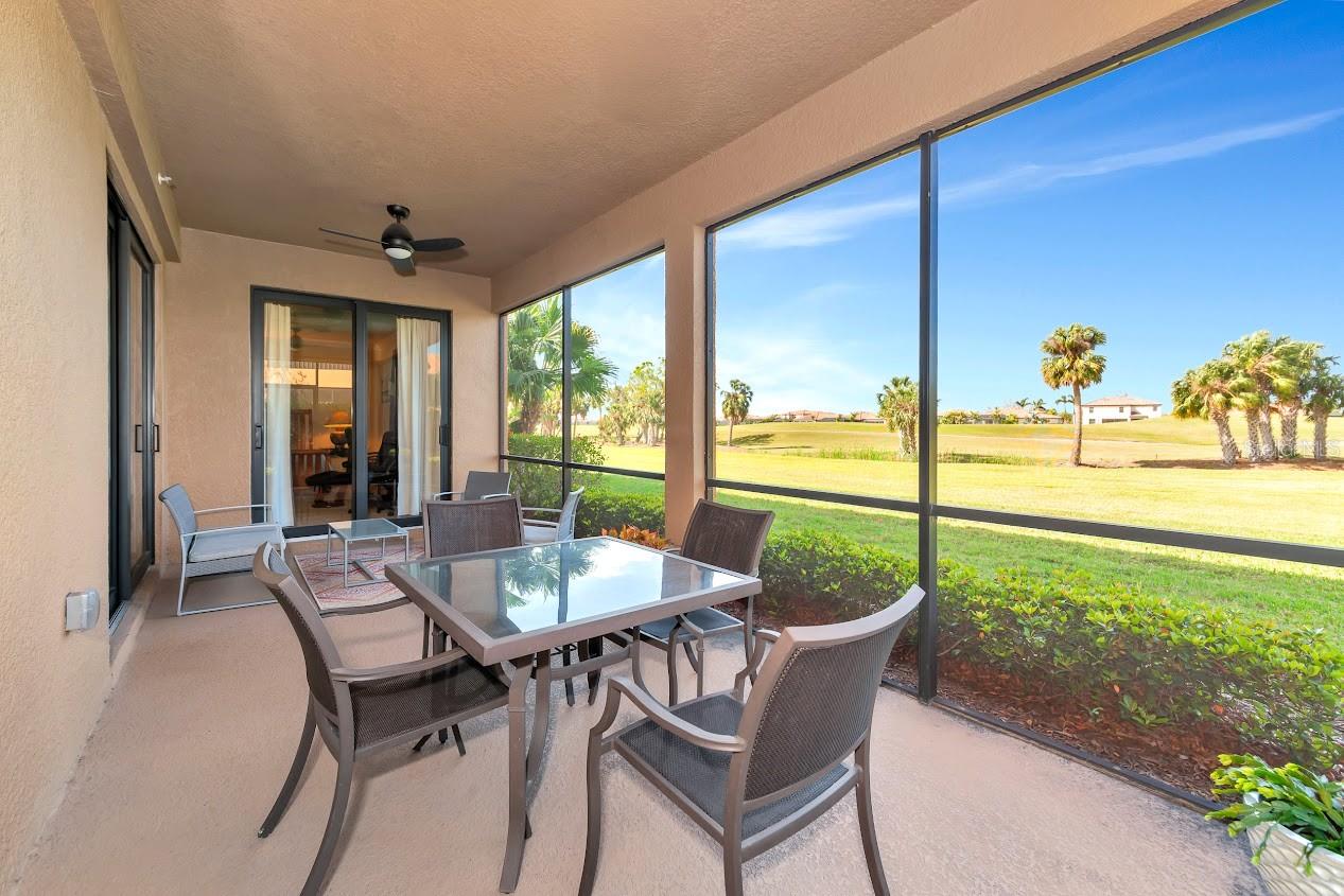 Don't be left out in the cold with winter. Now is the time to buy when the market is HOT for buyers. PRICE REDUCED & READY– GOLF MEMBERSHIP AND GOLF CART INCLUDED! Welcome to your turnkey-furnished 3-bedroom, 2-bath coach home in the highly sought-after River Strand Golf & Country Club – with a deeded golf membership and golf cart included (with 6 brand-new batteries) with a full-price offer! Stay Cool this summer with a freshly upgraded HVAC system installed in 2024. Enjoy stunning, uninterrupted views of the 2nd green of the Sanctuary Golf Course from your covered, screened lanai – perfect for morning coffee or relaxing sunsets. You'll love the peaceful setting with lush greenery and gentle golf course activity, plus the community pool just steps from your front door. Inside, the open-concept living and dining area offers great natural light and flexibility for entertaining. With 9’4” ceilings, the space feels airy and inviting. The split bedroom floor plan ensures privacy for you and your guests, and the cozy dinette is ideal for casual meals, a reading nook, or even a home office. Living in River Strand is like being on vacation every day! In addition to championship golf, residents enjoy tennis, pickleball, fitness centers, multiple pools, and a full social calendar: book clubs, games, arts & crafts, and more. Bonus: Buy now and enjoy future value with a newly renovated Clubhouse and Tiki Bar. Don’t miss this opportunity to live the resort lifestyle year-round. Schedule your private tour today!
