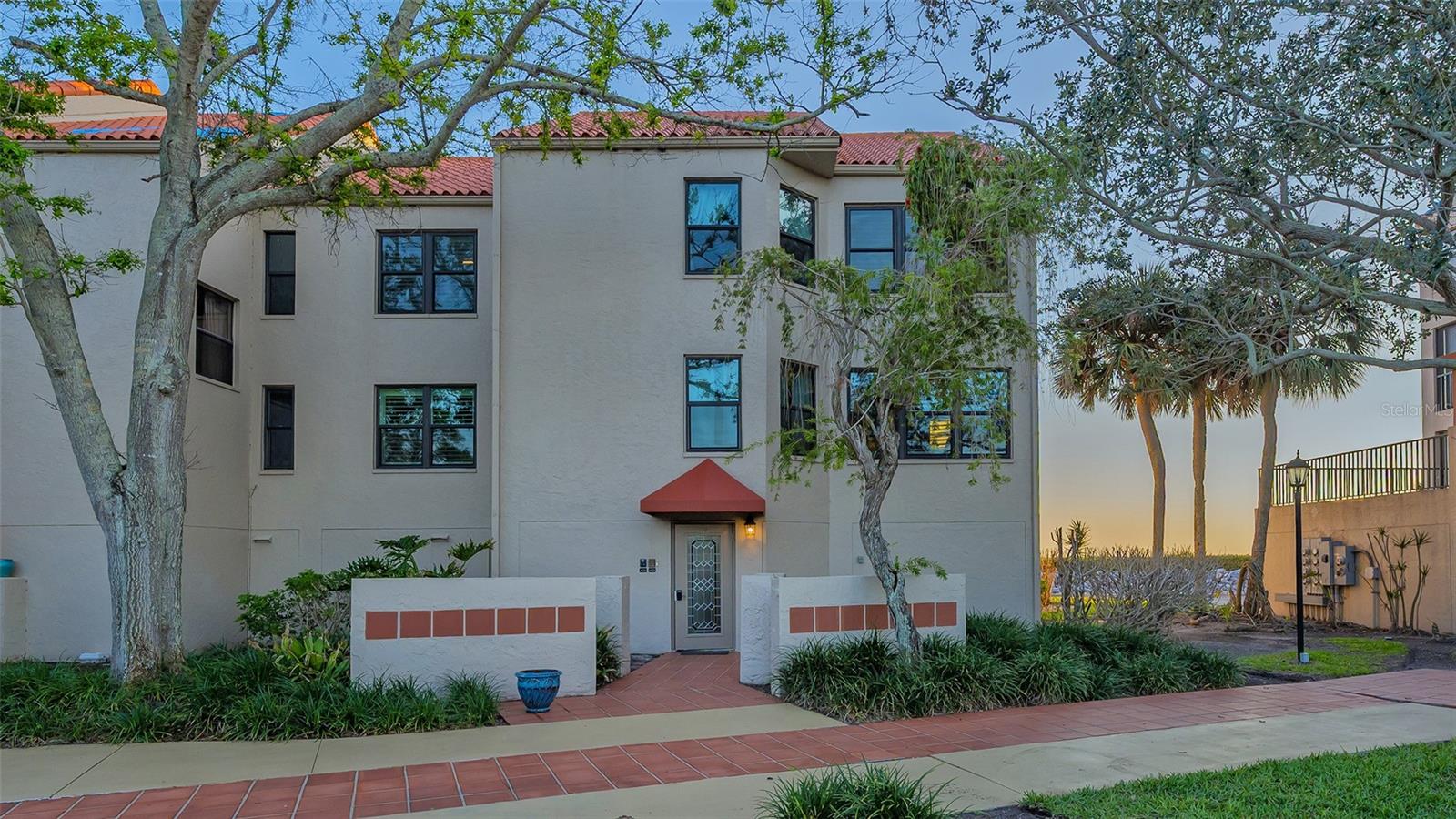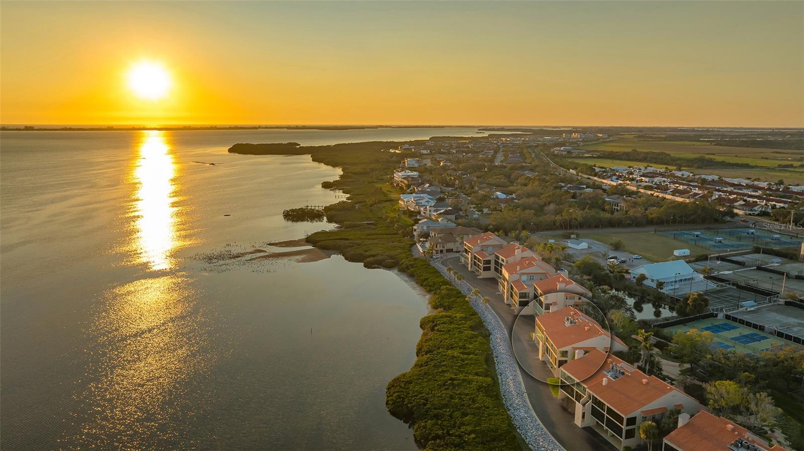 Waterfront views without the waterfront stress? This is the one! Luxury elevated living directly on Sarasota Bay offers stunning waterfront views with mainland convenience and peace of mind. Impact windows, brand-new roofs just installed, milestone structural integrity inspection passed, and association reserves funded (per reserve study). Private two-car garage plus ~250 sq ft of climate-controlled storage on the ground level. Take the private elevator up (no stairs required) to the single-level living area perched directly on Sarasota Bay. Soaring vaulted ceilings with tongue-and-groove finishes, plantation shutters, and a wood-burning fireplace make the Great Room the heart of this 2,100 sq ft coastal retreat, where natural light and breathtaking bayfront views take center stage. This peninsula-like vantage point ensures extraordinary, uninterrupted views — golden sunsets can be enjoyed from the enclosed patio, the formal dining room, and even while standing at the kitchen sink. The enclosed patio offers amazing flexibility: 350+ sq ft with sliders open for a fresh bay breeze or closed with the dedicated AC split system for comfortable water views in all seasons. You simply must see the Downtown Sarasota skyline and Ringling Bridge lit up at night. An updated kitchen with a tasteful coastal ambiance features a custom Italian glass backsplash and premium Bosch dual wall ovens. Tucked away from the entertaining space, the primary suite offers its own water views and a spacious ensuite. The versatile guest bedroom includes a custom Murphy bed built-in — perfect for visiting guests or easily converted back into a quiet home office. Various interior storage closets, along with a full-size washer and dryer, provide the comforts of a single-family home. Tucked quietly away from busy downtown or barrier island traffic, you’ll enjoy a natural waterfront experience while being just a 20-minute drive to Downtown Sarasota or Anna Maria Island. Conquistador Bay Club is a boutique development with only 28 units spread across five buildings, where residents enjoy a community pool and spa along with private kayak access. The elevated block construction stood strong through the active 2024 storm season, offering lasting peace of mind for years to come. IMG Golf and waterfront dining are just a chip shot away in this quiet, bike-friendly neighborhood. A short drive to SRQ Airport, this residence offers the perfect balance of seclusion and accessibility. Easy to show — reach out to see the remarkable waterfront views in person!