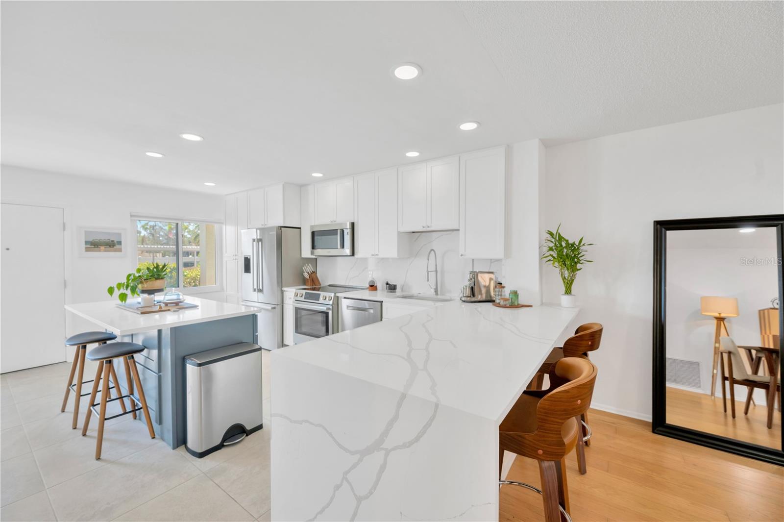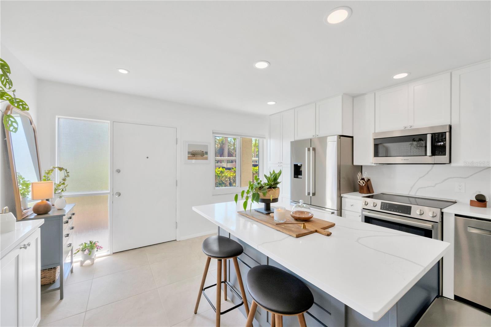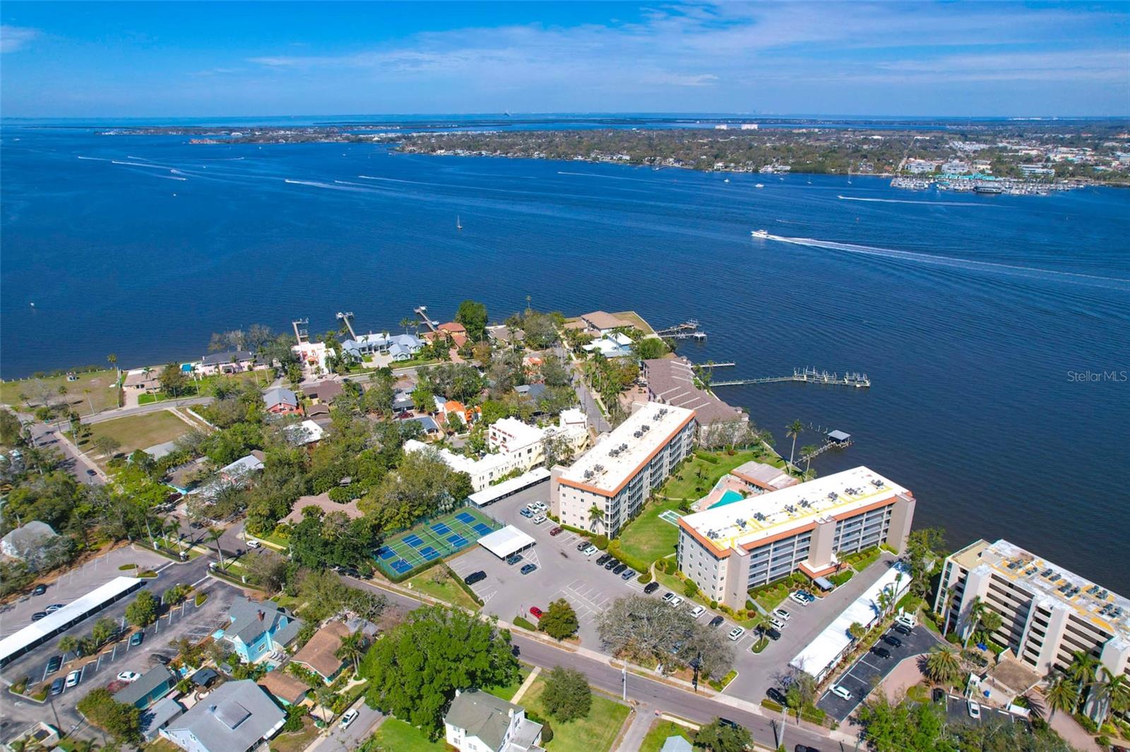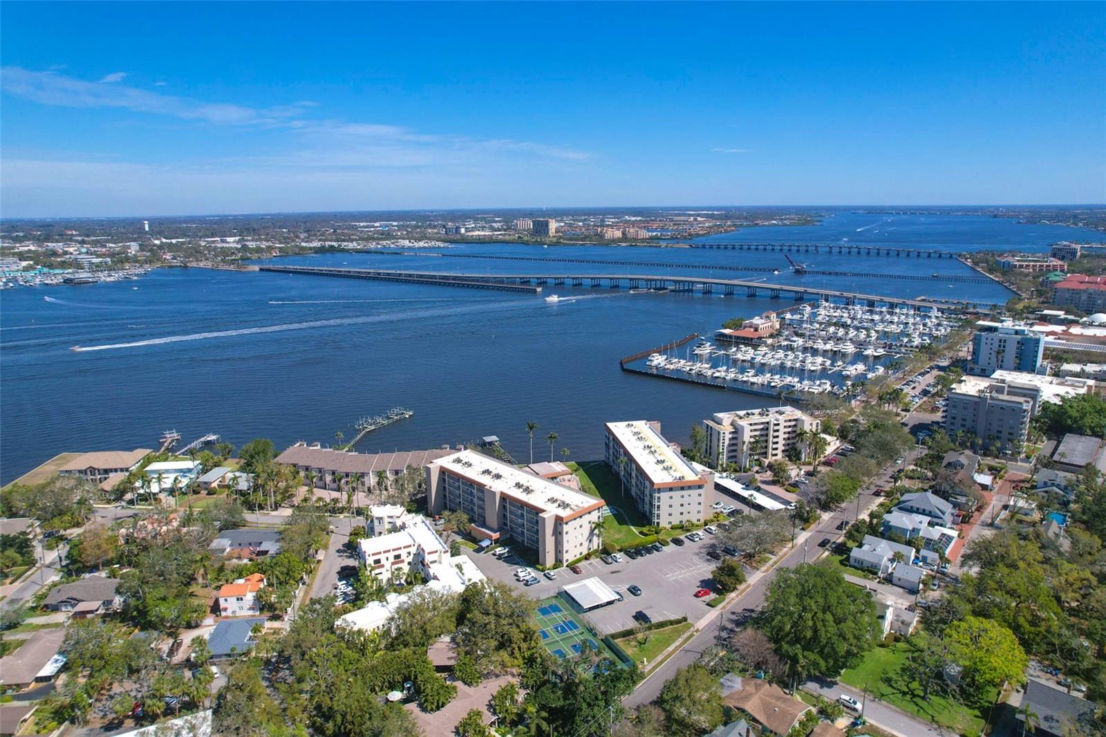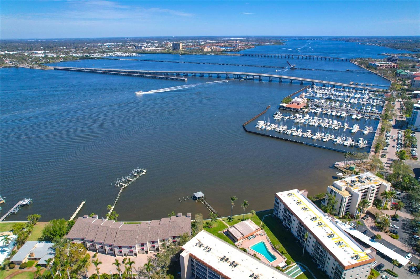 Whether you're dreaming of year round waterfront living or a picture perfect seasonal getaway...This spacious, perfectly maintained 2 Bedroom, 2 Bath Condo, is ready for you. Perched along the banks of the Manatee River in downtown Bradenton, your waterfront views are endless. A tasteful blend of soft contemporary features and natural light brings this condo into a league of its own. You will immediately feel at home in this spacious, recently remodeled and tastefully furnished sanctuary. The open-concept welcomes gatherings and offers a seamless living-dining flow filled with natural light. The kitchen is outfitted with Stainless Steel Bosch Appliances (including a Wine/Beverage Refrigerator) and Quartz Countertops. All windows and Sliders have been upgraded to Hurricane/Impact resistant. There is an enclosed lanai so that you can enjoy the Florida weather year round. The large Primary Bedroom, with Walk-In Closet, is arranged so that you awake each morning appreciating the incredible river views. The Guest Bedroom, currently being used as a home office, is also quite spacious. There is an abundance of storage in the unit as well as a private storage space located just off the lobby. Perfect for year round living or as a seasonal getaway from those FRIGID Northern Winters, River Oaks is ideally located. The monthly maintenance fees are very reasonable, the grounds are impeccably maintained and the landscaping is beautiful. Community features include a heated pool, tennis/pickleball courts, shuffleboard courts and a Clubhouse with GORGEOUS water views not to mention a front row seat for the spectacular 4th of July Fireworks and the annual Christmas Boat Parade. The Sellers are leaving behind 2 new Kayaks, along with the necessary equipment, so you can launch right from the Community grounds and explore the River at a leisurely pace. Conveniently located just west of the Bradenton Riverwalk and Pier 22, the numerous local amenities are all easily accessible either by foot, bicycle or car - Library, Post Office, Banks, Restaurants and Shopping. The BRAND NEW Art Center, Performing Arts Theatre, Bishop Museum of Science and Nature as well as the Farmers Market. LeCom Stadium, where the Pittsburgh Pirates have their Spring Training, is also close by. You can take the Gulf Island Ferry which runs Wednesday through Sunday and is located at the Day Dock on the Bradenton Riverwalk, just a stones throw from the condo and a great way to get to Anna Maria Island via water and not worry about traffic or parking. 8 mile DIRECT route to the Beaches and the Gulf of Mexico. A must-see for anyone searching for the IDEAL waterfront home - schedule your viewing today!