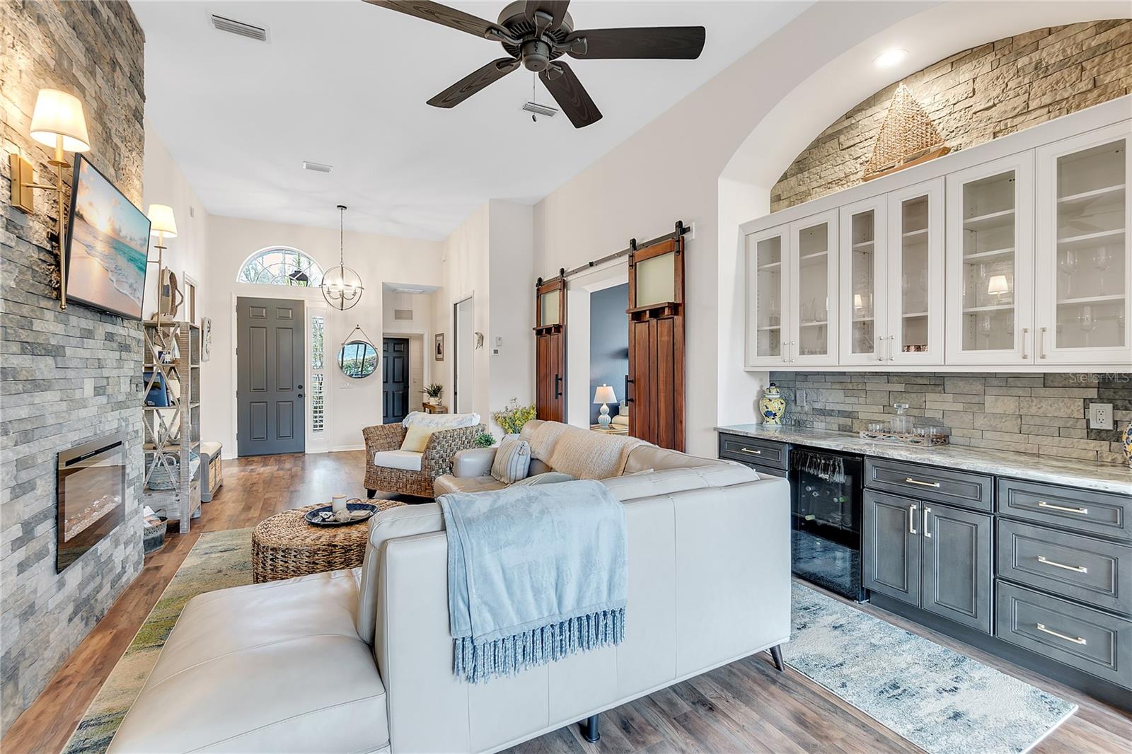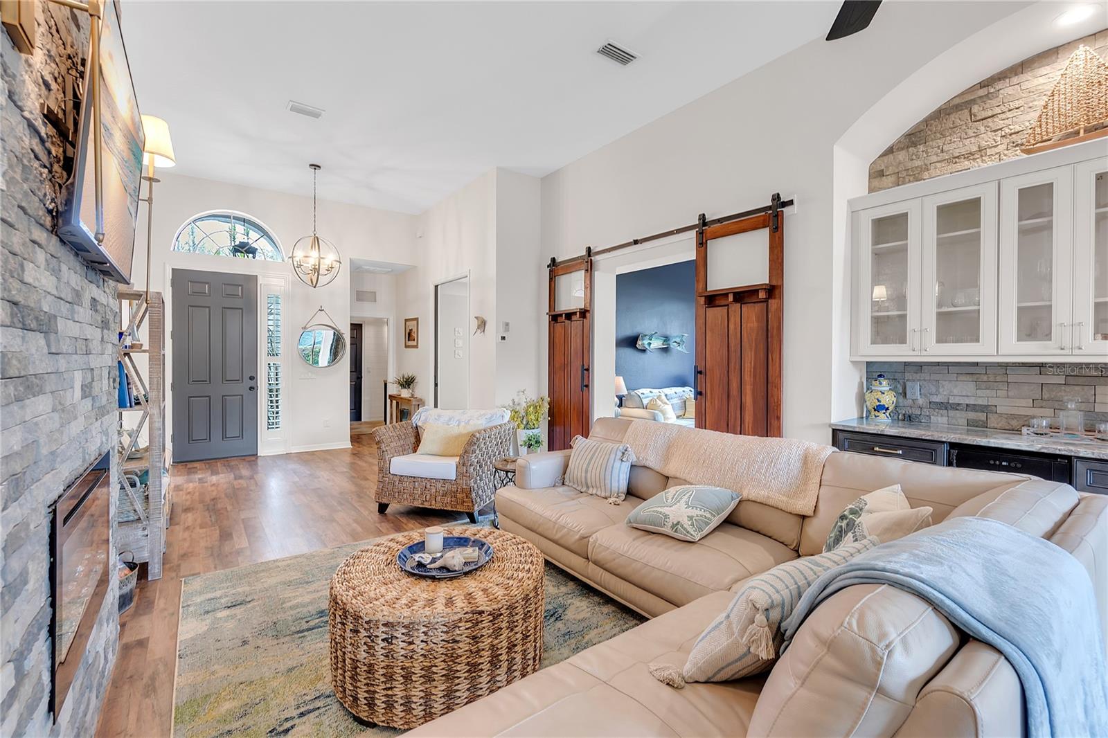 Don't miss this rare opportunity to own a spacious, completely-renovated 4 bedroom home in Harborage on the Braden River. Updates include new roof in 2021, kitchen renovation & AC in 2023, window springs in 2024, built in dry-bar w/ wine cooler & decorative stone fireplace in 2022, exterior paint in 2021 and outdoor patio renovation in 2020. Enter the home and experience the high ceilings/open floorplan perfectly equipped for entertaining. The split floor plan offers separation for a large family or plenty of extra space for guests. Your serene outdoor paved patio and screened lanai is perfect for BBQ's or outdoor relaxing. The Harborage on the Braden River is a resort-style community featuring a marina/boat docks, walking trails, fishing pier, canoe/kayak launch area, gazebo, lakes, exercise room, heated pool/spa, outdoor grill area and Club House that hosts a boasting calendar of community events. This is a true lock up & leave community with gated access & landscaping included in your low HOA dues. This Neal home was built with quality in mind on a protected preserve, come fall in love. Conveniently located near freeways, shopping and great options for schools. Can be sold turn-key furnished!