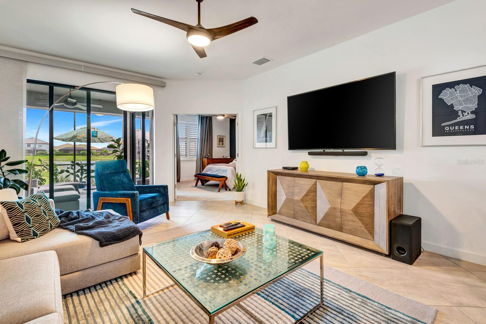 Sellers offering $2500 concessions towards closing costs, 2/1 rate buy down or permanent rate buy down. Put this one on your list and see how it stands out from the others! This lakefront villa is move-in ready and shows like a model home. Easy carefree living in villa located in the heart of the highly sought-after Lakewood Ranch community of Lorraine Lakes. This home offers the perfect blend of comfort and convenience in an amenity-rich neighborhood. The villa features 2 bedrooms, 2 bathrooms and a Den that can be used for a 3rd bedroom, office or flex space. This is not just your Florida home it's the Florida lifestyle. Step inside to discover a spacious and bright interior, featuring an open floor plan that's perfect for both family gatherings and quiet nights in. The large living areas flow seamlessly into the modern kitchen with gas stove, tile backsplash, counter depth refrigerator, making entertaining a breeze. Living room features designer grid wall, and custom sliding panel track blinds. With generous sized bedrooms, updated bathrooms, plantation shutters on the windows and plenty of natural light, this home has everything you need to live your best life. Designer lighting and ceiling fans throughout. This waterfront lot captures stunning sunsets on the extended lanai a feature not all villas have. Beyond the home you will fall in love with the Lakewood Ranch area known for its world class amenities, this community features miles of walking and hiking trails, sparkling lakes, and lush green spaces, this villa is very close distance to the modern Grand Clubhouse, restaurant and bar, state-of-the-art fitness center, full indoor basketball court, cafe, resort-style pool with a poolside bar and second pool for swimming laps, sand volleyball, playground, tennis and pickleball courts, splash pad, and an active social calendar managed by an on-site social director. Nearby shopping, dining and entertainment, plus top-rated schools and a wide range of recreational activities. With a strong sense of community this home is ideal for those who want to enjoy an active lifestyle while living in a vibrant family-friendly environment.
