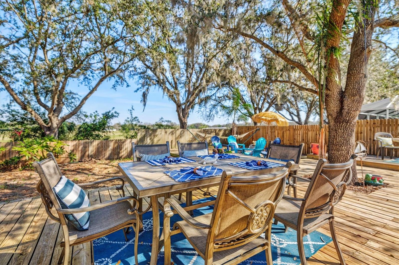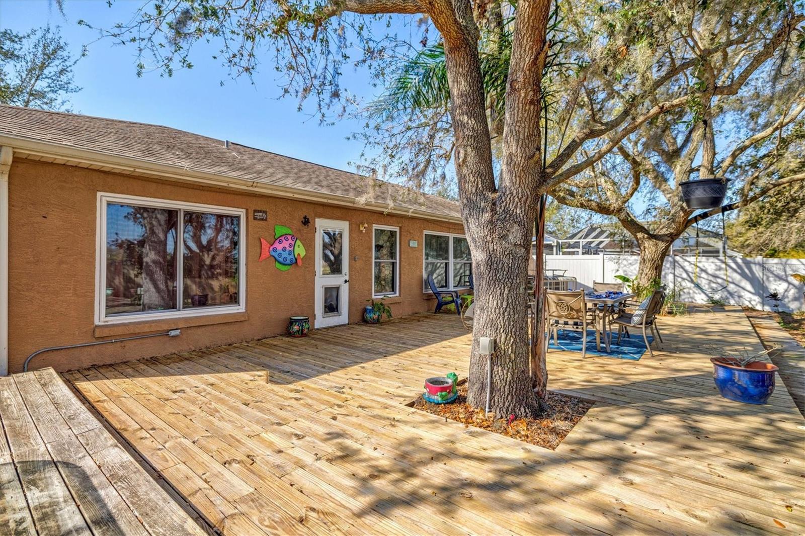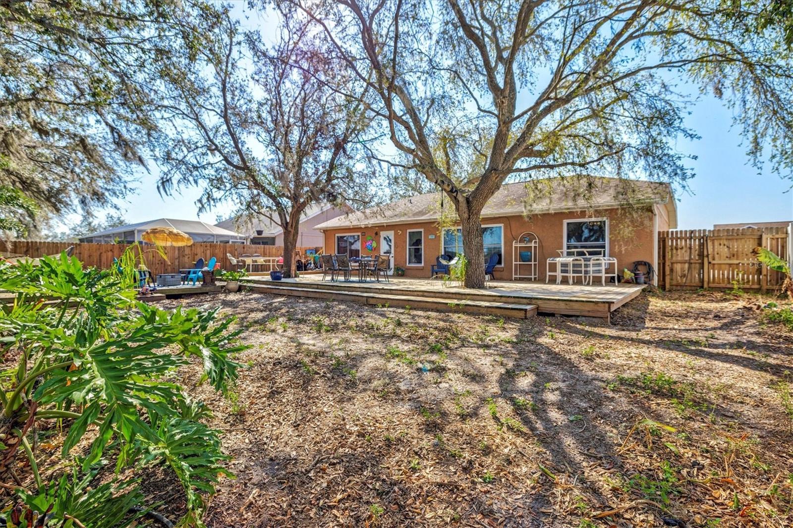 Step inside and discover a home where MODERN UPGRADES, NEW FLOORING THROUGHOUT, NEW INTERIOR PAINT THROUGHOUT, NEW ROOF IN 2018, ALL HURRICANE IMPACT WINDOWS (2020), UPDATED BATHROOMS, AND A MASSIVE DECK spans the ENTIRE BACKYARD! TRULY A MUST SEE! This partially updated home in the highly sought-after Gates Creek community offers everything you’ve been searching for plus LOW HOA fees! From the moment you walk through the STUNNING FRONT DOOR, you'll appreciate the spacious SPLIT FLOORPLAN, designed for both comfort and privacy. The dining area overlooks the inviting living room, creating a warm and open feel. The kitchen is both functional and inviting, featuring AMPLE COUNTERTOP and cabinetry space, a kitchen bar with seating, and enough room for a cozy dinette set. Plus, with garage access conveniently located through the kitchen, bringing in groceries is a breeze. BOTH BATHROOMS have been tastefully upgraded with stylish tile and flooring, giving them a fresh and modern look. MAJOR IMPROVEMENTS have already been completed, including a NEW ROOF (2018) and ALL IMPACT WINDOWS (2020), ensuring durability, energy efficiency, and peace of mind. But the true highlight of this home is the INCREDIBLE BACKYARD—an entertainer’s dream! A MASSIVE DECK spans the ENTIRE BACKYARD, offering the perfect space for gatherings, outdoor dining, or simply unwinding in the shade of the private, mature trees. Overlooking a serene pasture, this outdoor retreat makes it feel like you’ve stepped into your own secluded paradise. Location is everything, and Gates Creek delivers! This home is just minutes from top-rated schools, shopping, and dining, with the exciting Marketplace at Heritage Harbour currently in development, bringing even more retail and restaurant options to the area. Plus, easy access to major highways makes commuting a breeze. Don’t miss your chance to make this beautifully upgraded home in Gates Creek for well under $400k!
