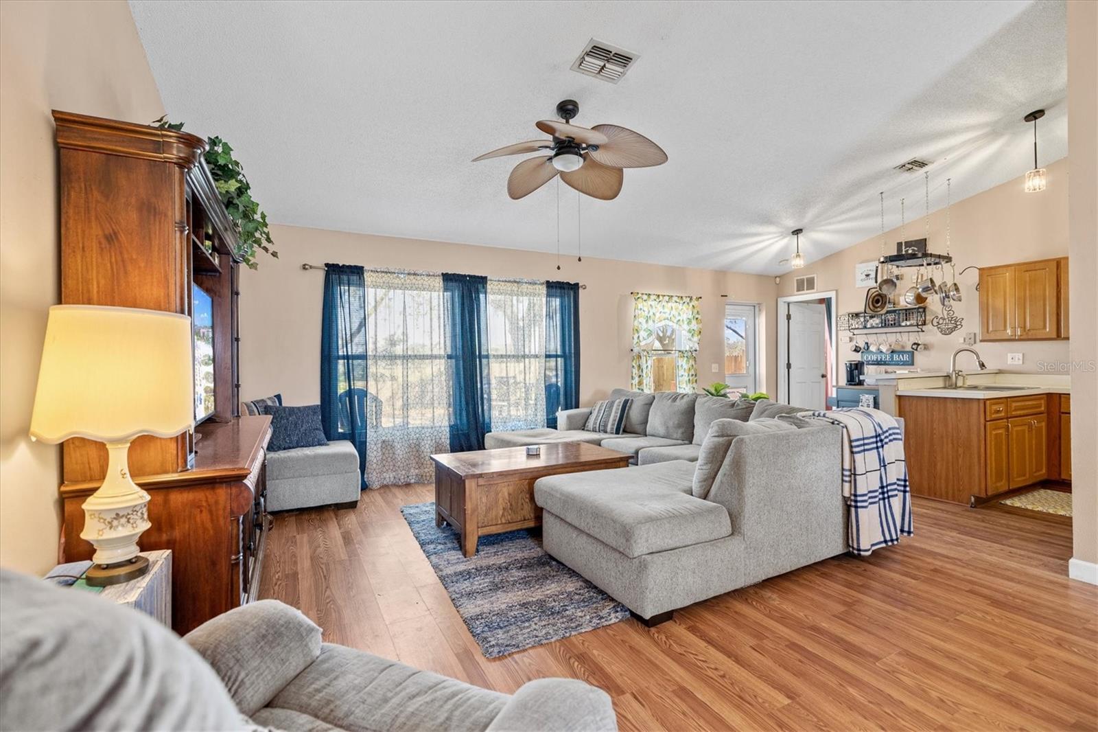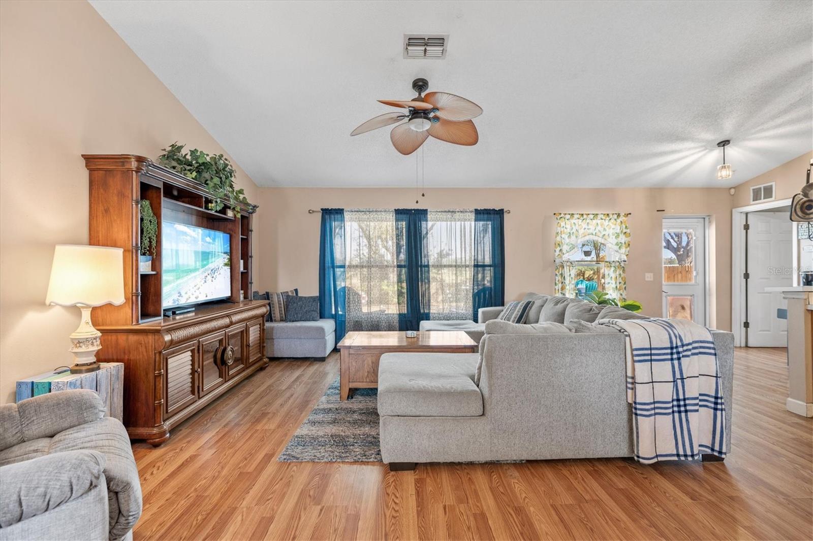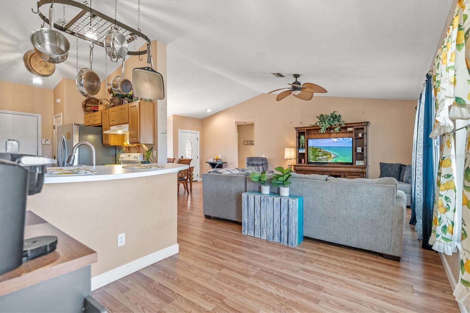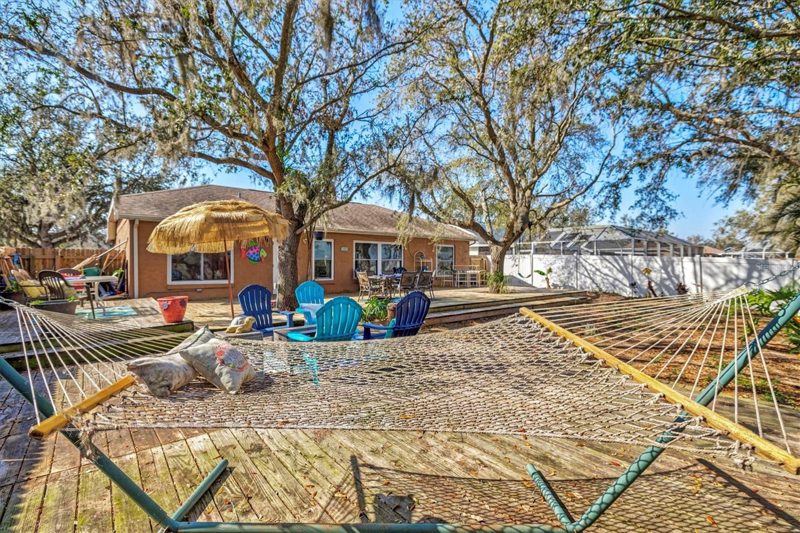 Step inside and discover a home where MODERN UPGRADES, NEW FLOORING THROUGHOUT, NEW INTERIOR PAINT THROUGHOUT, NEW ROOF IN 2018, ALL HURRICANE IMPACT WINDOWS (2020), UPDATED BATHROOMS, AND A MASSIVE DECK spans the ENTIRE BACKYARD! TRULY A MUST SEE! This partially updated home in the highly sought-after Gates Creek community offers everything you’ve been searching for plus LOW HOA fees! From the moment you walk through the STUNNING FRONT DOOR, you'll appreciate the spacious SPLIT FLOORPLAN, designed for both comfort and privacy. The dining area overlooks the inviting living room, creating a warm and open feel. The kitchen is both functional and inviting, featuring AMPLE COUNTERTOP and cabinetry space, a kitchen bar with seating, and enough room for a cozy dinette set. Plus, with garage access conveniently located through the kitchen, bringing in groceries is a breeze. BOTH BATHROOMS have been tastefully upgraded with stylish tile and flooring, giving them a fresh and modern look. MAJOR IMPROVEMENTS have already been completed, including a NEW ROOF (2018) and ALL IMPACT WINDOWS (2020), ensuring durability, energy efficiency, and peace of mind. But the true highlight of this home is the INCREDIBLE BACKYARD—an entertainer’s dream! A MASSIVE DECK spans the ENTIRE BACKYARD, offering the perfect space for gatherings, outdoor dining, or simply unwinding in the shade of the private, mature trees. Overlooking a serene pasture, this outdoor retreat makes it feel like you’ve stepped into your own secluded paradise. Location is everything, and Gates Creek delivers! This home is just minutes from top-rated schools, shopping, and dining, with the exciting Marketplace at Heritage Harbour currently in development, bringing even more retail and restaurant options to the area. Plus, easy access to major highways makes commuting a breeze. Don’t miss your chance to make this beautifully upgraded home in Gates Creek for well under $400k!