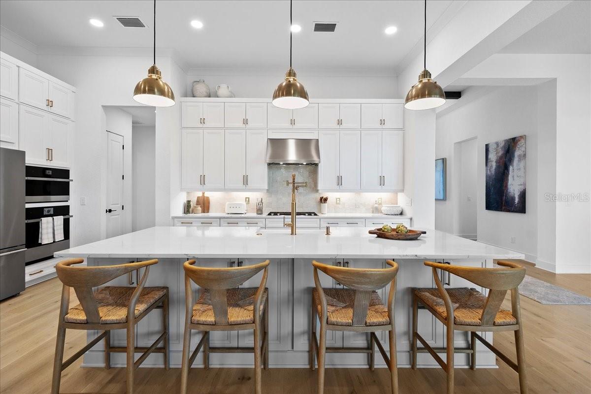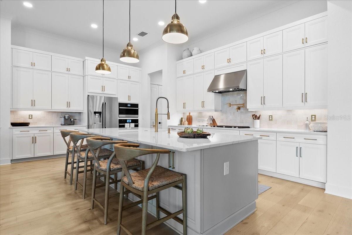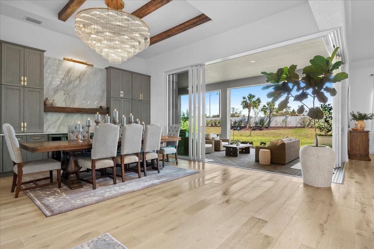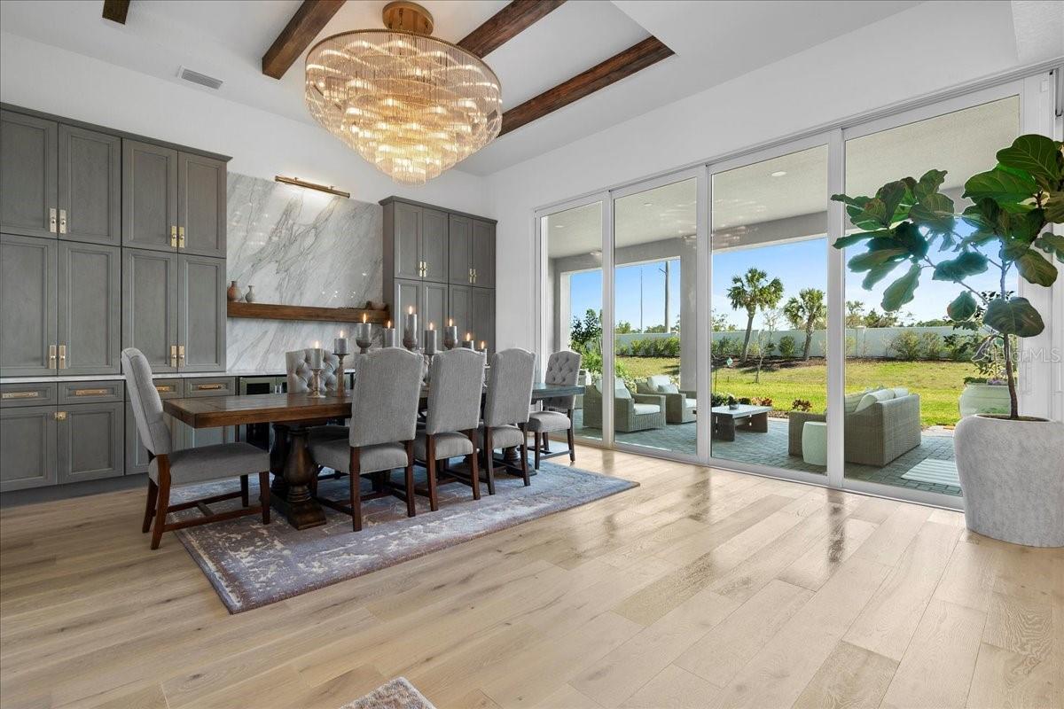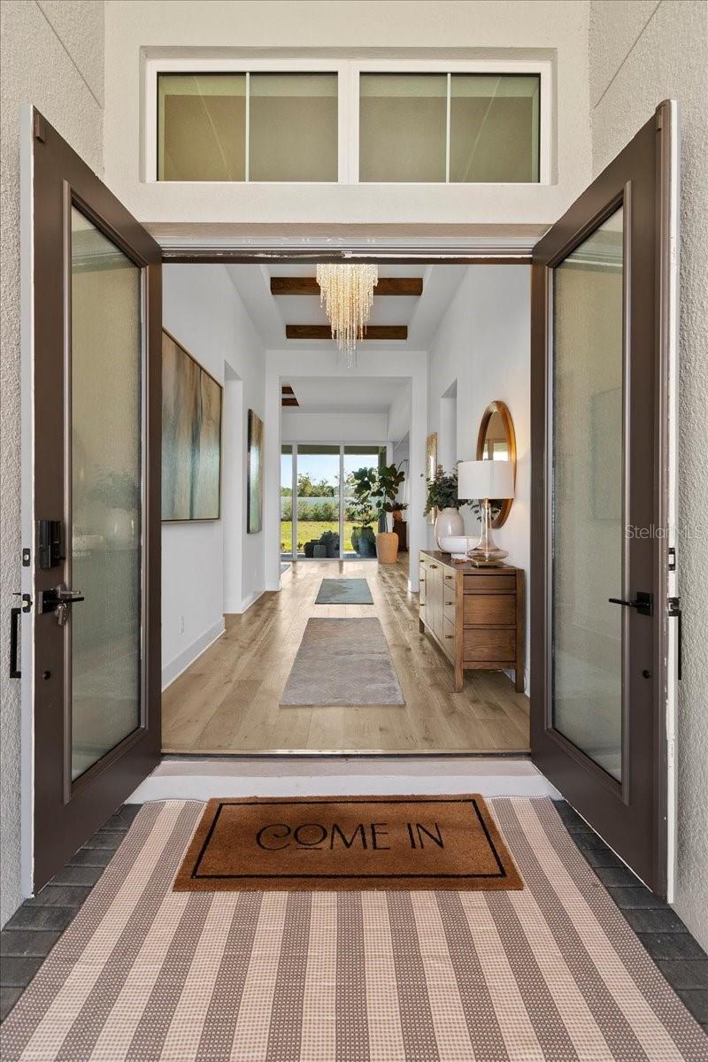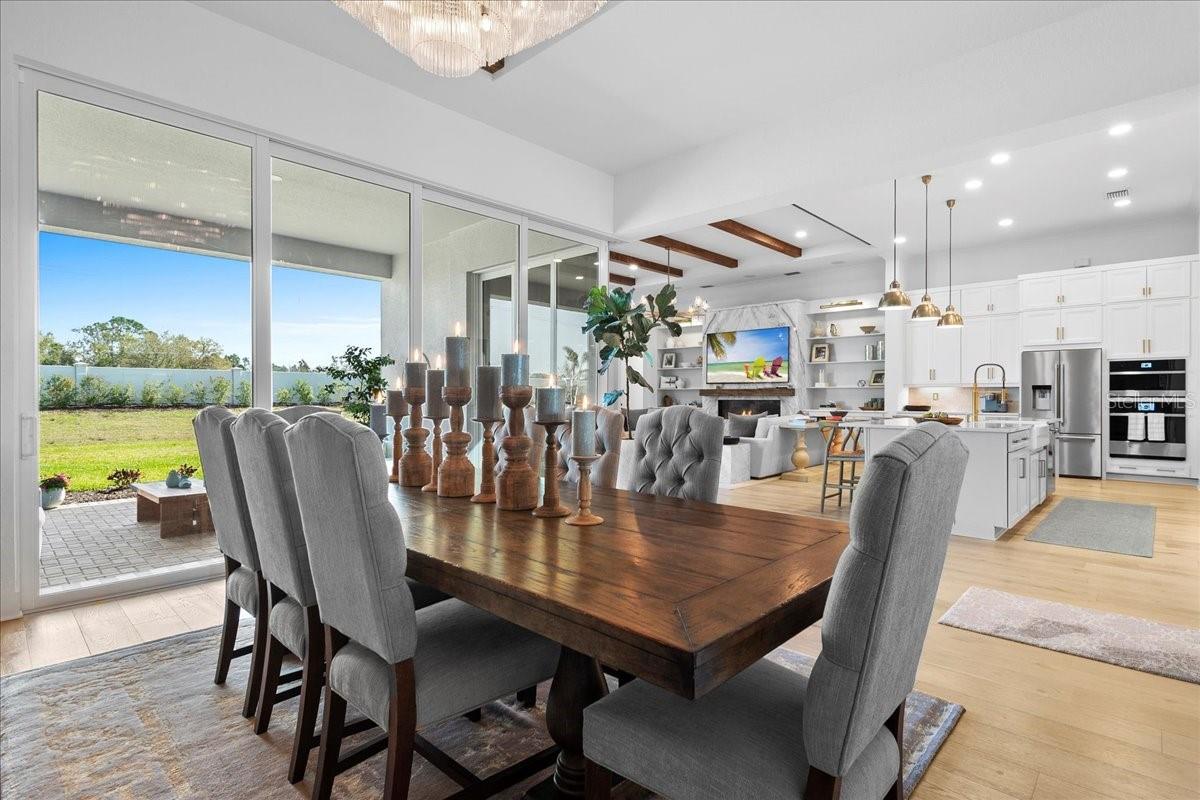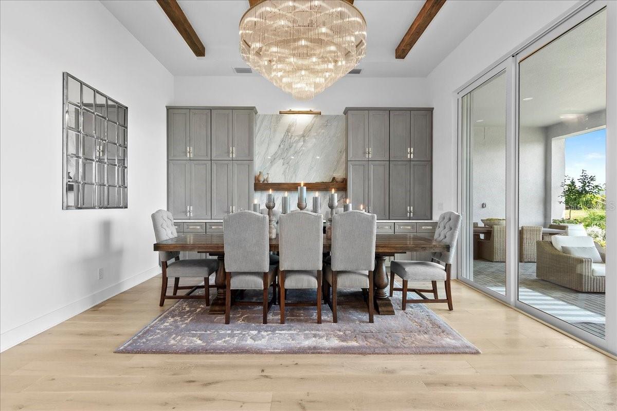 Beautifully crafted home with designer-appointed interior finishes and custom stone and wood built ins. Greet your guests through double doors in a welcoming foyer with 12 ft. tray ceilings and Restoration Hardware chandeliers. Entering the great rooms your eyes are drawn to the custom wood ceiling beams and the light, bright and open layout. Complementing the well-designed open kitchen is an immense center island with breakfast bar as well as tons of counter space and a second row of upper cabinets. An upgraded cooktop and hood further elevate the look. The covered backyard retreat is perfect for activities, complete with 90-degree corner sliders that expand your living space. The home is complete with designer curated finishes and crown molding. Discover what luxury living truly means and schedule a tour of this beautifully designed and upgraded home. More luxury features include: Morocco hand made tile with custom pasta arm, Rare Italian Marble built ins with 3 wine and beverage fridges and custom electric fire place. Smart home with alarm system and skybell doorbell. Waterboss 950 water softener system for entire home.4 large custom garage racks and Epoxy garage floor. Rejuvenation real brass hardware on cabinets and Jen Air appliances. Custom Surround Sound speakers in ceiling