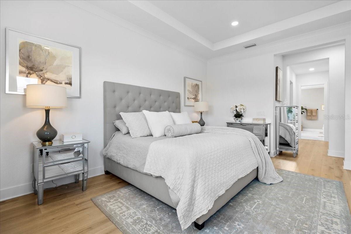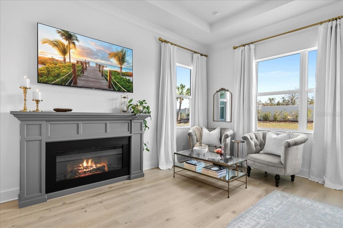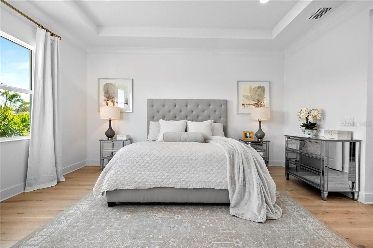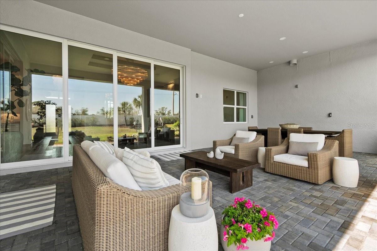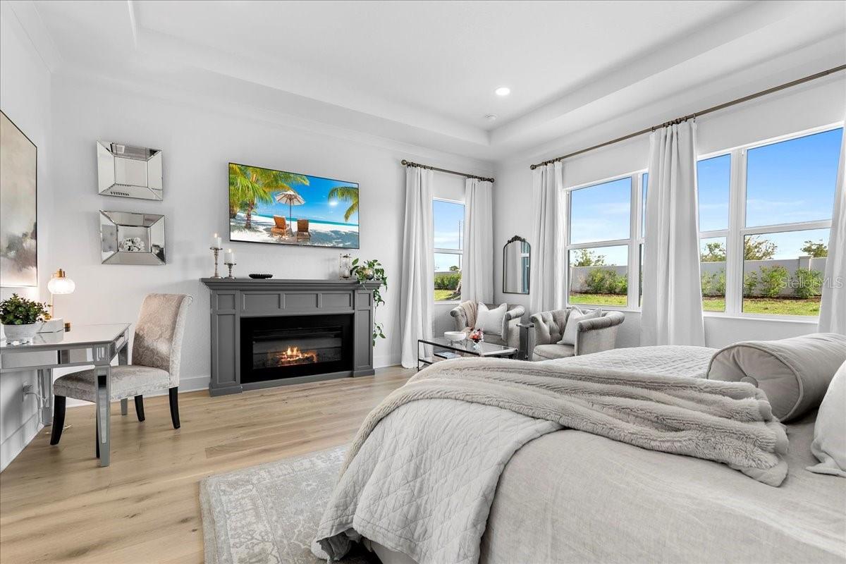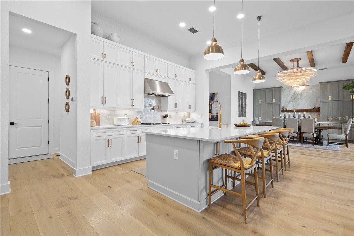 Beautifully crafted home with designer-appointed interior finishes and custom stone and wood built ins. Greet your guests through double doors in a welcoming foyer with 12 ft. tray ceilings and Restoration Hardware chandeliers. Entering the great rooms your eyes are drawn to the custom wood ceiling beams and the light, bright and open layout. Complementing the well-designed open kitchen is an immense center island with breakfast bar as well as tons of counter space and a second row of upper cabinets. An upgraded cooktop and hood further elevate the look. The covered backyard retreat is perfect for activities, complete with 90-degree corner sliders that expand your living space. The home is complete with designer curated finishes and crown molding. Discover what luxury living truly means and schedule a tour of this beautifully designed and upgraded home. More luxury features include: Morocco hand made tile with custom pasta arm, Rare Italian Marble built ins with 3 wine and beverage fridges and custom electric fire place. Smart home with alarm system and skybell doorbell. Waterboss 950 water softener system for entire home.4 large custom garage racks and Epoxy garage floor. Rejuvenation real brass hardware on cabinets and Jen Air appliances. Custom Surround Sound speakers in ceiling