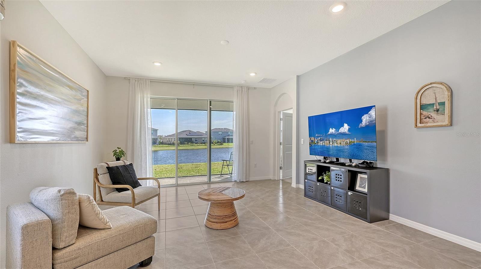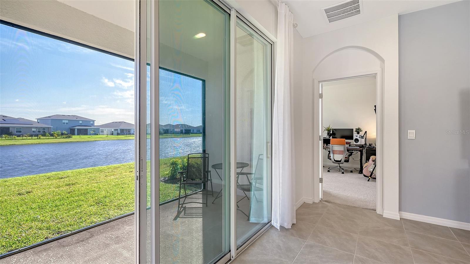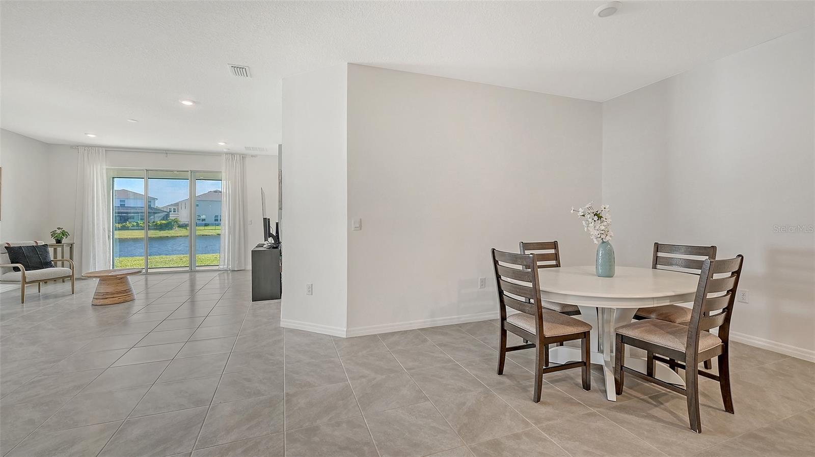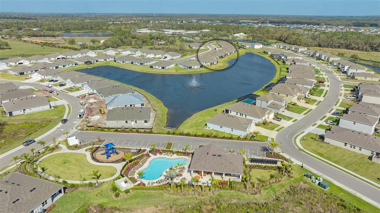 Welcome to your serene, lakefront newer build in the gated community of Coddington! Built solid with concrete block construction and a full complement of storm shutters, this lovely paired villa is a great opportunity for “new and ready now.” The interior lot and setting is the key- you’ll enjoy water views, wildlife and birds as well as atmospheric sunrises from the screened-in back porch. The open layout includes tiled main living area and an oversized kitchen with granite countertops and plenty of storage. The primary bedroom features water views through the windows, a dual vanity, and walk-in shower. The split plan allows for bedrooms two and three to have their own privacy on the opposite side of the home. Bedroom three sets up ideally as an office. This home features smart home technology that was included by the builder. The two car garage allows for abundant storage and rounds out this lovely residence. Coddington is maintenance-free meaning the association covers the lawn maintenance for you, and the community has an awesome pool and cabana, flex lawn, and playground. This newer home has been lightly lived in and is ready for new owners, schedule your private showing today!