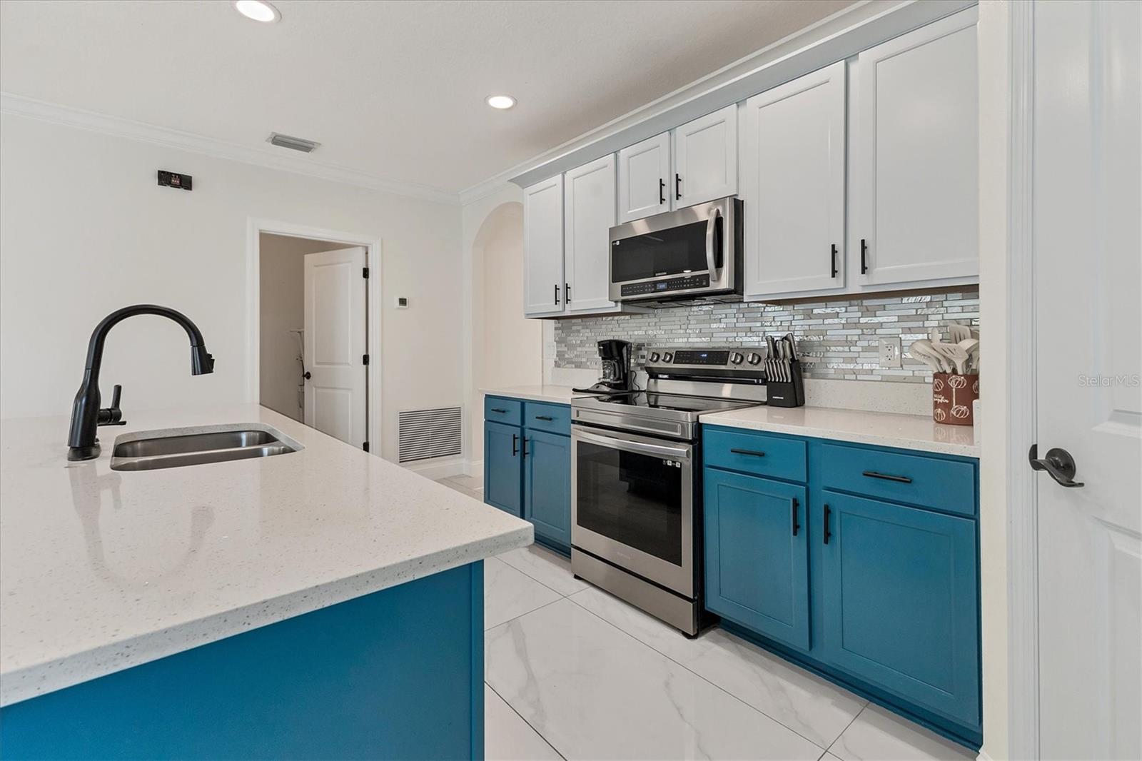THIS PROPERTY QUALIFIES FOR A 1% LENDER INCENTIVE IF USING OUR PREFERRED LENDER! Nestled within the sought-after gated community of Del Tierra, this stunning four-bedroom, two-bathroom home offers a perfect blend of elegance and modern convenience. A large, welcoming foyer sets the tone, leading into a beautifully designed interior with polished marble floors that flow seamlessly throughout. The upgraded kitchen is a chef’s dream, featuring quartz countertops, a custom glass backsplash, and top-of-the-line Samsung appliances, including a Smart refrigerator. An expansive island with an undermount sink provides seating for casual dining, while a spacious walk-in pantry ensures ample storage. The great room is an inviting space with crown molding and a sliding glass door that opens to the covered back porch and fenced backyard—ideal for indoor-outdoor living. The primary suite is a private retreat with a walk-in closet and a spa-like ensuite, complete with dual sinks and stunning marble accent walls. Three additional bedrooms and a well-appointed main bathroom provide plenty of space for family or guests. A convenient laundry room is located just off the kitchen for added functionality. The home also boasts a two-car garage with a rough-in for pull-down attic stairs, offering additional storage options. Beyond the home, Del Tierra provides resort-style amenities, including a sparkling community pool, fitness center, playground, small soccer field, and scenic walking and biking paths. Ideally located, Del Tierra is just 30 minutes from the beach, 45 minutes south of Tampa, and 15 minutes from Sarasota, with easy access to Lakewood Ranch, the Manatee River, parks, restaurants, and I-75. Plus, with LOW ASSOCIATION FEES AND NO CDD, this is an incredible opportunity to own in a vibrant, well-connected community.