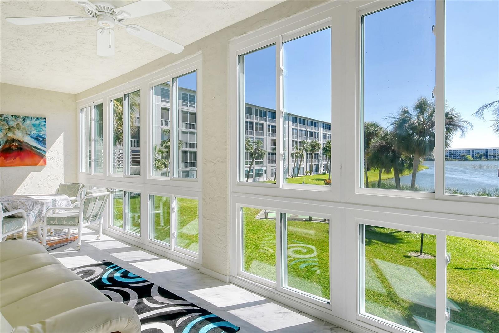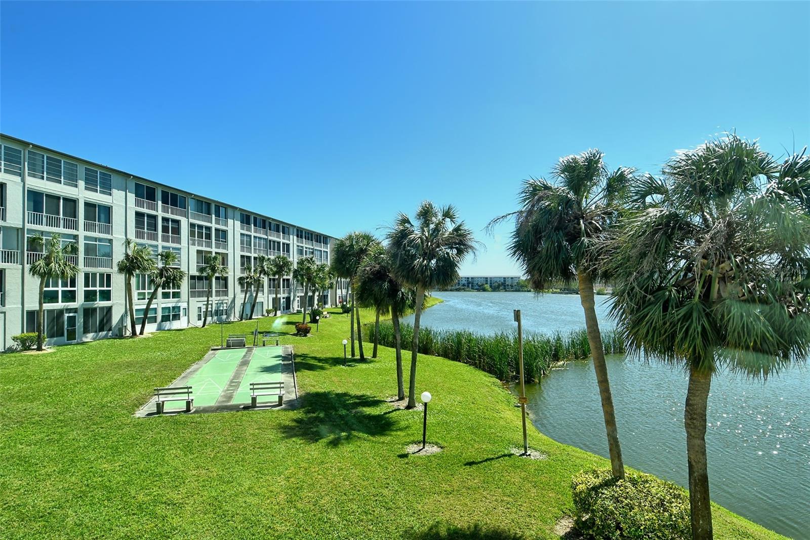 Step into this luxury renovated corner unit condo in the charming 55+ community of Bayshore on The Lake. Highest quality renovations! This stunning 2-bedroom, 2-bathroom condo on the end of 2nd floor boasts a beautiful lake view and has been meticulously updated and maintained. The lanai has been transformed into an additional 206 square feet of living space, complete with hurricane-impact windows stage 5-6, was tested with Milton hurricane, windows are UV resistant, ensuring year-round comfort. Recent updates include new plumbing and electrical systems, new vinyl sound-dampening flooring waterproof-newest trend of beauty and quality. The kitchen and island features a quartz countertop and all new Samsung appliances, 2 bathrooms completely remodeled with marble countertops and new cabinets and doors. The living room have an IKEA sofa-bed, comfortably accommodating 3-4 guests .The building exterior has also been updated, featuring a new roof (2018) and fresh exterior paint (2020). Nestled in the NW corner of Bayshore on the Lake, this corner unit is ready for you to move in and enjoy. Centrally located in Bradenton, this condo offers close proximity to shopping, dining, airport, public transportation, and Anna Maria Island -home to Florida's famous beaches. Furnishings are available upon negotiations. Don't miss the opportunity to make this exceptional unit your new home. Bright Corner Condo with Stunning Lake Views and you able to see every evening new sunset! This fully remodeled 2nd-floor condo offers abundant natural light, privacy, and breathtaking lake views from every lanai window, where you can enjoy watching turtles and diverse birdlife . Don't miss the opportunity to make this exceptional condo your new home ! ***Preferred Lender is offering 1% of the Loan Amount, as a Lender Credit toward Buyers Closing Costs or Interest Rate Buydowns on this specific Home.***