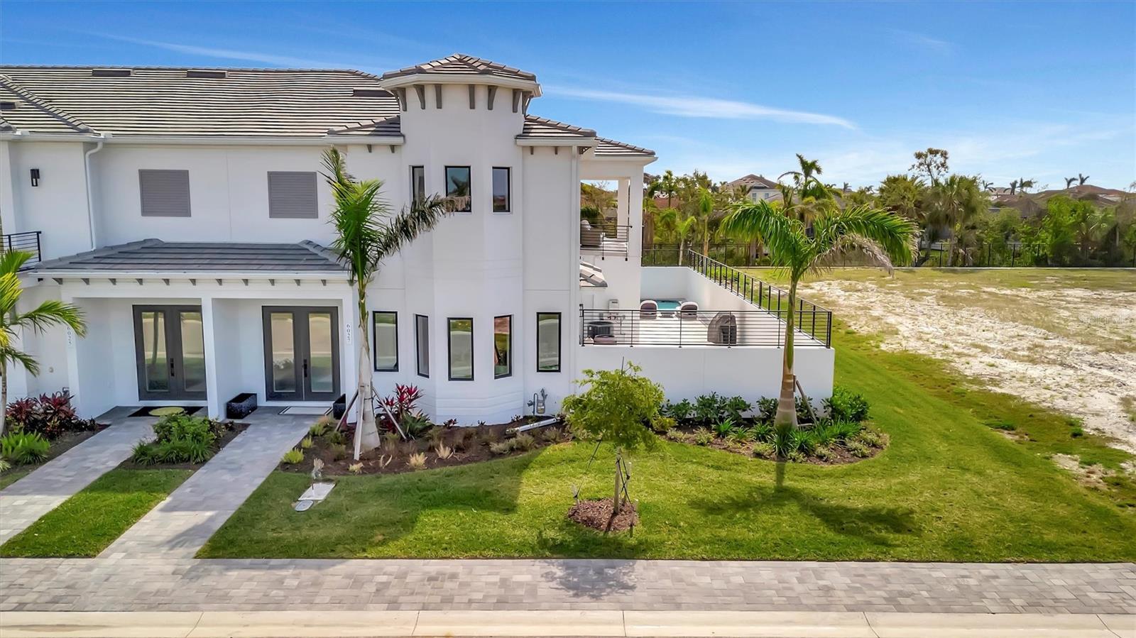 Spanning 3,149 sq. ft., this stunning and meticulously designed residence features 4 bedrooms, 5 bathrooms, loft, 2nd floor balcony overlooking the Sarasota Bay, and an extended courtyard highlighted by a private pool. This rare and high demand Coconut Palm model creates the ideal setting for both relaxation and entertaining from the comforts of your own home. Ideally situated in the exclusive gated Aqua Lagoon community, boasting an incredible 4-acre private translucent, blue lagoon and beach, and currently featured in the Parade of Homes. As you enter through the foyer you will immediately be greeted with the open-concept layout that seamlessly connects the living, dining, and kitchen areas. Off the formal dining room is direct access to your private outdoor courtyard creating the ideal space for the indoor/outdoor dining experience of your choice. The kitchen is highlighted by a free-standing island that opens up into the living room. Equipped with modern finishes, a gas cooktop, built-in microwave and oven, beverage fridge, and pantry, it’s a chef’s dream offering both functionality and style. Whether you’re preparing meals or enjoying casual dining, the kitchen provides a welcoming space to entertain or unwind. Down the hallway from the main living sits the spacious master suite providing a serene experience, complete with a luxurious en-suite bathroom with a walk-in closet. The master suite provides direct views and sliding door access to the outdoor patio and pool area. An additional full bathroom is conveniently located just off the other patio entrance and next to the garage entrance. Take the stairway or step into your private elevator to the second-floor retreat. Upstairs, you’ll enter the open loft area that can be utilized to meet your needs for the space. A second-floor master suite has been created with an additional seating space that can also be easily converted back to a 5th bedroom. There is an en-suite bathroom with an oversized walk-in shower. Just off the second-floor master are two additional bedrooms and bathrooms. Setting the stage for your indoor-outdoor living is a full private 2nd story balcony offering views of the Sarasota Bay as well as the Aqua Lagoon. Enjoy your morning coffee, a late-night cocktail or watch the sunset as this outdoor retreat provides a peaceful escape with an added sense of privacy and tranquility. Additional amenities include a walk-in laundry room and two car garage with an alley way entrance. Whether you are looking for a home to call yours, a Florida retreat, or an annual rental investment this property checks all the boxes with the modern amenities, flexibility, and privacy, it’s truly a place to live in tropical luxury. Aqua lagoon is conveniently located near world renowned IMG Academy, IMG Golf & CC, Anna Maria Island, Cortez Village, and SRQ airport, while remaining a short drive away from shopping and entertainment districts such as UTC and St Armand’s Circle. Beat the wait for a new build and schedule your private showing of this FL gem!!!