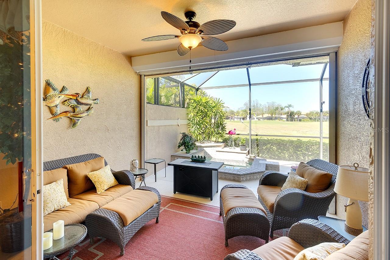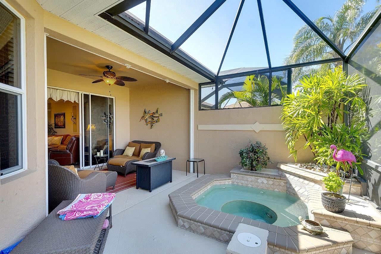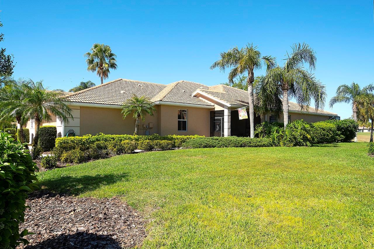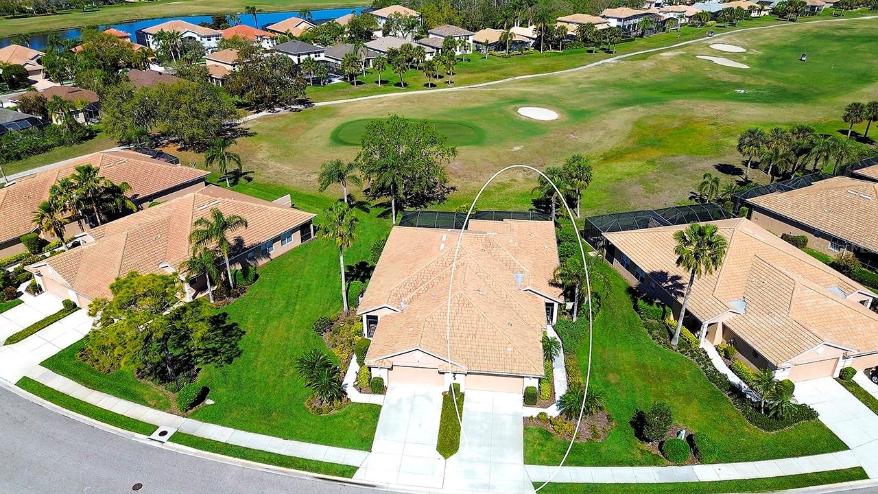 You’ll enjoy LOCATION, VALUE and LOW HOA FEES in this meticulously maintained 2 bedroom, 2 bath Villa with DEN and attached garage. This FORMER MODEL has all the boxes checked…..and more. Tucked away on a quiet street within the gates of Stoneybrook at Heritage Harbour the home is MOVE-IN READY and MAINTENANCE FREE. A seller approved inventory is available. Take in the tranquil golf course views and amazing sunsets from the extended screened lanai with relaxing inground HOT TUB overlooking tropical landscaping and the 7th green of the Heritage Harbour golf course. The outdoor living space comes complete with a fire pit, comfortable outdoor seating, Weber Bar-B-Q, no-see’em screens and is equipped with a motorized hurricane shutter for your protection and peace of mind. There’s also a screened front lanai with eastern exposure for gorgeous sunrises, perfect for enjoying your morning coffee. In terms of VALUE, the “heavy lifting” has all been done for you with modern upgrades including new light fixtures, ceiling fans, custom paint, quality furniture & decorating accents, epoxy coated garage floor and mature landscaping. NEW A/C in 2023 with transferable 10-year warranty, new disposal in 2023, new Hayward control panel with remote for the spa/hot tub and new heat pump in 2021. Custom builder upgrades include built-in desk and storage in den, entertainment wall in living room, custom wall details, crown moldings and 4 modern Solar-tube skylights providing remarkable natural light you must see to believe. It’s important to note the owners are non-smokers, no pets and the home was never rented. Warm and inviting, the spacious master suite features walk-in closet and ensuite bath with double vanity, garden tub and separate shower. You’ll love the LOW HOA FEES of only $361 / month which includes 2 gated entry points, all common area maintenance and all amenities in the 6-acre recreation campus featuring resort style pool, hot tub/spa, fitness center with 24/7 key card access, tennis/pickleball courts, basketball, volleyball, corn hole and bocce ball. There’s also a playground and a grilling area with picnic tables and a separate dog park for man’s best friend. Golf memberships are available at the Stoneybrook golf course but not mandatory or you can pay-to-play. The convenience of this LOCATION cannot be overstated as it’s ideally situated just minutes from all essential amenities and top attractions. 1.4 miles to the new Marketplace at Heritage Harbour home to Costco, Target, Miller’s Ale House, Academy Sports, with several more stores proposed. 3.4 miles to the Walmart Super Center, 3.5 miles to Home Depot, 6.1 miles to the Ellenton Premium Outlet Mall and 16 miles to the Bradenton/Sarasota Int’l Airport. With easy access to I-75 the University Town Center with upscale shopping and dining is 10.2 miles as well as the many attractions of downtown Sarasota and Bradenton, multiple performing arts venues, galleries, world class dining, award winning beaches, golf courses and so much more…just minutes away. LIVING IS EASY, CONVENIENT AND SECURE in this ACTIVE LIFESTYLE COMMUNITY.....Just bring your suitcase and relax!