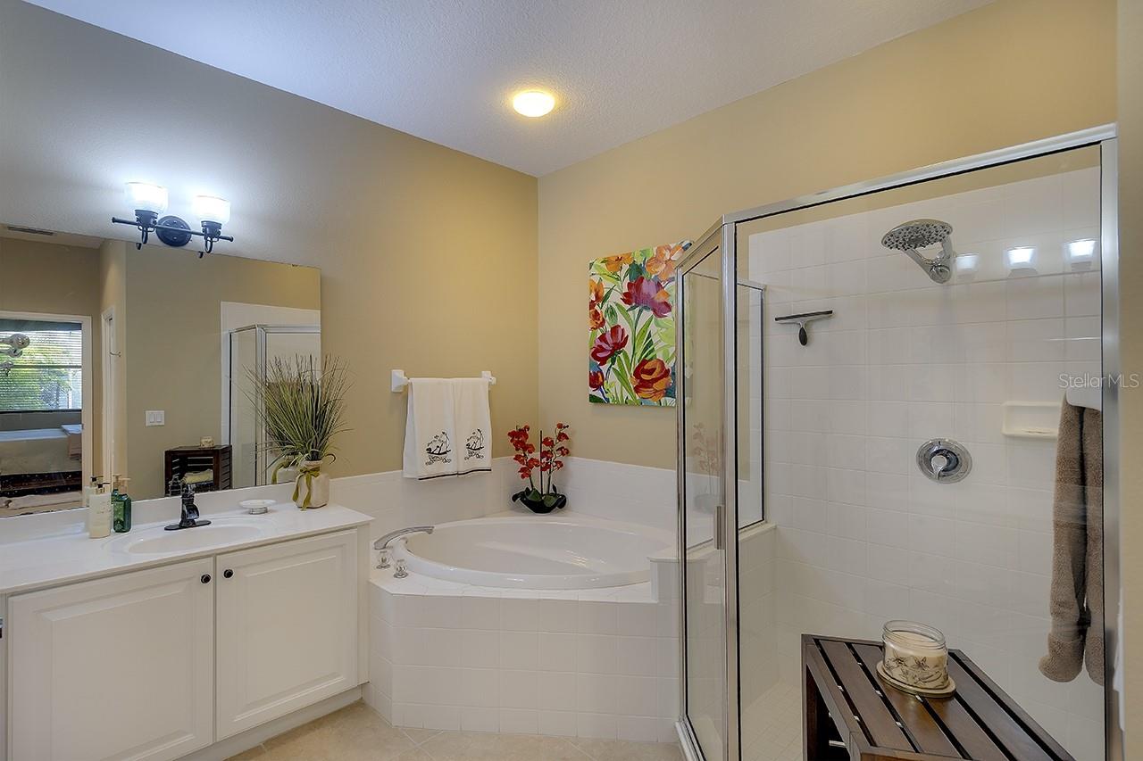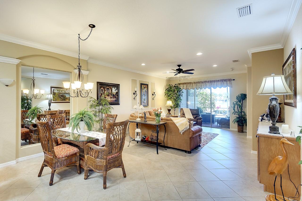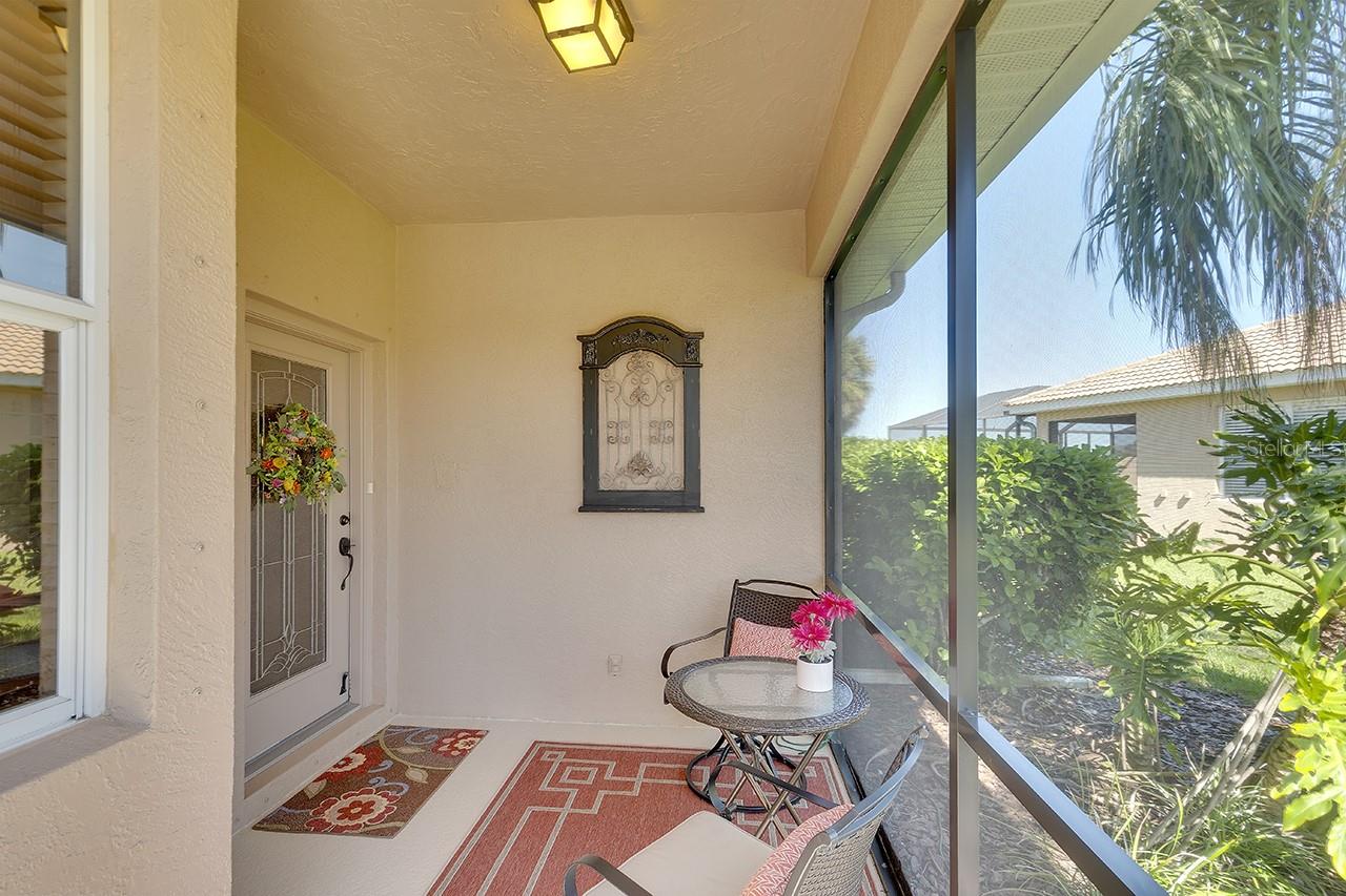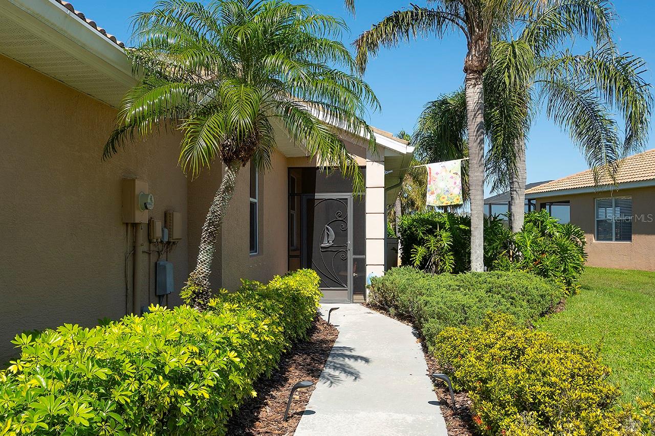 You’ll enjoy LOCATION, VALUE and LOW HOA FEES in this meticulously maintained 2 bedroom, 2 bath Villa with DEN and attached garage. This FORMER MODEL has all the boxes checked…..and more. Tucked away on a quiet street within the gates of Stoneybrook at Heritage Harbour the home is MOVE-IN READY and MAINTENANCE FREE. A seller approved inventory is available. Take in the tranquil golf course views and amazing sunsets from the extended screened lanai with relaxing inground HOT TUB overlooking tropical landscaping and the 7th green of the Heritage Harbour golf course. The outdoor living space comes complete with a fire pit, comfortable outdoor seating, Weber Bar-B-Q, no-see’em screens and is equipped with a motorized hurricane shutter for your protection and peace of mind. There’s also a screened front lanai with eastern exposure for gorgeous sunrises, perfect for enjoying your morning coffee. In terms of VALUE, the “heavy lifting” has all been done for you with modern upgrades including new light fixtures, ceiling fans, custom paint, quality furniture & decorating accents, epoxy coated garage floor and mature landscaping. NEW A/C in 2023 with transferable 10-year warranty, new disposal in 2023, new Hayward control panel with remote for the spa/hot tub and new heat pump in 2021. Custom builder upgrades include built-in desk and storage in den, entertainment wall in living room, custom wall details, crown moldings and 4 modern Solar-tube skylights providing remarkable natural light you must see to believe. It’s important to note the owners are non-smokers, no pets and the home was never rented. Warm and inviting, the spacious master suite features walk-in closet and ensuite bath with double vanity, garden tub and separate shower. You’ll love the LOW HOA FEES of only $361 / month which includes 2 gated entry points, all common area maintenance and all amenities in the 6-acre recreation campus featuring resort style pool, hot tub/spa, fitness center with 24/7 key card access, tennis/pickleball courts, basketball, volleyball, corn hole and bocce ball. There’s also a playground and a grilling area with picnic tables and a separate dog park for man’s best friend. Golf memberships are available at the Stoneybrook golf course but not mandatory or you can pay-to-play. The convenience of this LOCATION cannot be overstated as it’s ideally situated just minutes from all essential amenities and top attractions. 1.4 miles to the new Marketplace at Heritage Harbour home to Costco, Target, Miller’s Ale House, Academy Sports, with several more stores proposed. 3.4 miles to the Walmart Super Center, 3.5 miles to Home Depot, 6.1 miles to the Ellenton Premium Outlet Mall and 16 miles to the Bradenton/Sarasota Int’l Airport. With easy access to I-75 the University Town Center with upscale shopping and dining is 10.2 miles as well as the many attractions of downtown Sarasota and Bradenton, multiple performing arts venues, galleries, world class dining, award winning beaches, golf courses and so much more…just minutes away. LIVING IS EASY, CONVENIENT AND SECURE in this ACTIVE LIFESTYLE COMMUNITY.....Just bring your suitcase and relax!