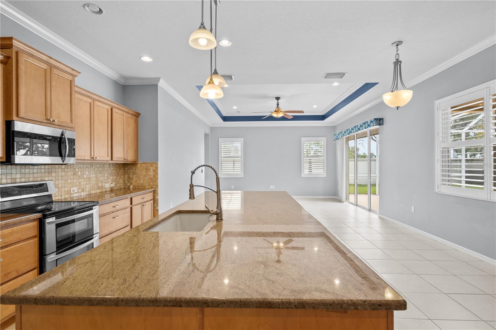 One or more photo(s) has been virtually staged. Welcome to the gated community of Mandalay! This 2900 sqft pool home boasts four bedrooms, three bathrooms and a office all on one floor. Complete with a three car garage and epoxy floors for durability. As you enter the home the large foyer adds to the openness of the house. This well appointed home has crown molding, recessed lighting and plantation shutters throughout. The kitchen is truly the focal point of the home with a center island that measures 10 feet long by 4 feet wide perfect for entertaining, it also includes storage underneath. Granite counters, stainless appliances, a double oven and wine refrigerator all combine to make this an absolutely stunning kitchen. In the primary suite there are two separate walk in closets between the bedroom area and bathroom. The primary bathroom features a walk in shower along with a separate tub and double vanity with granite counters. This split plan house also features a fenced in back yard and a private pool with waterfall inside the screened lanai. This community is centrally located between Sarasota and Bradenton so it is easy to enjoy all that this area has to give! Plenty of room for those who enjoy entertaining! Located in Bradenton, this home offers proximity to various amenities and attractions. Enjoy leisurely strolls in nearby parks, perfect for outdoor family gatherings. Indulge in shopping and dining experiences at nearby UTC Mall, Downtown Sarasota or Downtown Bradenton. Let's not forget it's central location to the beautiful beaches.