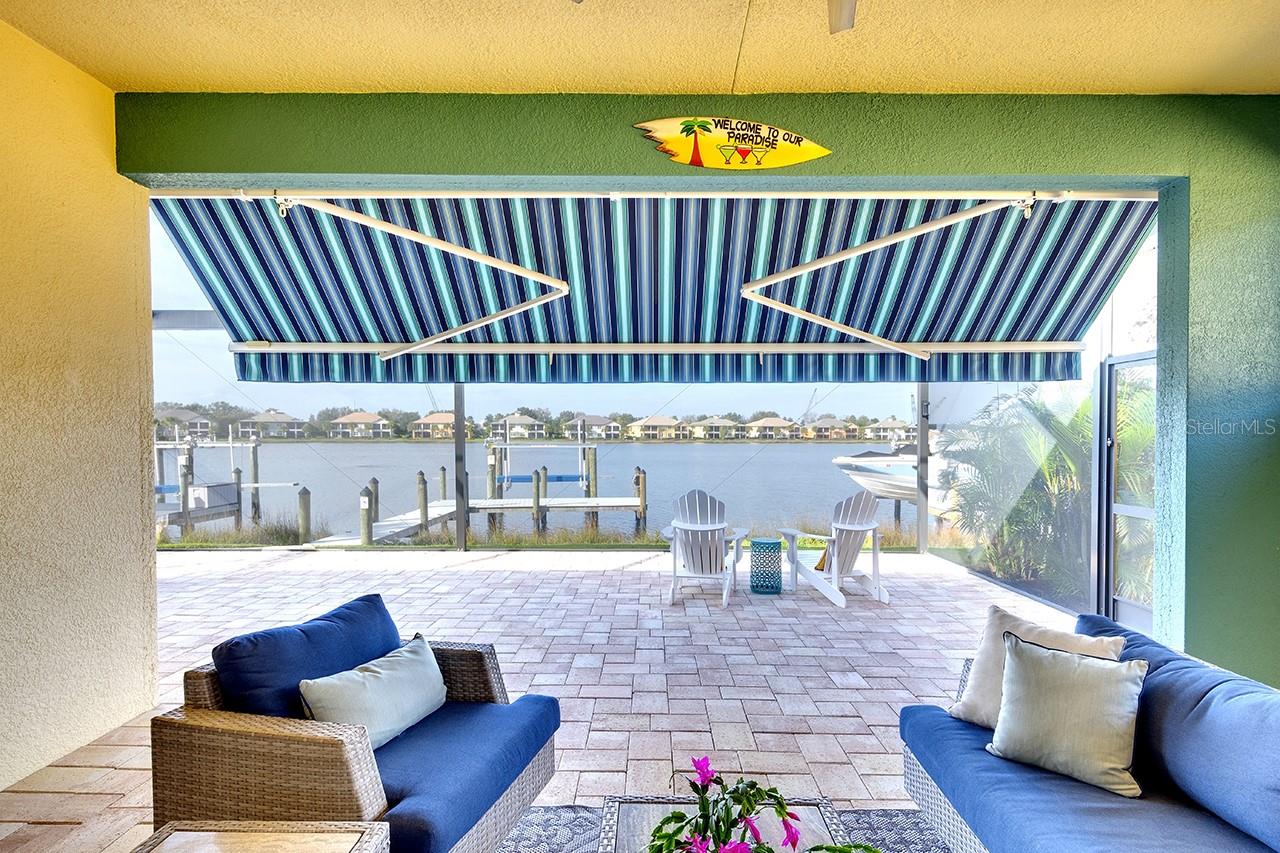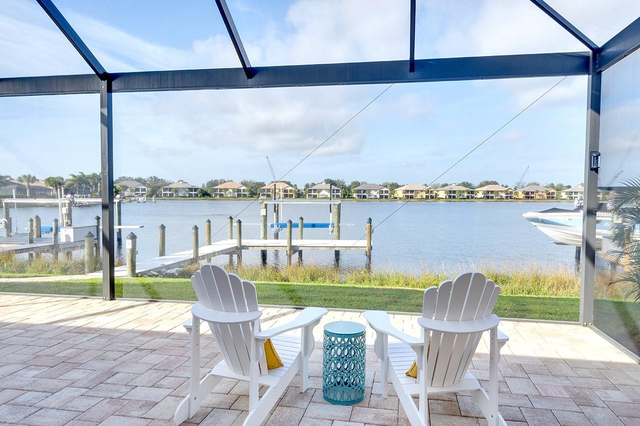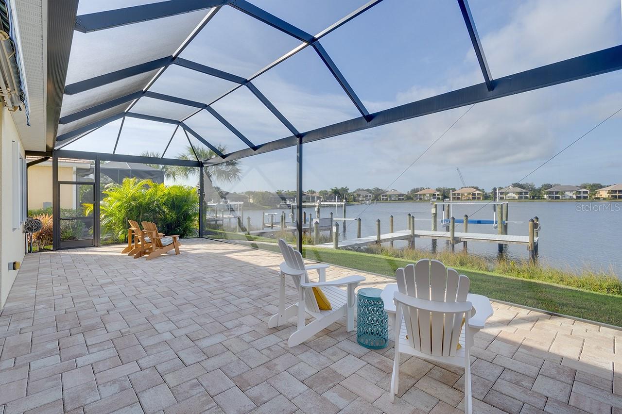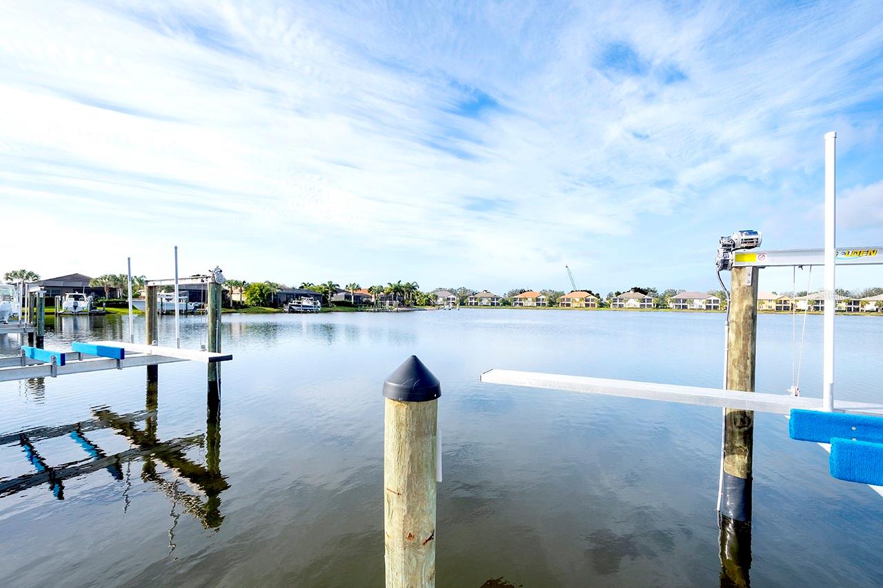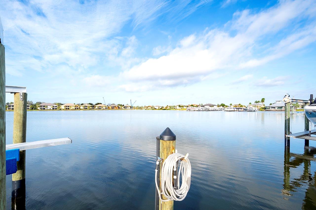 Spectacular Sunsets from this exquisite WATERFRONT boating home located in the sought after gated/guarded community of Tidewater Preserve! Upon entering you will be drawn to the expansive and serene water views through your clear view screens. This gorgeous "Florencia" floor plan boasts 3bedroom/2bath plus a den with 2024sf, high ceilings, 8ft doors, crown throughout, plantation shutters, accordion custom shutters have been installed for your hurricane protection, amazing porcelain flooring throughout(no carpet), a spacious great room, a well designed kitchen with plenty of cabinet storage with gas appliances, large island, granite countertops, stainless steel appliances, and large kitchen pantry. Take in the water views from the spacious master bedroom with a luxurious ensuite bathroom with double sinks, a soaking tub & separate shower. The outdoor living area has over 800sf for entertaining between the covered lanai area and extended lanai with clear view screens. Also a retractable remote controlled awning compliments this beautiful home and offers endless coastal breezes, beautiful sunsets and views with plenty of room for an outdoor kitchen and pool. Already plumbed for outdoor kitchen for water and gas. Spectacular views from your private dock with electric, and water and a 10,000 lb boat lift. Dock was built at an angle to allow easy access. Navigate the waterways of the Manatee River, explore coastal shorelines and islands, or cruise to the GULF OF AMERICA. The amenities of Tidewater Preserve are fabulous. The Port & Court Club with three lighted Har-Tru hydro tennis courts, a ball machine, luxurious community pool, recreation area, park, playground, riverfront nature trail, and kayak launch. In addition the marine and boat lift are designed so residents can take advantage of the community's beautiful riverfront setting. Conveniently located near I-75 UTC Mall, restaurants, Historic downtown waterfront, world famous beaches and airport close by.