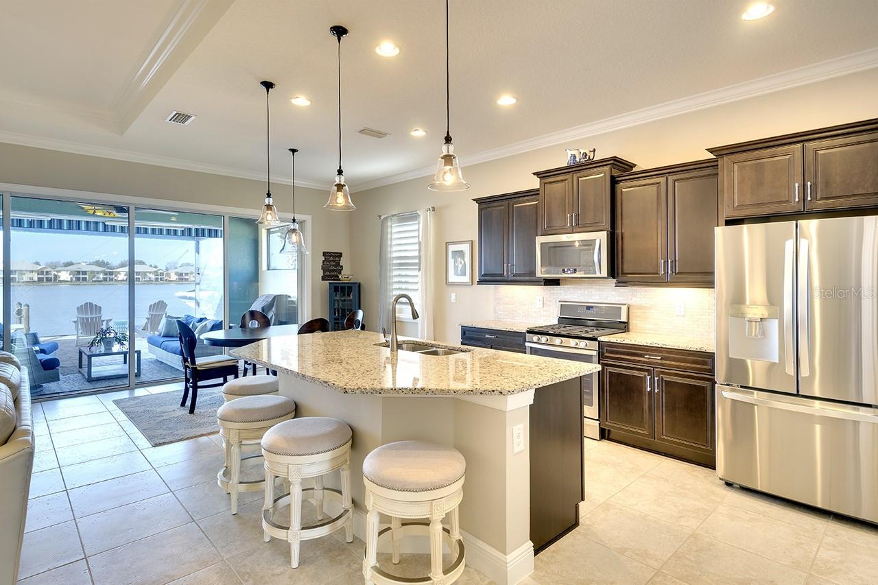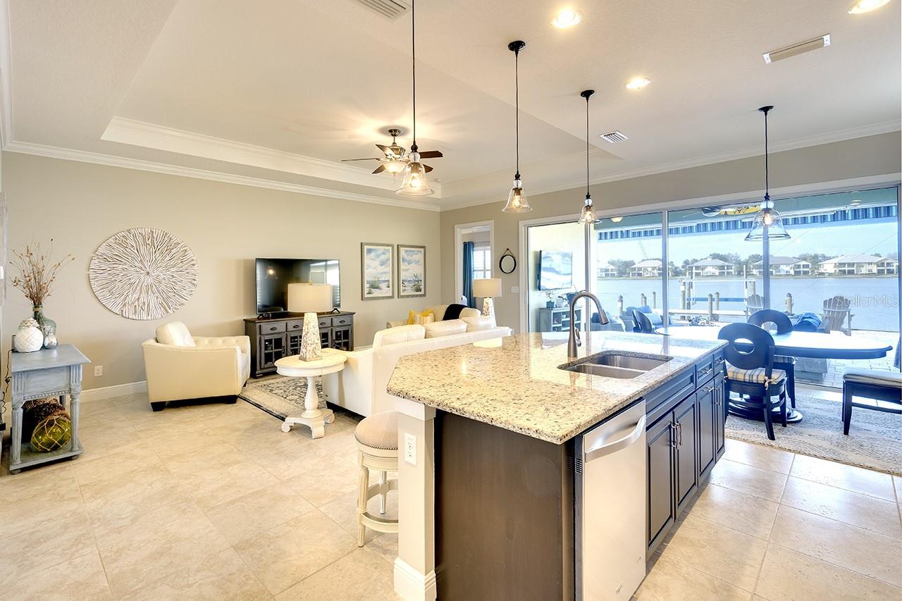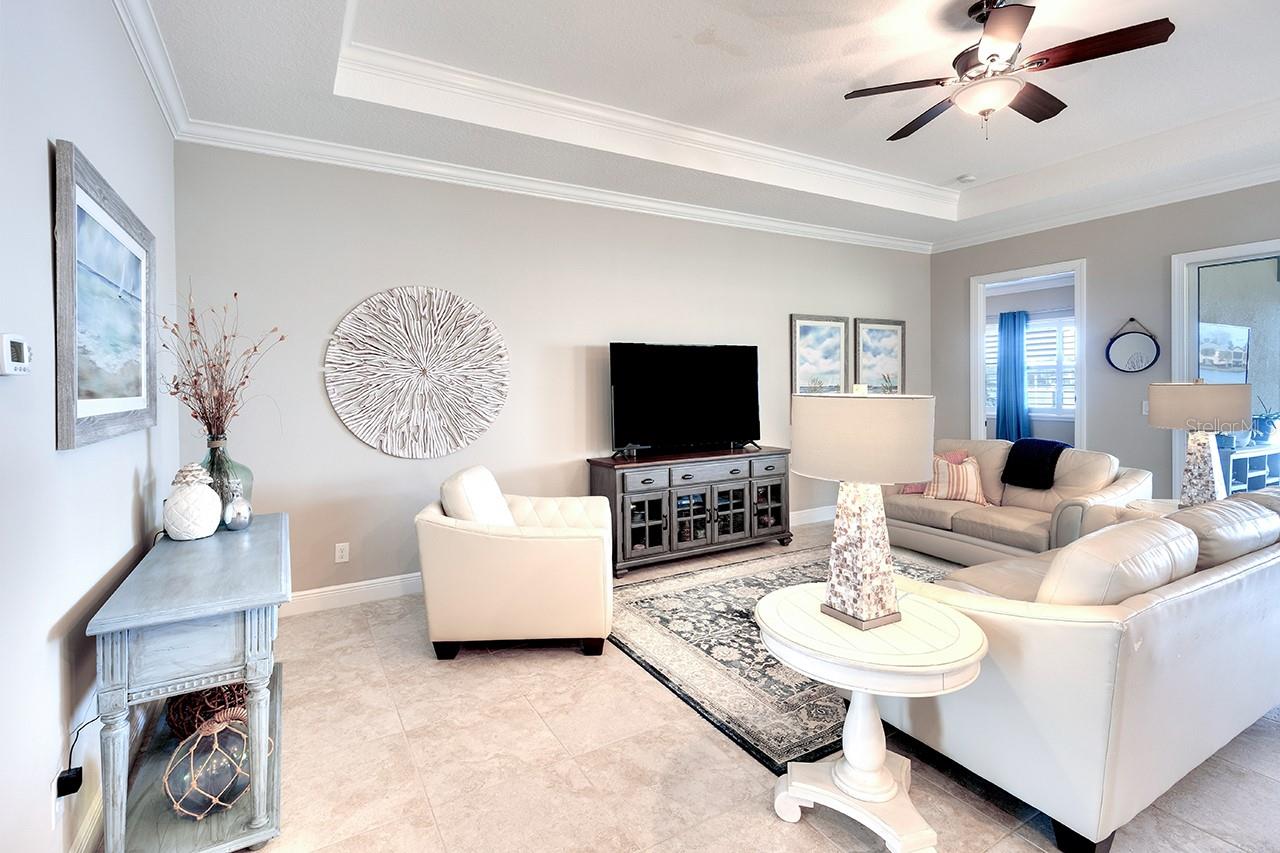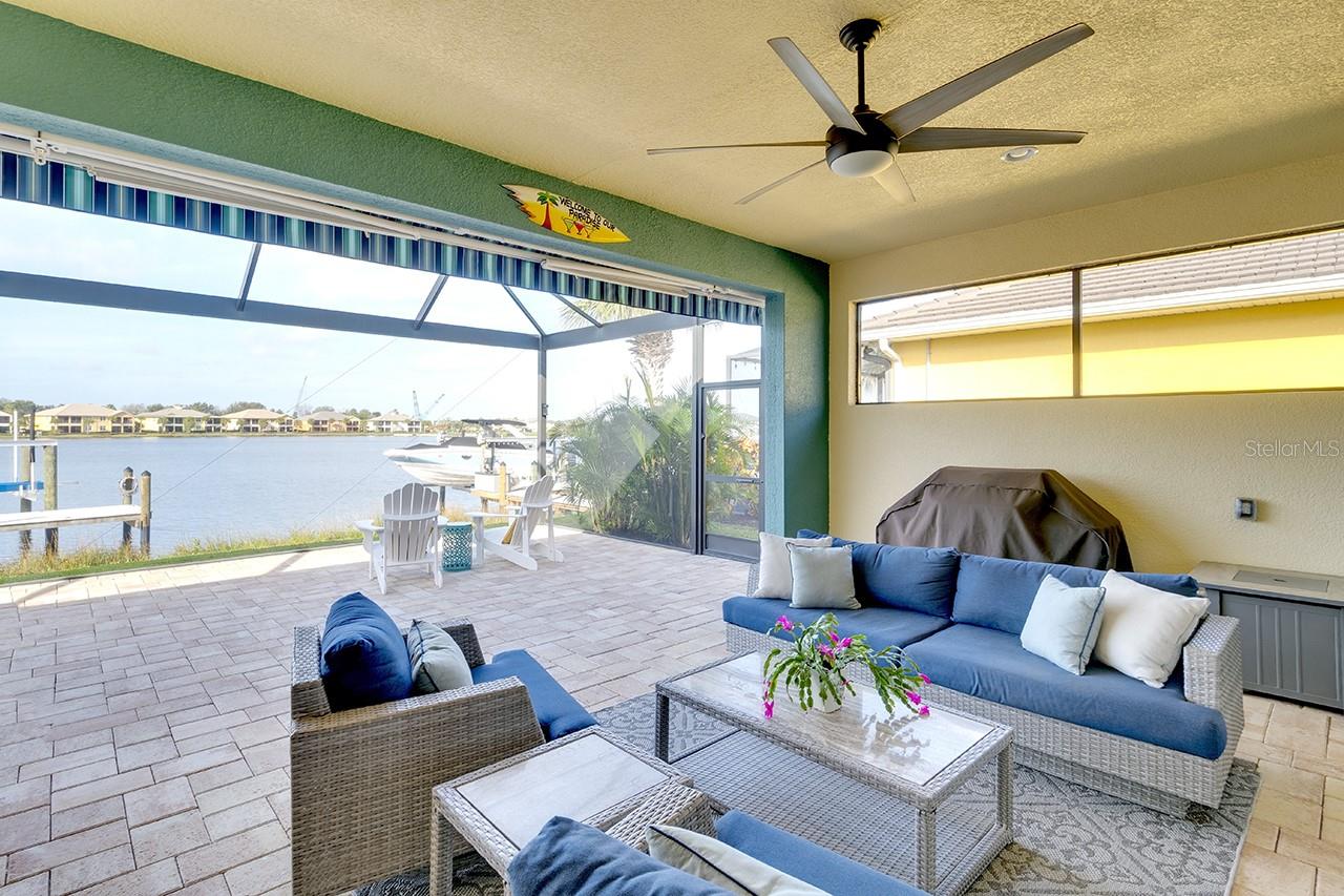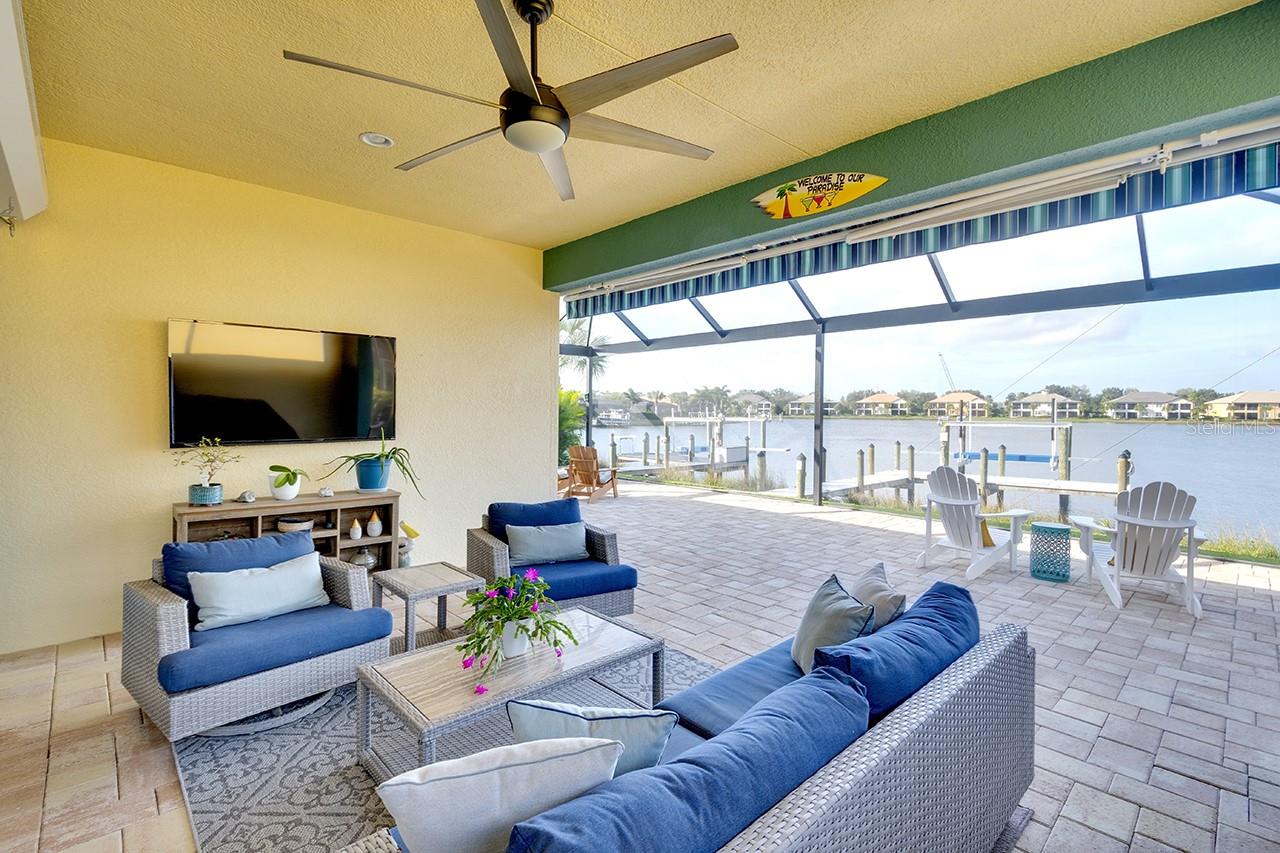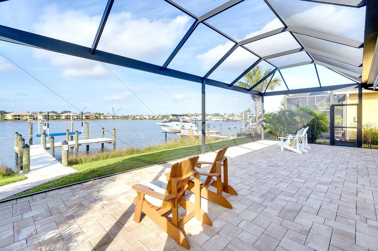 Spectacular Sunsets from this exquisite WATERFRONT boating home located in the sought after gated/guarded community of Tidewater Preserve! Upon entering you will be drawn to the expansive and serene water views through your clear view screens. This gorgeous "Florencia" floor plan boasts 3bedroom/2bath plus a den with 2024sf, high ceilings, 8ft doors, crown throughout, plantation shutters, accordion custom shutters have been installed for your hurricane protection, amazing porcelain flooring throughout(no carpet), a spacious great room, a well designed kitchen with plenty of cabinet storage with gas appliances, large island, granite countertops, stainless steel appliances, and large kitchen pantry. Take in the water views from the spacious master bedroom with a luxurious ensuite bathroom with double sinks, a soaking tub & separate shower. The outdoor living area has over 800sf for entertaining between the covered lanai area and extended lanai with clear view screens. Also a retractable remote controlled awning compliments this beautiful home and offers endless coastal breezes, beautiful sunsets and views with plenty of room for an outdoor kitchen and pool. Already plumbed for outdoor kitchen for water and gas. Spectacular views from your private dock with electric, and water and a 10,000 lb boat lift. Dock was built at an angle to allow easy access. Navigate the waterways of the Manatee River, explore coastal shorelines and islands, or cruise to the GULF OF AMERICA. The amenities of Tidewater Preserve are fabulous. The Port & Court Club with three lighted Har-Tru hydro tennis courts, a ball machine, luxurious community pool, recreation area, park, playground, riverfront nature trail, and kayak launch. In addition the marine and boat lift are designed so residents can take advantage of the community's beautiful riverfront setting. Conveniently located near I-75 UTC Mall, restaurants, Historic downtown waterfront, world famous beaches and airport close by.