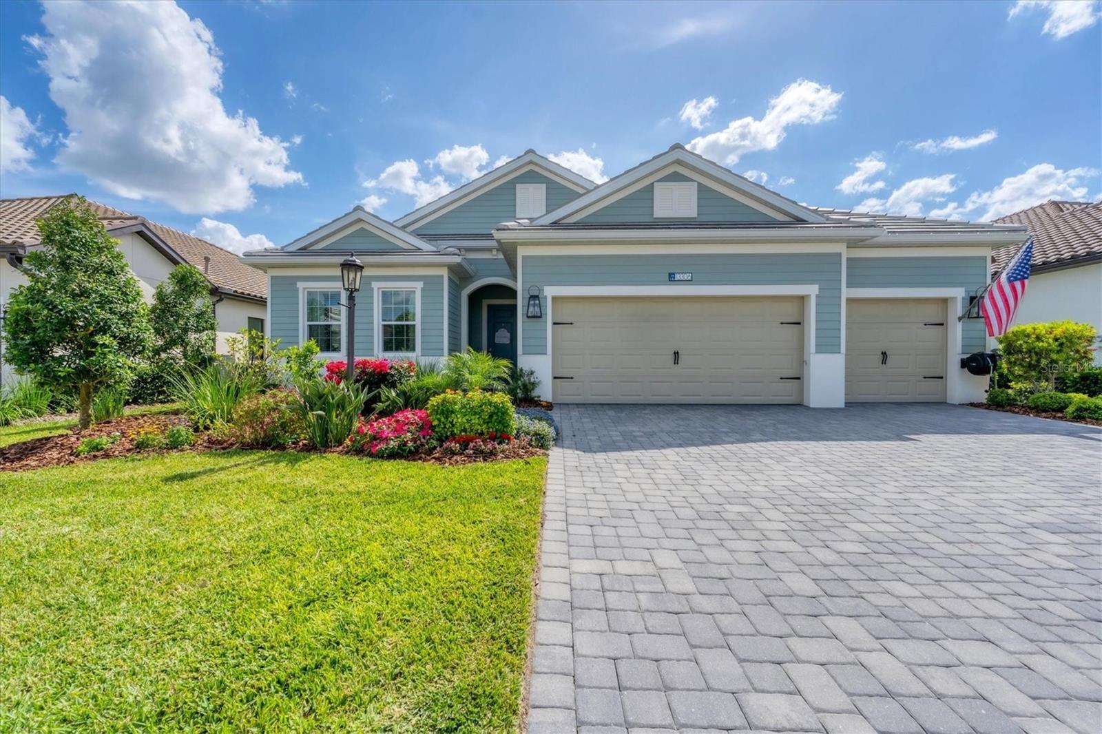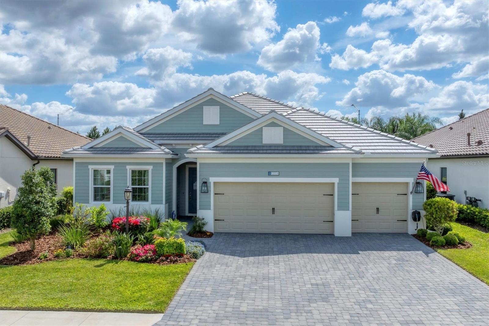 Looking for a private, sun-filled retreat in one of Lakewood Ranch’s most sought-after communities? This 2022-built Silver Sky II by Neal Communities home in the gated Indigo neighborhood offers the perfect blend of modern luxury, energy efficiency, and effortless living. With 4 bedrooms, 3 bathrooms, and an extended 3-car garage, this home is situated on a private, southern-facing oasis—bathing your outdoor space in natural light all day long. Designed for both style and function, this home features hurricane-impact windows, insulated concrete block construction, and pre-wiring for a future pool—giving you peace of mind and endless possibilities; see pool conceptional designs in photos. Step inside to 10-foot tray ceilings, LED recessed lighting, and pocketing sliders, creating a bright and open living space. The chef’s kitchen is a true showstopper, featuring quartz countertops, a porcelain backsplash, under-cabinet LED lighting, a walk-in pantry, and premium stainless steel appliances, including a gas cooktop, convection wall oven, and a sleek exhaust vent. The open-concept layout flows seamlessly from the kitchen to the dining and living areas, making it ideal for entertaining. The spacious primary suite is a retreat of its own, with dual walk-in closets, a tray ceiling, and a luxurious en-suite bath boasting stone countertops, dual vanities, a water closet, and a walk-in shower with a transom window for natural light. A dedicated Den/Study with 8-foot French doors offers the perfect flex space—ideal for a home office or game room. Notable upgrades include a huge laundry room with a cabinet base utility sink and Maytag washer/dryer, and an extended, immaculate epoxy-finished garage with built-in storage, overhead shelving, and a vent fan for airflow. The covered lanai overlooks the private backyard and is already stubbed for a gas grill or outdoor kitchenette, making it a perfect extension of your living space. Indigo at Lakewood Ranch is a vibrant, gated community with resort-style amenities, including a heated pool, five cabanas, a clubhouse, a 24-hour fitness center, pickleball and bocce courts, and a full-time activities director organizing year-round events. Plus, the HOA takes care of lawn maintenance, fertilization, irrigation, and shrub care—ensuring a pristine neighborhood with minimal upkeep. Located just minutes from Waterside Place, Lakewood Ranch Main Street, UTC, top-rated schools, world-class beaches (Anna Maria Island, Siesta Key, Lido Key and more) and downtown Sarasota, this home offers the perfect blend of luxury, convenience, and community living.
