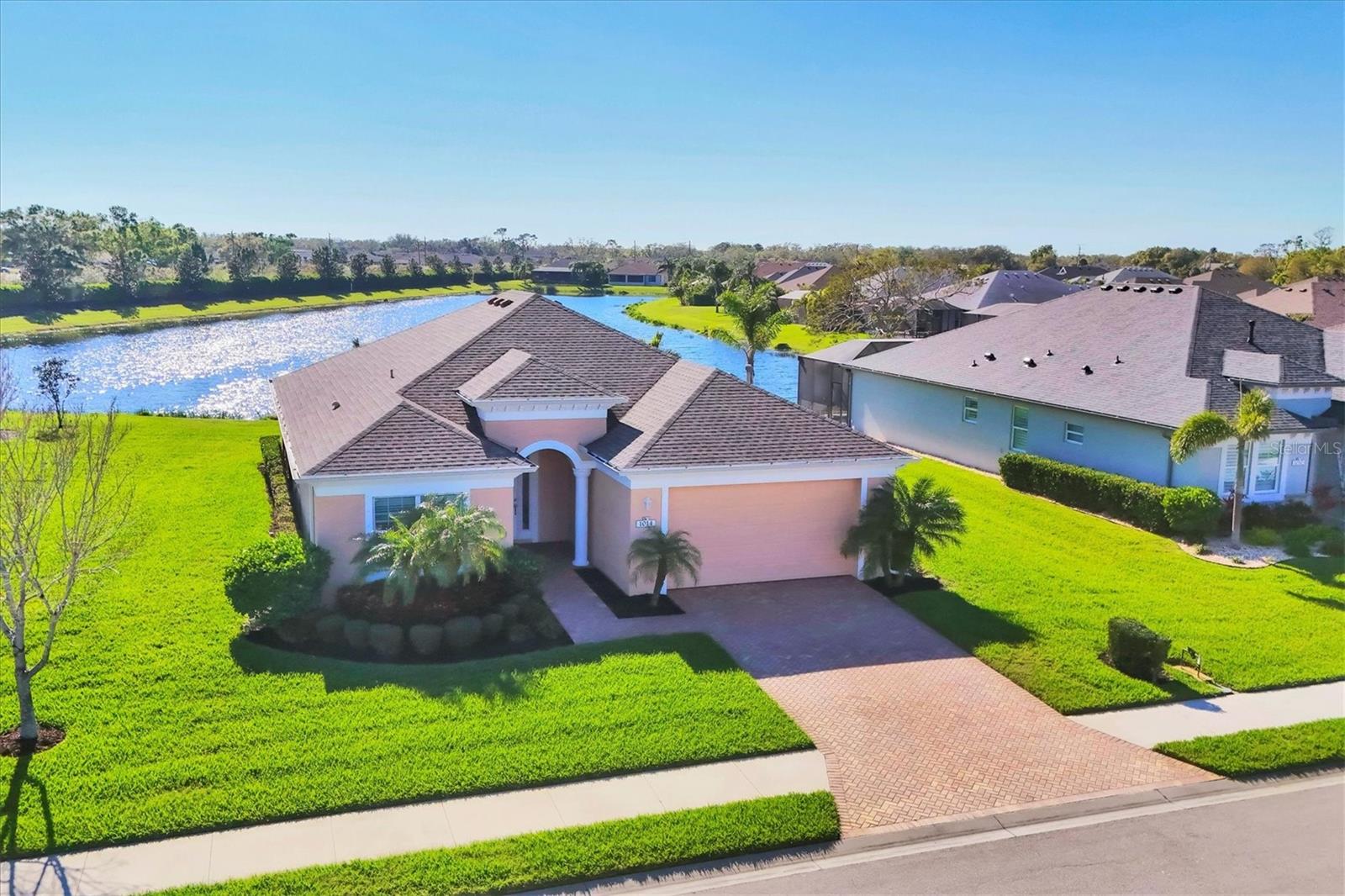 Welcome to this stunning Allura model by Homes by Towne with a long-lake view. Over 2,735 total square feet, this home features an open-concept floor plan featuring two bedrooms, additional den/office, two baths, two two-car garages, and a beautiful large, screened lanai with one of the best lake views around. This home is equipped with many upgrades done by the owners including luxury wood flooring throughout, granite countertops, shiplap kitchen cabinets and more. Enjoy high ceilings throughout the home allowing an abundance of natural light. The primary suite includes walk-in closets, double vanities and a huge walk-in shower. The guest suite offers privacy for the extended guest and the home office is ideal for working from home. Three glass sliders in the living room will lead you onto the spacious over 30-foot covered lanai. The cul-de-sac on Calico Glen give each home site extra space, allowing plenty of room for a future pool. Enjoy watching the sun go down over the long lake. Gorgeous light and airy color combination throughout the home creates an inviting atmosphere for entertaining. In a desirable Greyhawk community. It offers A-rated Lakewood Ranch schools and amenities galore, two resort-style pools, fitness center with top notch equipment, clubhouse facilities, tennis, soccer, bocce and basketball courts, baseball field, playgrounds, fishing pier, miles of beautiful walking trails and endless wildlife. Greyhawk Landing is minutes from Interstate 75 and Costco, Lakewood Ranch Main Street, University Mall and Florida’s most amazing white sandy beaches.