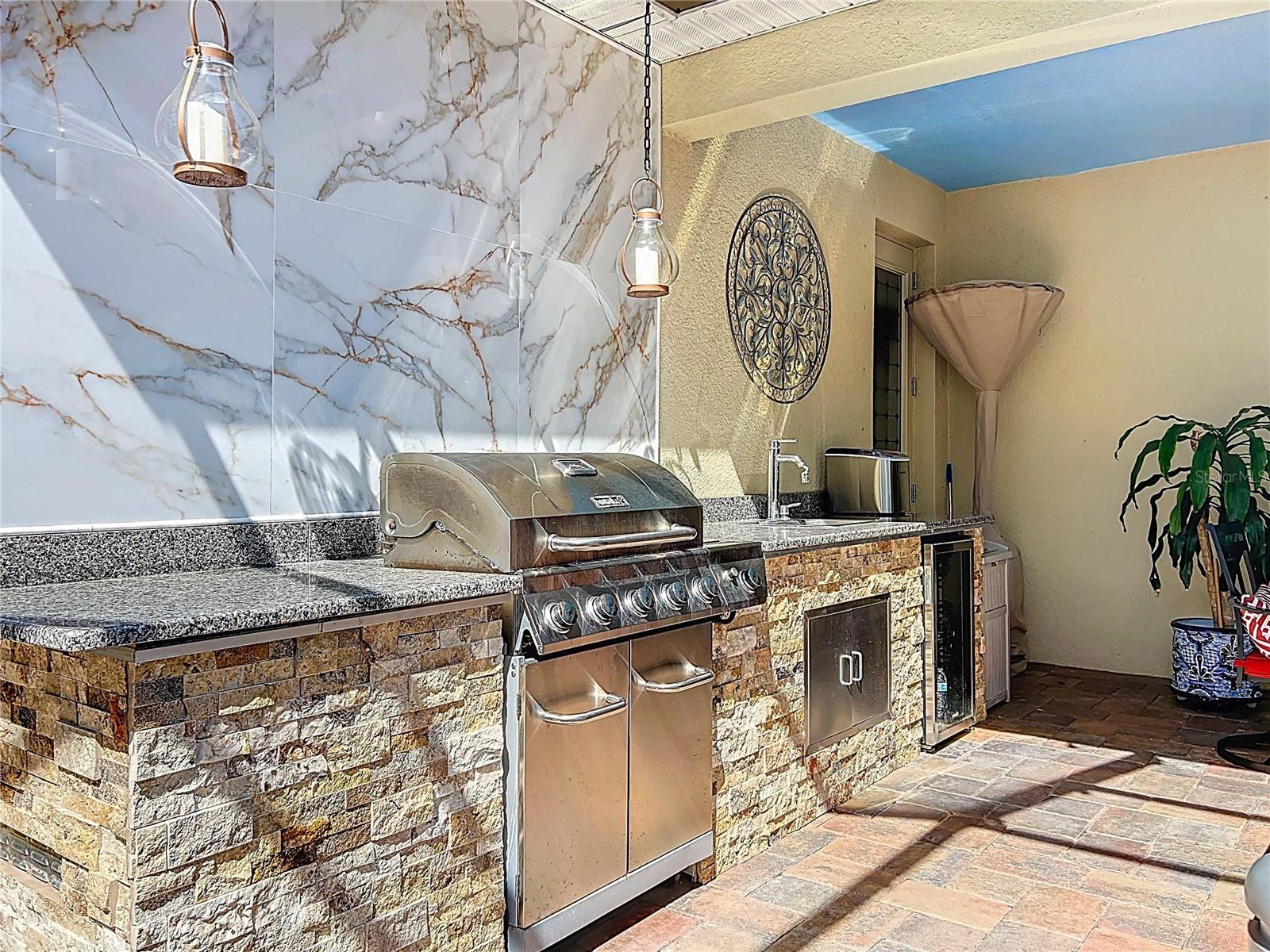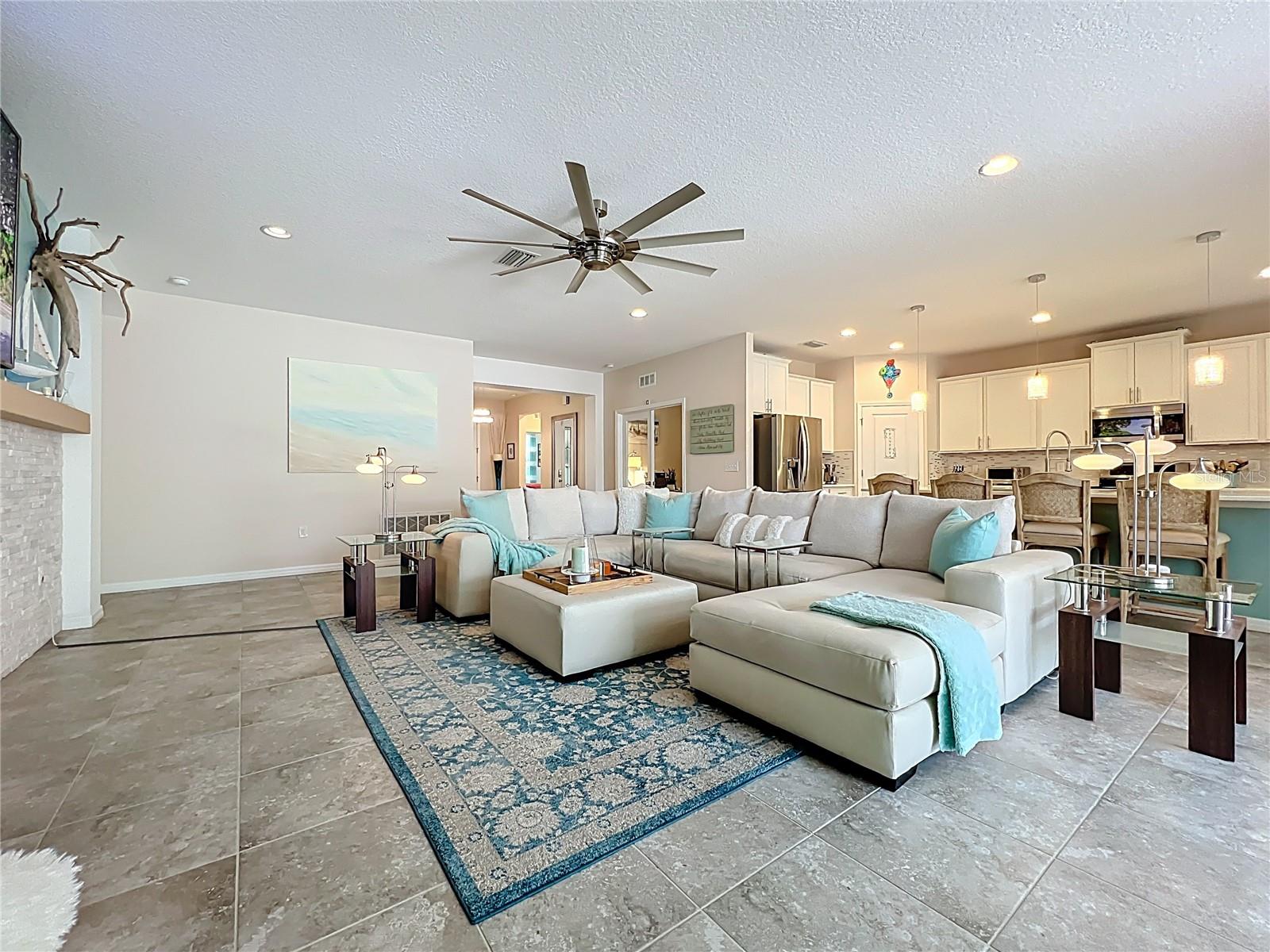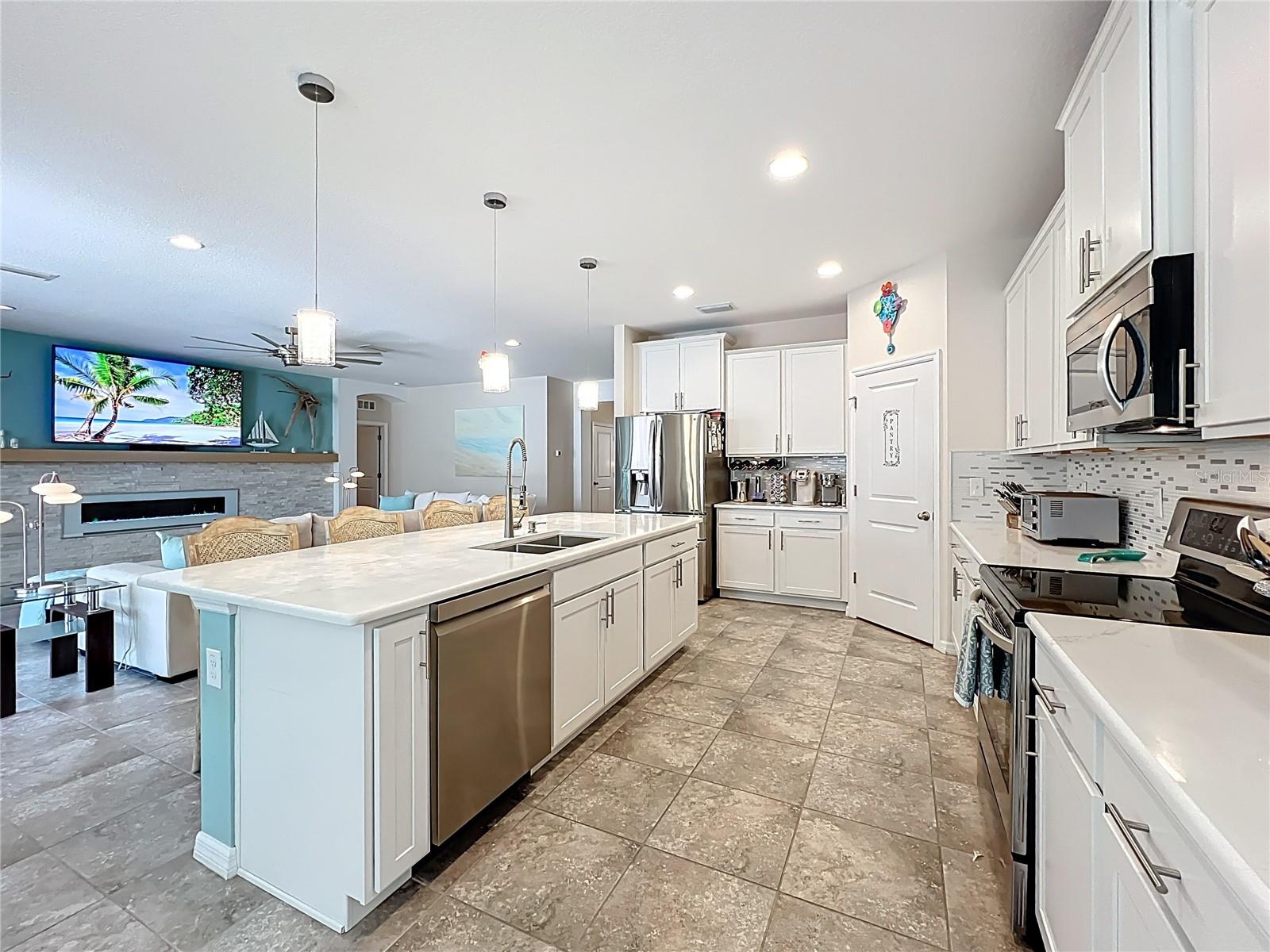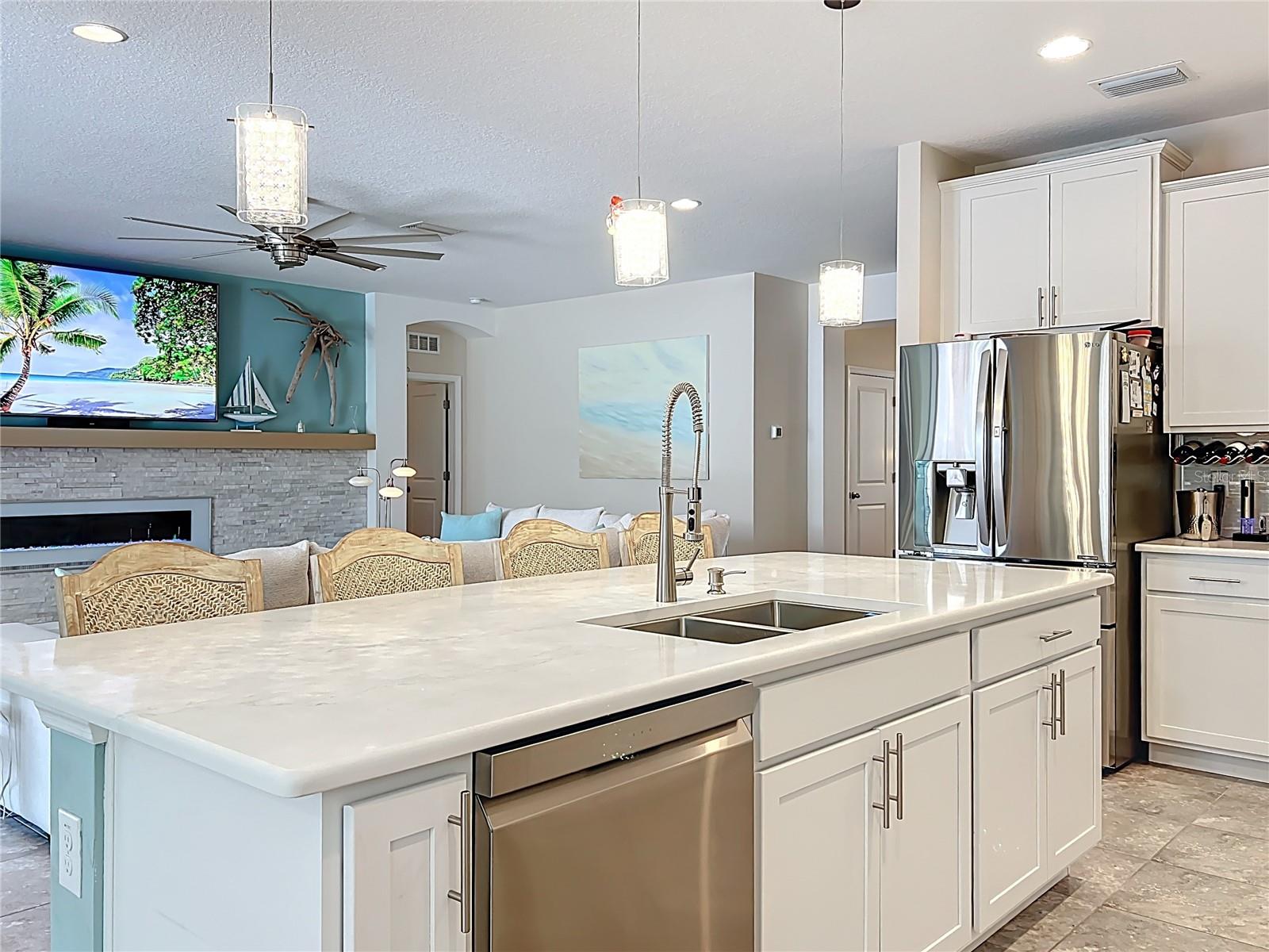 A Beautiful home in Del Tierra invites you to have it all. Three spacious bedrooms, three baths, double glass Office door, Open Plan Living/Dining/Kitchen with upgraded LG appliances and beautiful white quartz countertops, tile floors throughout living areas and Primary Bedroom and luxury vinyl plank flooring in guest bedrooms. The Spacious Primary Suite features two walk-in closets, dual sinks, makeup counter, shower and large soaking tub. Each custom decorated guest bedroom, one of which is ensuite, invites you to relax and enjoy the ambiance of Florida living. The laundry room with additional cabinetry flows into an extra walk-in closet that is currently being used as a second smaller office. The 3 car garage offers shelving along the top of the wall and a good amount of additional storage in the attic. After a hard day step into your backyard Oasis overlooking a gorgeous preserve and pond with your own pool table, summer kitchen with sink and wine fridge, Gazebo with waterfall, a 9x18x52 pool with deck and a Fantastic Tiki Bar to kick back, watch the game and have a cool drink! Del Tierra also has a great Resort Style Zero Entry Pool, Fitness Room, Picnic Areas, Playground and Soccer Field. Florida’s beautiful beaches are a short drive away, along with shopping, entertainment, theatres and restaurants. This is truly one-in-a-million!