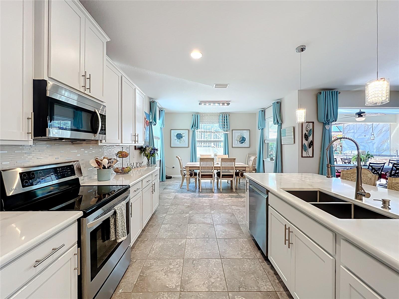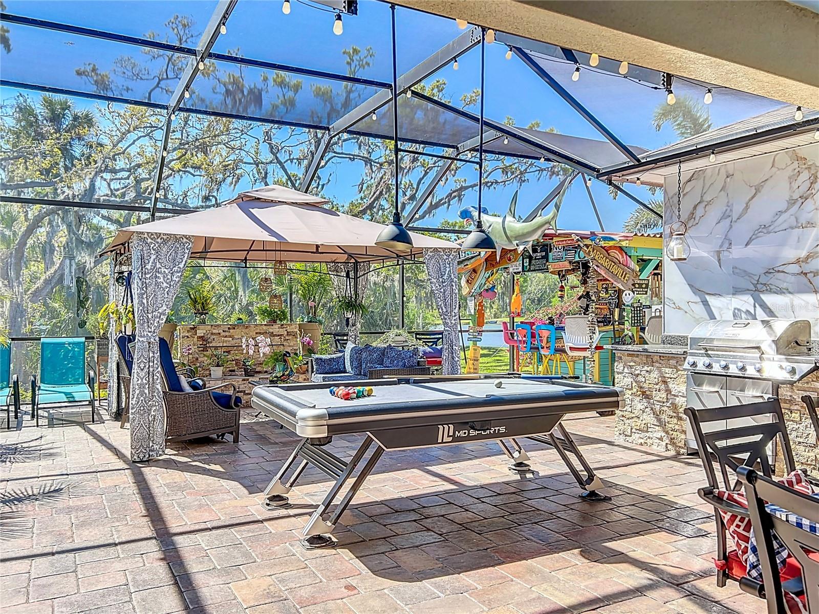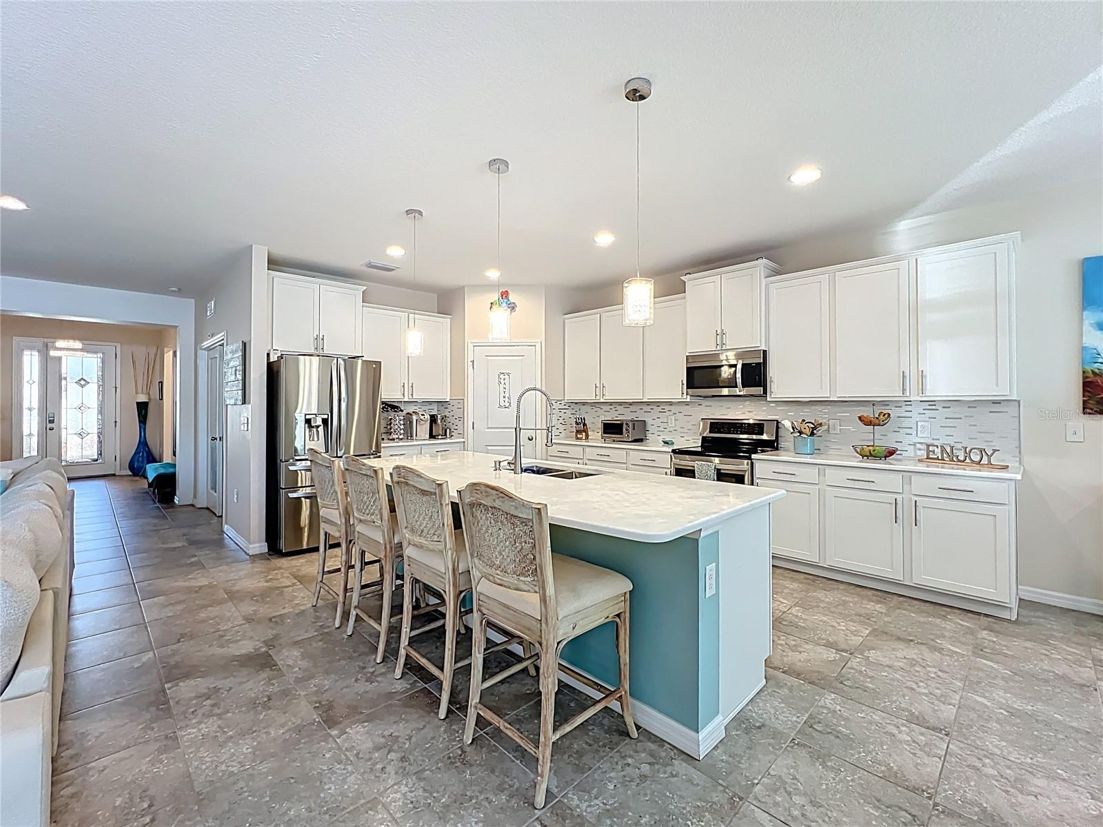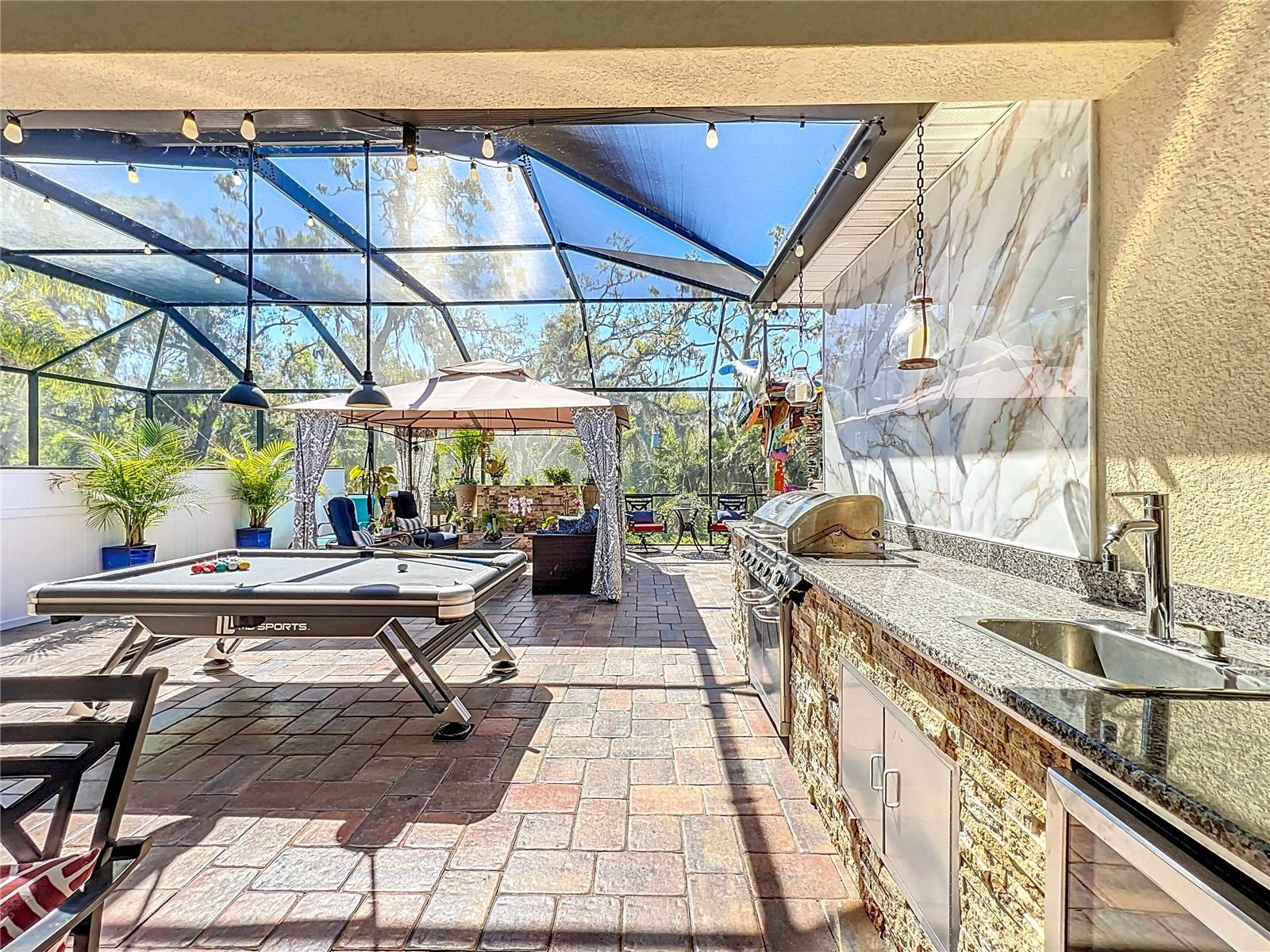 A Beautiful home in Del Tierra invites you to have it all. Three spacious bedrooms, three baths, double glass Office door, Open Plan Living/Dining/Kitchen with upgraded LG appliances and beautiful white quartz countertops, tile floors throughout living areas and Primary Bedroom and luxury vinyl plank flooring in guest bedrooms. The Spacious Primary Suite features two walk-in closets, dual sinks, makeup counter, shower and large soaking tub. Each custom decorated guest bedroom, one of which is ensuite, invites you to relax and enjoy the ambiance of Florida living. The laundry room with additional cabinetry flows into an extra walk-in closet that is currently being used as a second smaller office. The 3 car garage offers shelving along the top of the wall and a good amount of additional storage in the attic. After a hard day step into your backyard Oasis overlooking a gorgeous preserve and pond with your own pool table, summer kitchen with sink and wine fridge, Gazebo with waterfall, a 9x18x52 pool with deck and a Fantastic Tiki Bar to kick back, watch the game and have a cool drink! Del Tierra also has a great Resort Style Zero Entry Pool, Fitness Room, Picnic Areas, Playground and Soccer Field. Florida’s beautiful beaches are a short drive away, along with shopping, entertainment, theatres and restaurants. This is truly one-in-a-million!