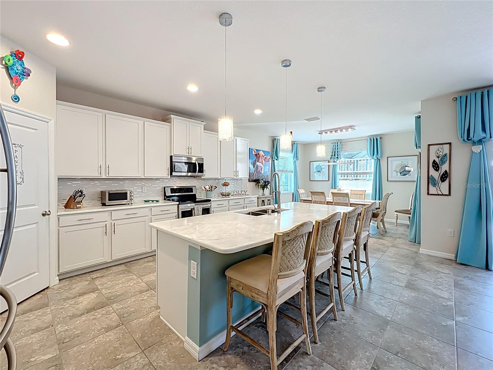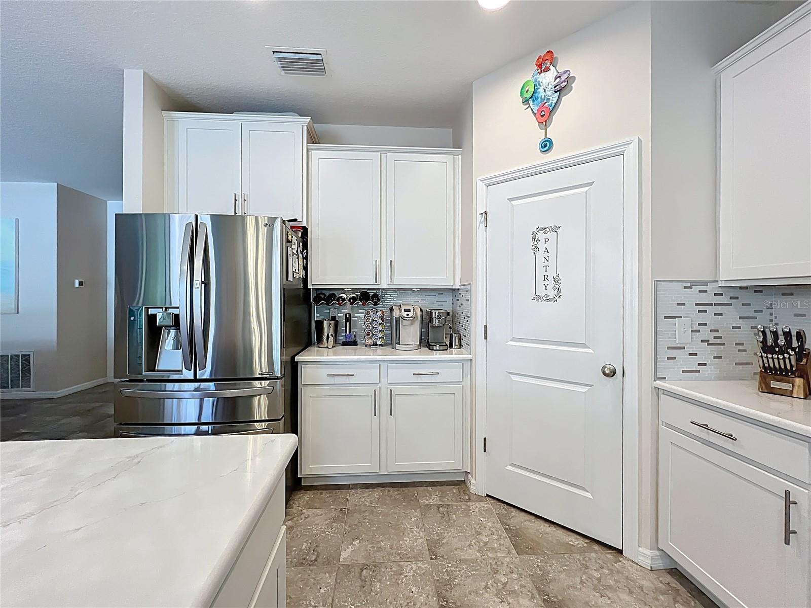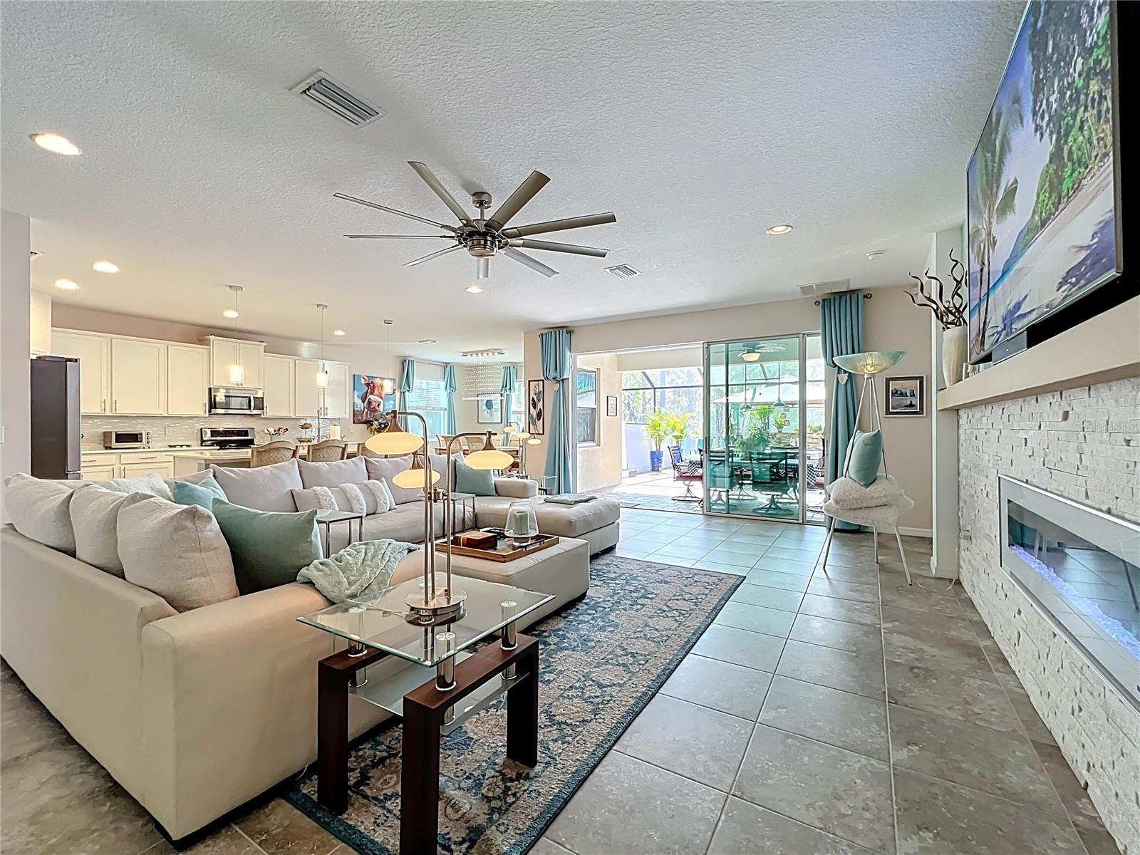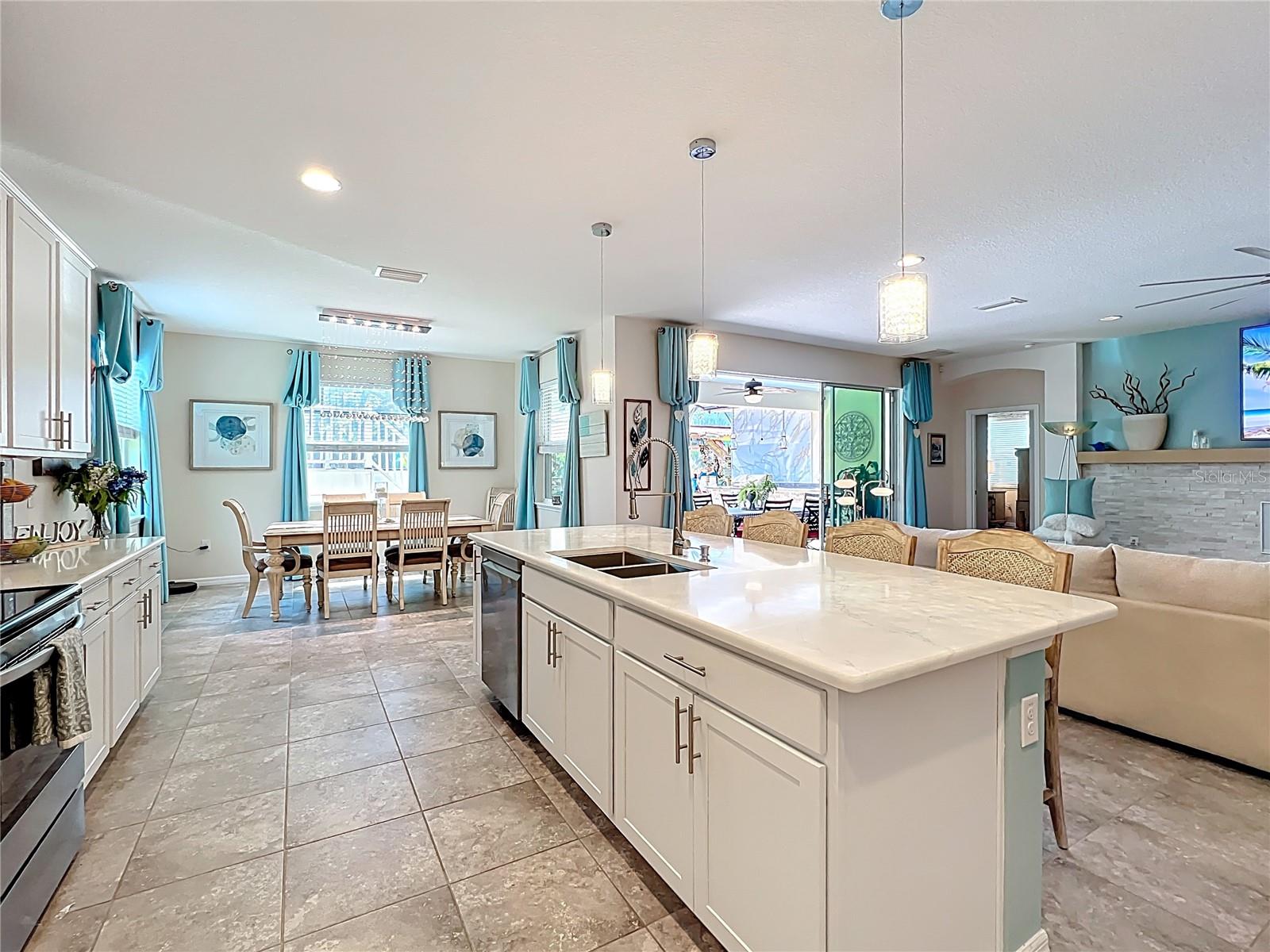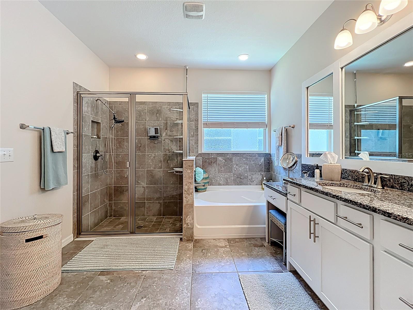 A Beautiful home in Del Tierra invites you to have it all. Three spacious bedrooms, three baths, double glass Office door, Open Plan Living/Dining/Kitchen with upgraded LG appliances and beautiful white quartz countertops, tile floors throughout living areas and Primary Bedroom and luxury vinyl plank flooring in guest bedrooms. The Spacious Primary Suite features two walk-in closets, dual sinks, makeup counter, shower and large soaking tub. Each custom decorated guest bedroom, one of which is ensuite, invites you to relax and enjoy the ambiance of Florida living. The laundry room with additional cabinetry flows into an extra walk-in closet that is currently being used as a second smaller office. The 3 car garage offers shelving along the top of the wall and a good amount of additional storage in the attic. After a hard day step into your backyard Oasis overlooking a gorgeous preserve and pond with your own pool table, summer kitchen with sink and wine fridge, Gazebo with waterfall, a 9x18x52 pool with deck and a Fantastic Tiki Bar to kick back, watch the game and have a cool drink! Del Tierra also has a great Resort Style Zero Entry Pool, Fitness Room, Picnic Areas, Playground and Soccer Field. Florida’s beautiful beaches are a short drive away, along with shopping, entertainment, theatres and restaurants. This is truly one-in-a-million!