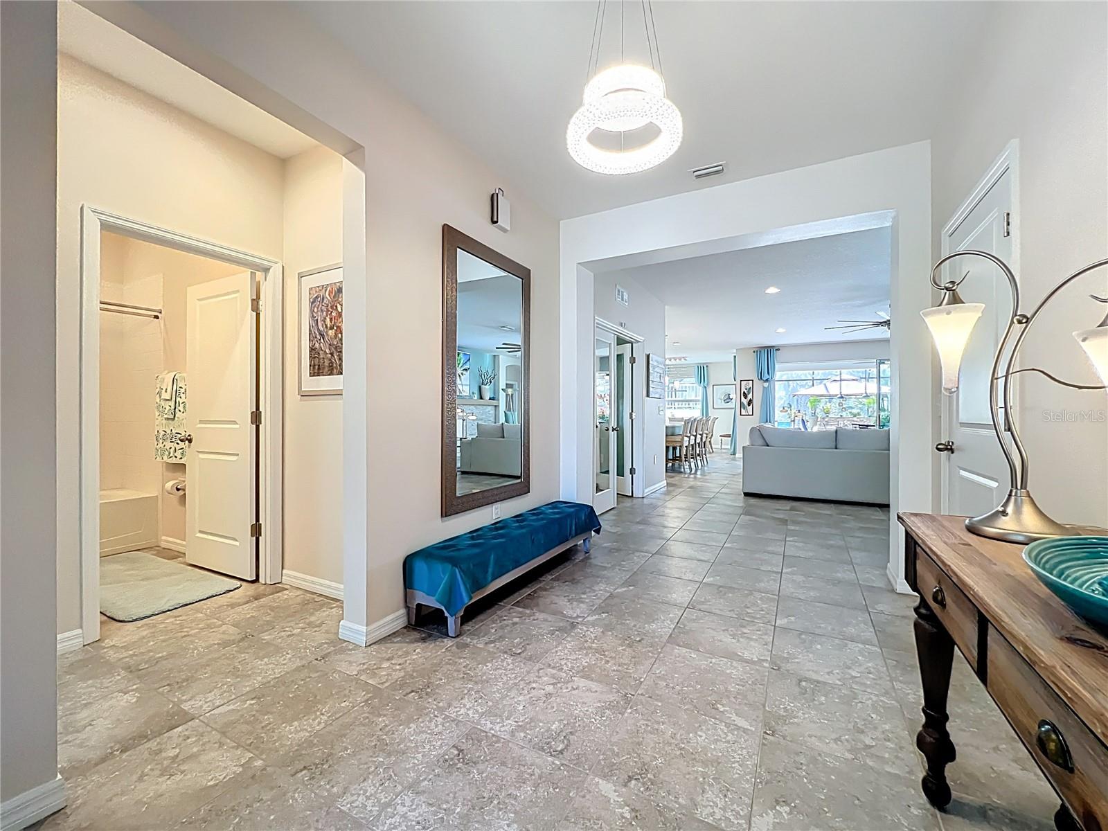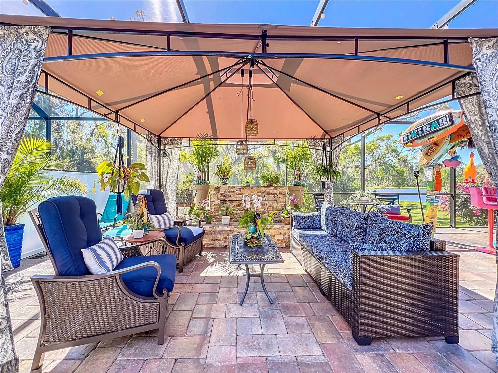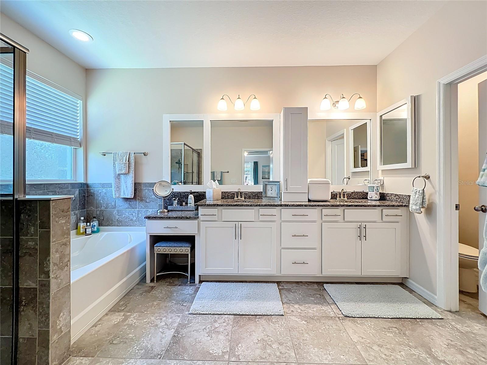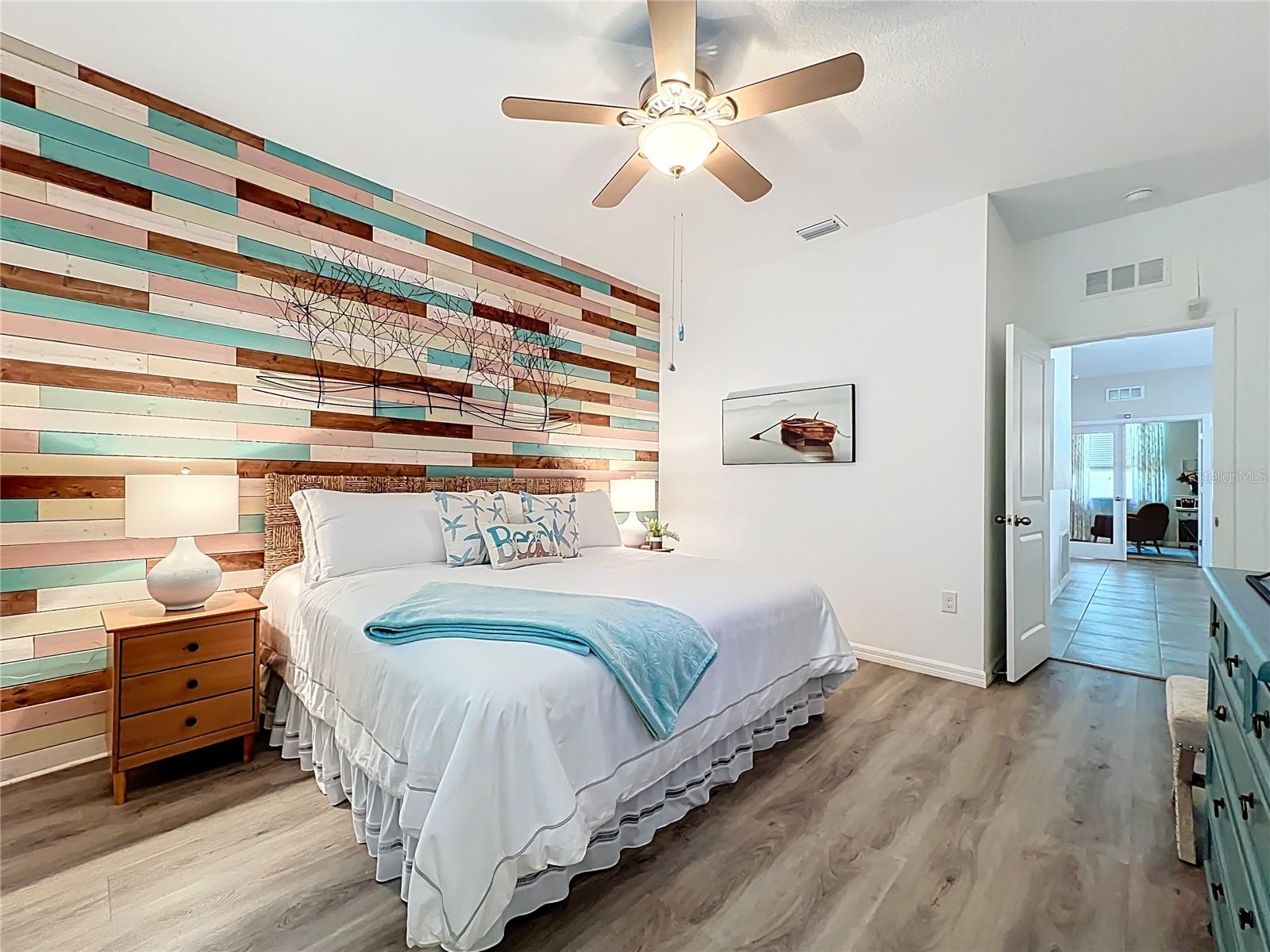 A Beautiful home in Del Tierra invites you to have it all. Three spacious bedrooms, three baths, double glass Office door, Open Plan Living/Dining/Kitchen with upgraded LG appliances and beautiful white quartz countertops, tile floors throughout living areas and Primary Bedroom and luxury vinyl plank flooring in guest bedrooms. The Spacious Primary Suite features two walk-in closets, dual sinks, makeup counter, shower and large soaking tub. Each custom decorated guest bedroom, one of which is ensuite, invites you to relax and enjoy the ambiance of Florida living. The laundry room with additional cabinetry flows into an extra walk-in closet that is currently being used as a second smaller office. The 3 car garage offers shelving along the top of the wall and a good amount of additional storage in the attic. After a hard day step into your backyard Oasis overlooking a gorgeous preserve and pond with your own pool table, summer kitchen with sink and wine fridge, Gazebo with waterfall, a 9x18x52 pool with deck and a Fantastic Tiki Bar to kick back, watch the game and have a cool drink! Del Tierra also has a great Resort Style Zero Entry Pool, Fitness Room, Picnic Areas, Playground and Soccer Field. Florida’s beautiful beaches are a short drive away, along with shopping, entertainment, theatres and restaurants. This is truly one-in-a-million!