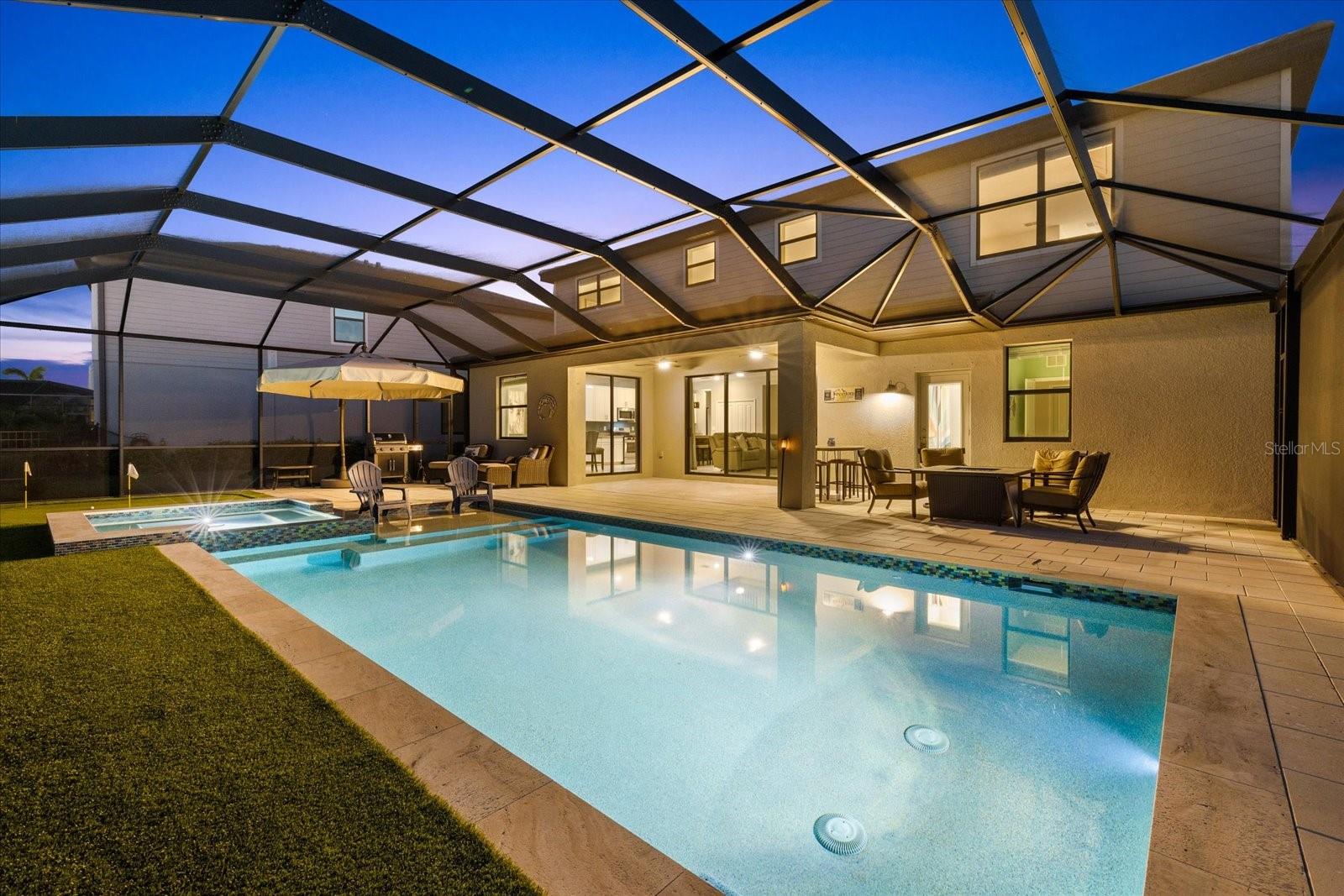 Stunning 5-Bedroom Sorrento Model in Lorraine Lakes – The Ultimate Blend of Luxury, Space & Comfort: Welcome to this breathtaking two-story home in the highly sought-after Lorraine Lakes community in Lakewood Ranch. This 5-bedroom, 4.5-bath Sorrento model checks all the boxes for those seeking amenities, space, and comfort, with plenty of room to entertain. As you step inside, you're greeted by an elegant formal living and dining room, boasting an open-concept feel with access to the second floor. The heart of the home unfolds towards the back, where captivating pool views and soaring two-story ceilings in the great room create an airy, light-filled ambiance. The white shaker kitchen cabinets, solid stone countertops, and oversized island seamlessly integrate with the eat-in kitchen and spacious family room, making this space perfect for gathering. The first floor also features a dedicated laundry room, a guest bedroom, a pool bathroom, a half bath, and 3-car garage access for added convenience. Upstairs, a massive loft area awaits—ideal for gaming, lounging, or entertaining. Three spacious guest bedrooms and two additional guest bathrooms provide ample accommodation. The primary suite spans an entire side of the home, offering a massive sleeping area, dual walk-in closets, and a luxurious 5-piece en suite bath. Step outside to the extended lanai through expansive slider doors to enjoy Florida living at its finest. The custom pool and spa with a clear-view screen frame breathtaking sunsets and water views. The backyard also features a private putting green and a spacious lot with ample privacy, catering to even the most discerning buyers. Beyond the luxurious confines of this home which is located on a cul-de-sac, Lorraine Lakes offers resort-style amenities within a gated community. The state-of-the-art clubhouse includes its own restaurant and tiki bar, a fitness center, an arcade, a dining room, and indoor/outdoor sports facilities such as basketball, volleyball, pickle-ball, tennis, and bocce courts. A splash pad and putting green add to the entertainment options. This home is conveniently located near the LWR Sports Complex, A-rated schools, Waterside, LWR Main Street, UTC, and just a short drive to Downtown Bradenton, Downtown Sarasota, Tampa, St. Petersburg, and the pristine beaches of the Gulf Coast. Whether you're looking for a primary residence or a dream vacation home, this property delivers the ultimate blend of luxury, convenience, and Florida lifestyle. Don't miss your chance to own this spectacular home—schedule your private tour today!