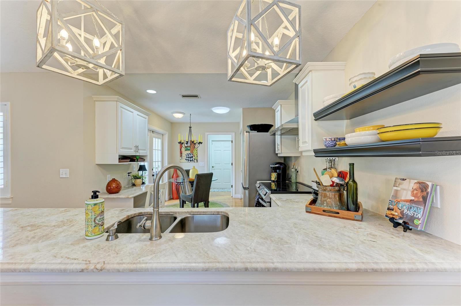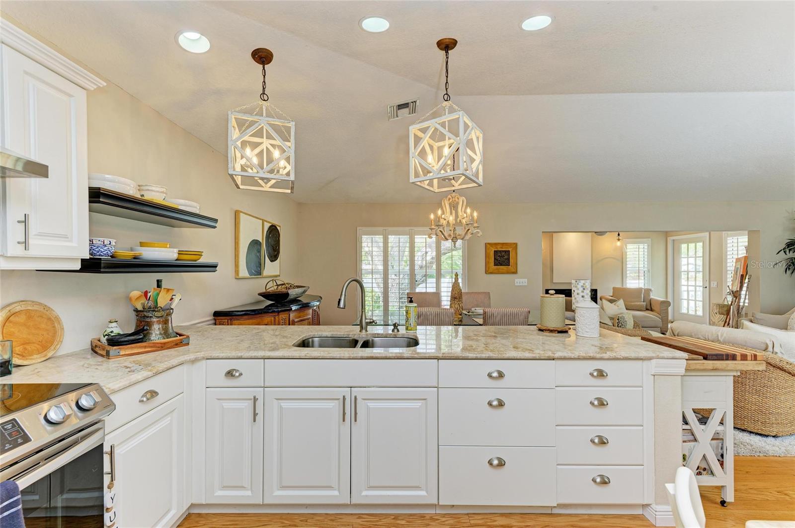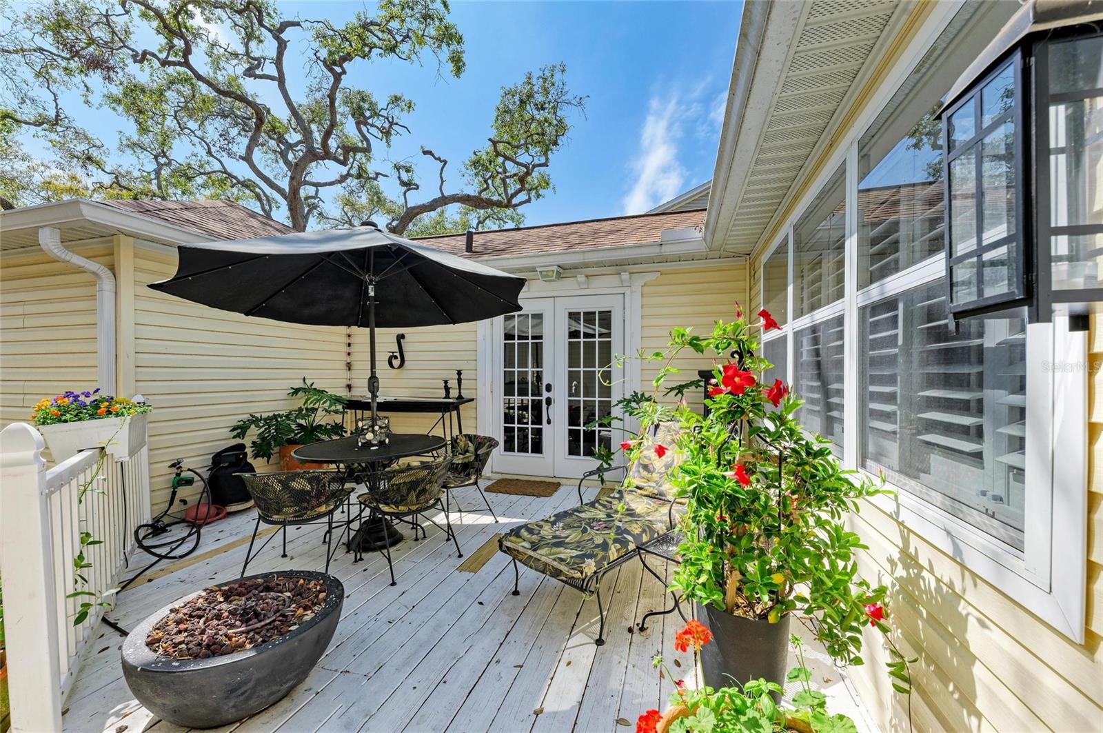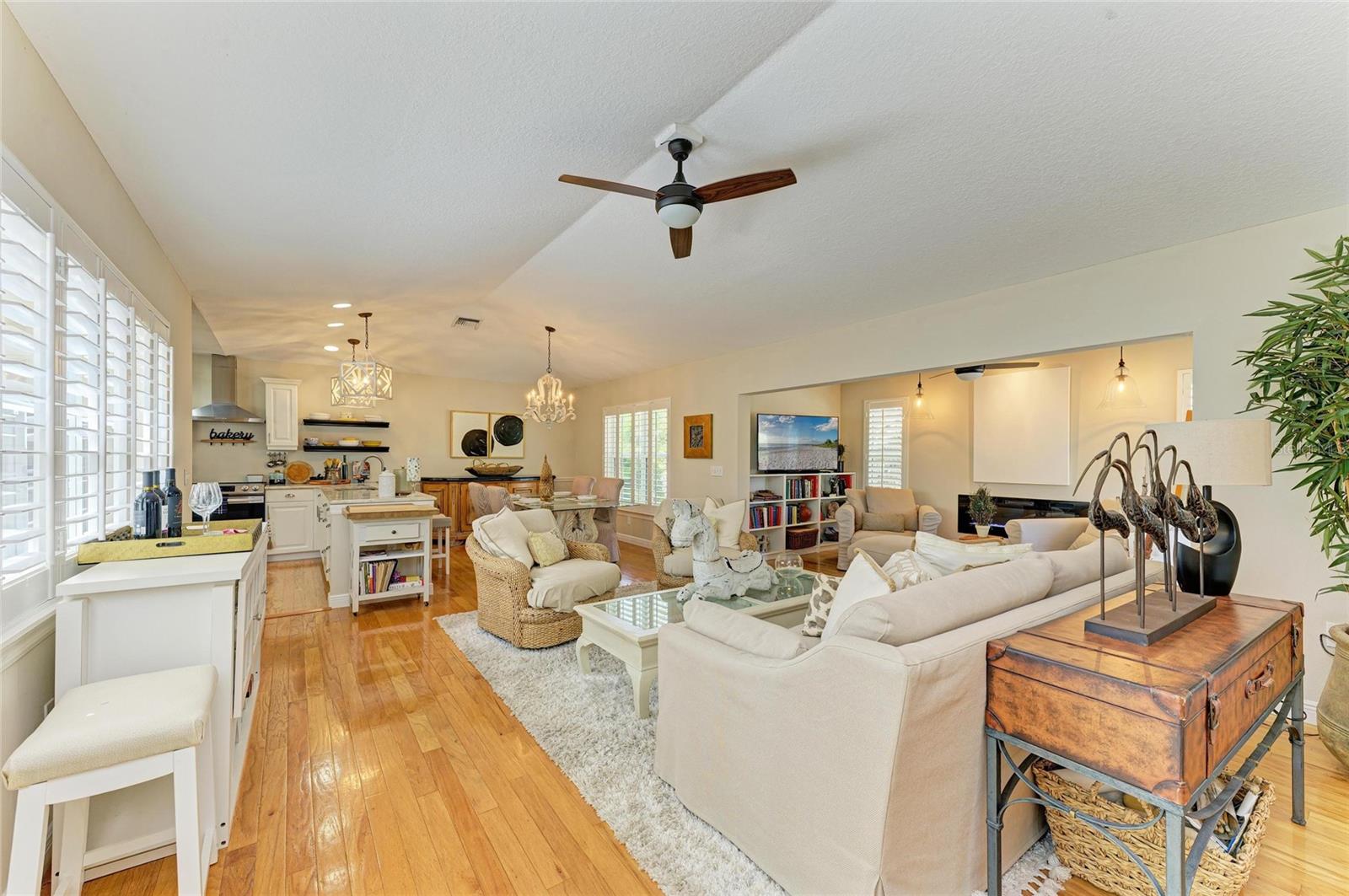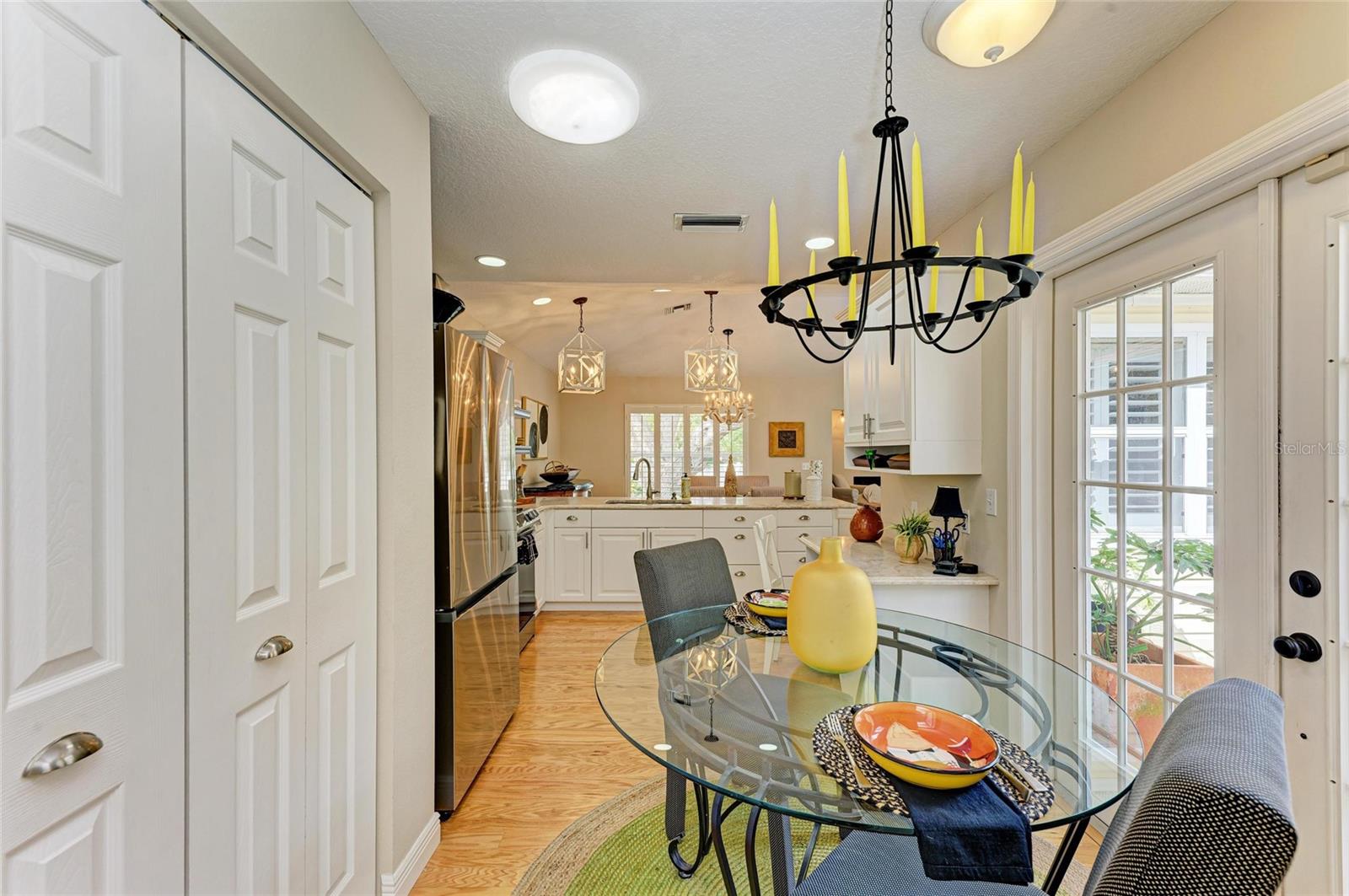 Beautifully updated and an open design you will notice the elegance from the moment you walk in the door! Whether sitting in the formal Livingroom, the cozy conversation area in front of the fireplace, or close the glass French doors to the office/library (use it as you wish). Let's not forget the beautiful kitchen with large peninsula overlooking the nice size dining area. There is even a great little spot to enjoy coffee right in the kitchen looking out onto your private deck. Also off of the kitchen is the laundry room, with extra storage and the entry from your two-car attached garage! Speaking of storage this home has no shortage of it with large closets and extra closets around every corner it seems! A large primary suite offers a walk in closet and great ensuite bath. Just down the hall you will find the second bedroom also with a walk-in closet and access to the second bath. Out the back door is an oasis with a grilling area and sitting spot to enjoy the outdoors! Literally just steps from your front door you will find the heated pool which is in a lanai for your enjoyment! The neighborhood has beautiful mature trees and landscaping. This truly is a little slice of heaven offering peace and tranquility. Schedule a showing today to see all this home and community has to offer! NOTE** Per seller total sq. ft. is larger due to recent remodel enclosing lanai and opening to main living area see permit BR231389. NOTE seller has light fixtures above kitchen island, dining table and kitchen table reserved as they are family heirlooms, will be replaced.