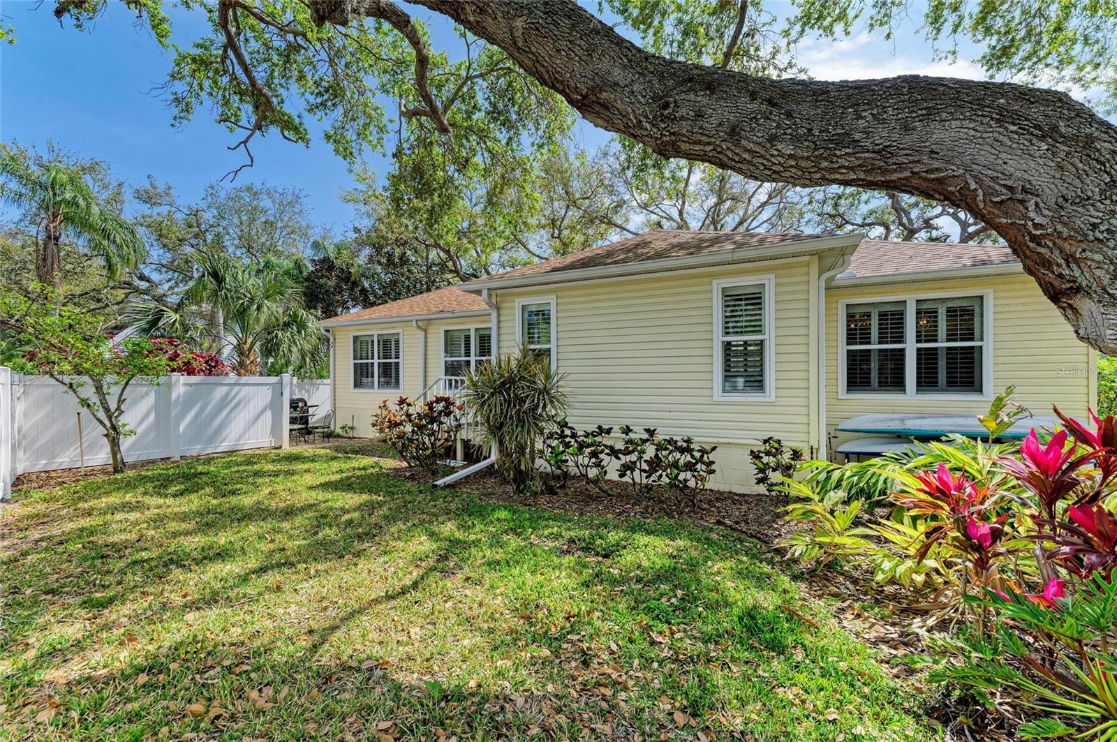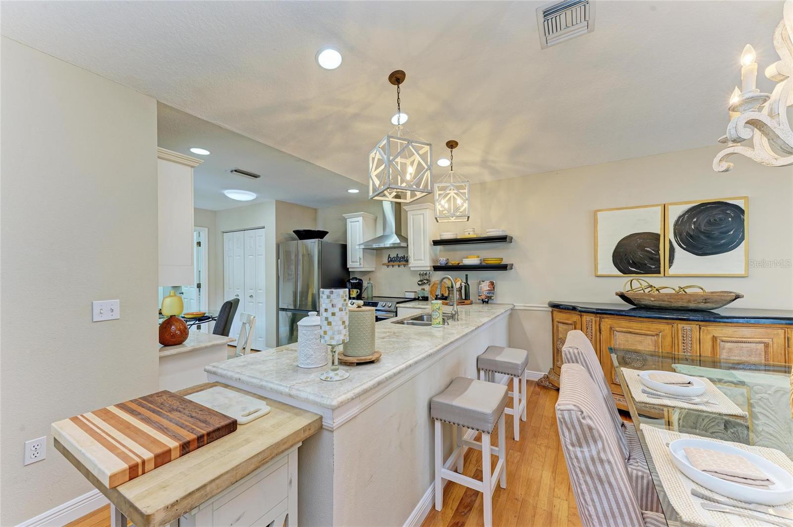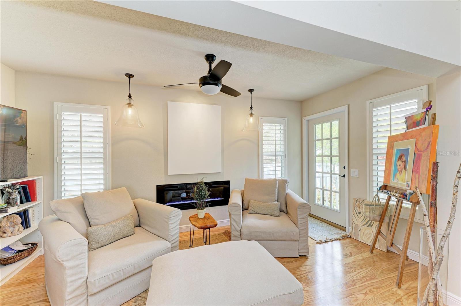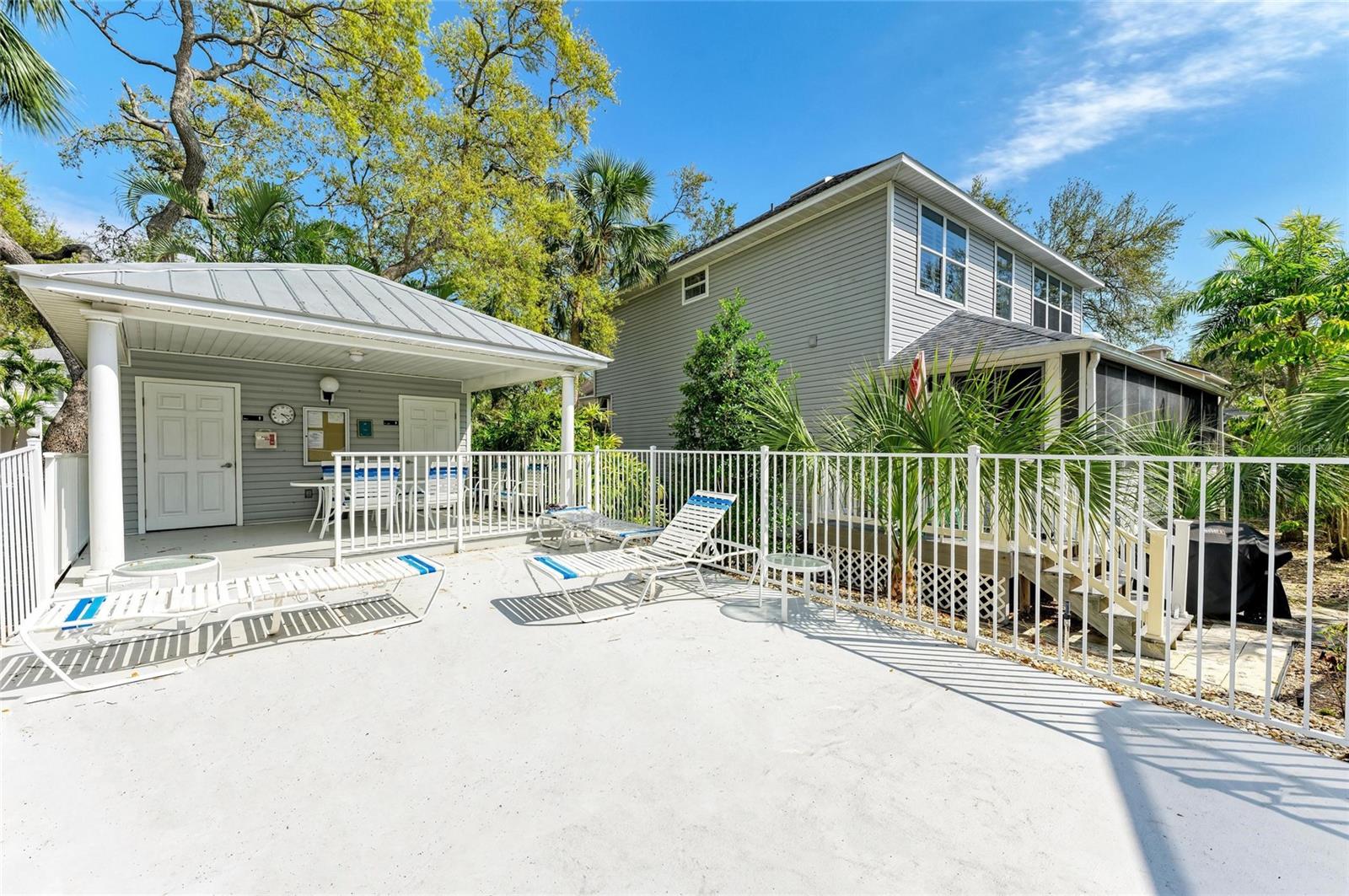 Beautifully updated and an open design you will notice the elegance from the moment you walk in the door! Whether sitting in the formal Livingroom, the cozy conversation area in front of the fireplace, or close the glass French doors to the office/library (use it as you wish). Let's not forget the beautiful kitchen with large peninsula overlooking the nice size dining area. There is even a great little spot to enjoy coffee right in the kitchen looking out onto your private deck. Also off of the kitchen is the laundry room, with extra storage and the entry from your two-car attached garage! Speaking of storage this home has no shortage of it with large closets and extra closets around every corner it seems! A large primary suite offers a walk in closet and great ensuite bath. Just down the hall you will find the second bedroom also with a walk-in closet and access to the second bath. Out the back door is an oasis with a grilling area and sitting spot to enjoy the outdoors! Literally just steps from your front door you will find the heated pool which is in a lanai for your enjoyment! The neighborhood has beautiful mature trees and landscaping. This truly is a little slice of heaven offering peace and tranquility. Schedule a showing today to see all this home and community has to offer! NOTE** Per seller total sq. ft. is larger due to recent remodel enclosing lanai and opening to main living area see permit BR231389. NOTE seller has light fixtures above kitchen island, dining table and kitchen table reserved as they are family heirlooms, will be replaced.