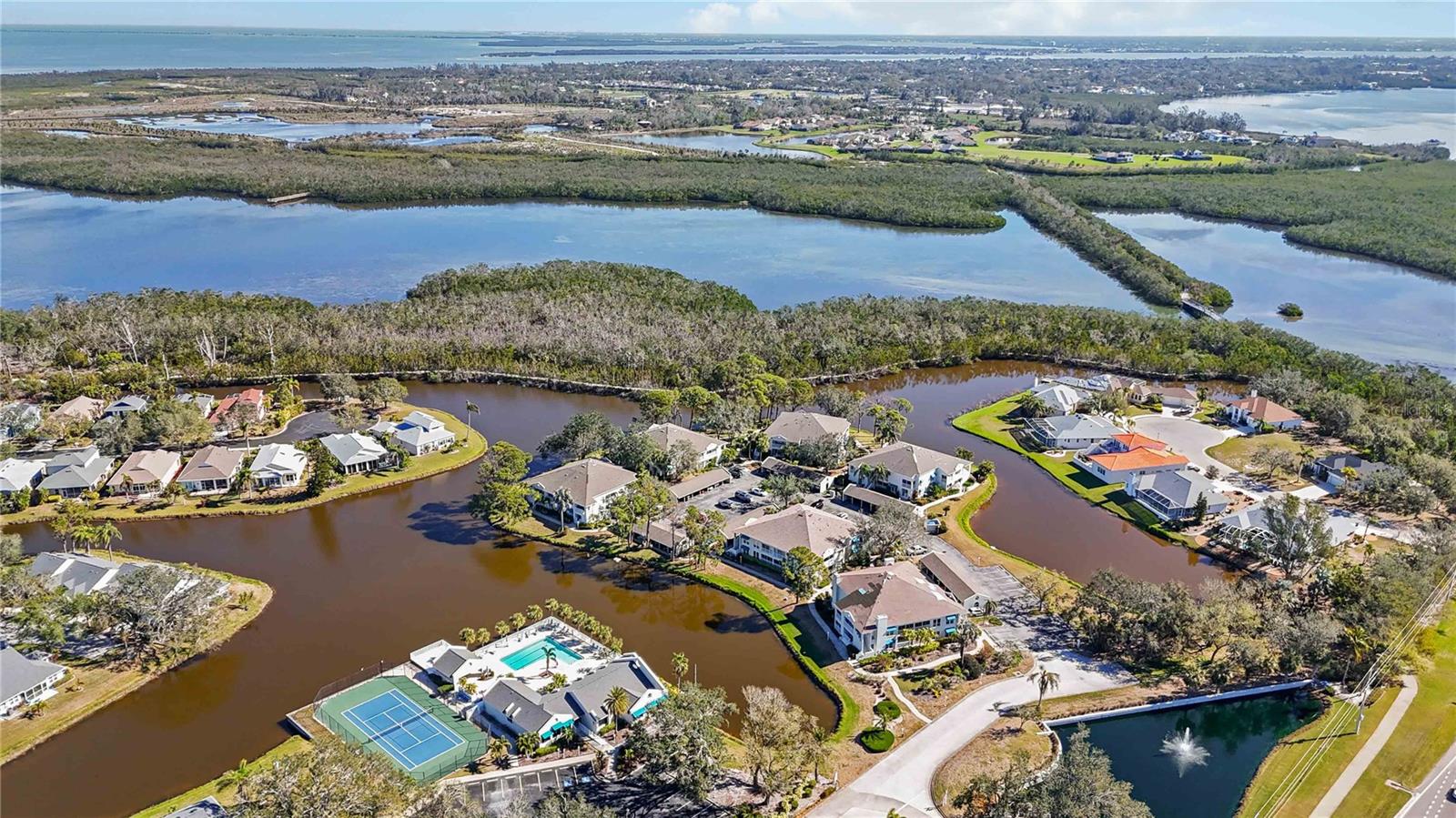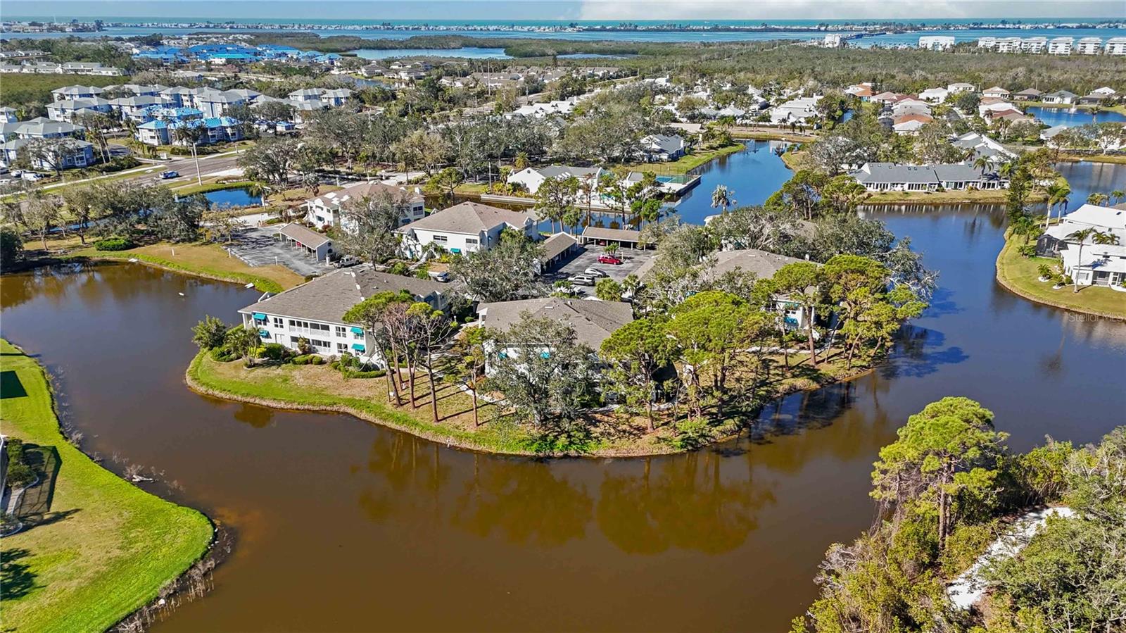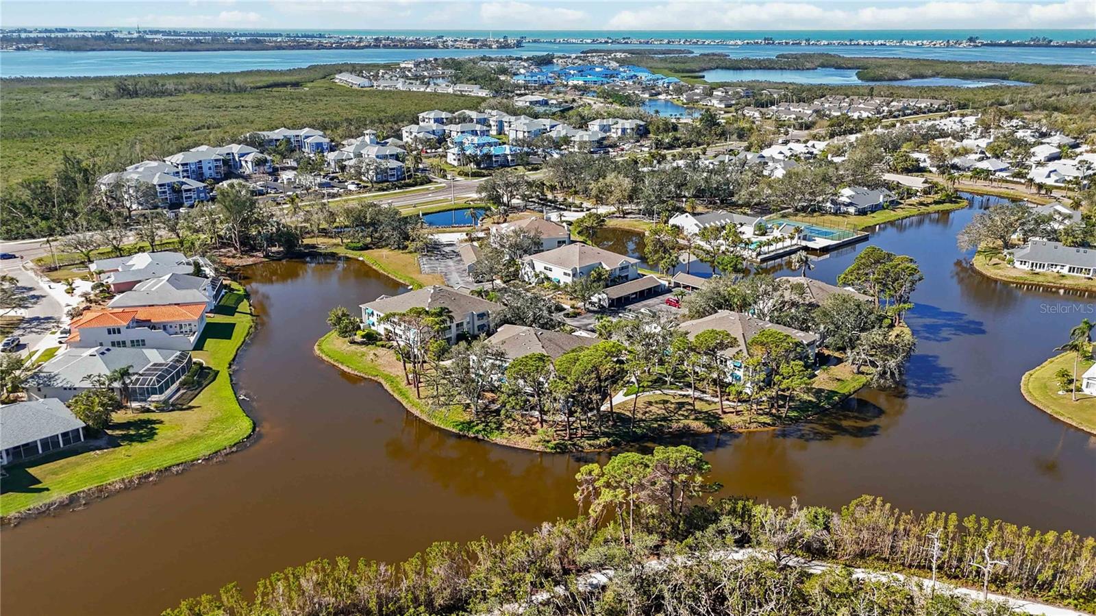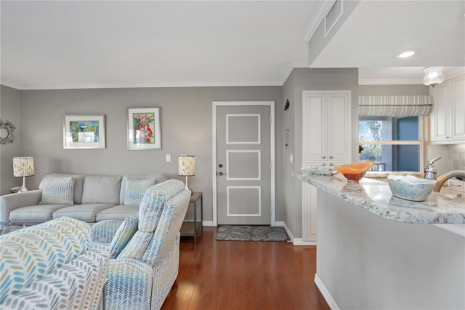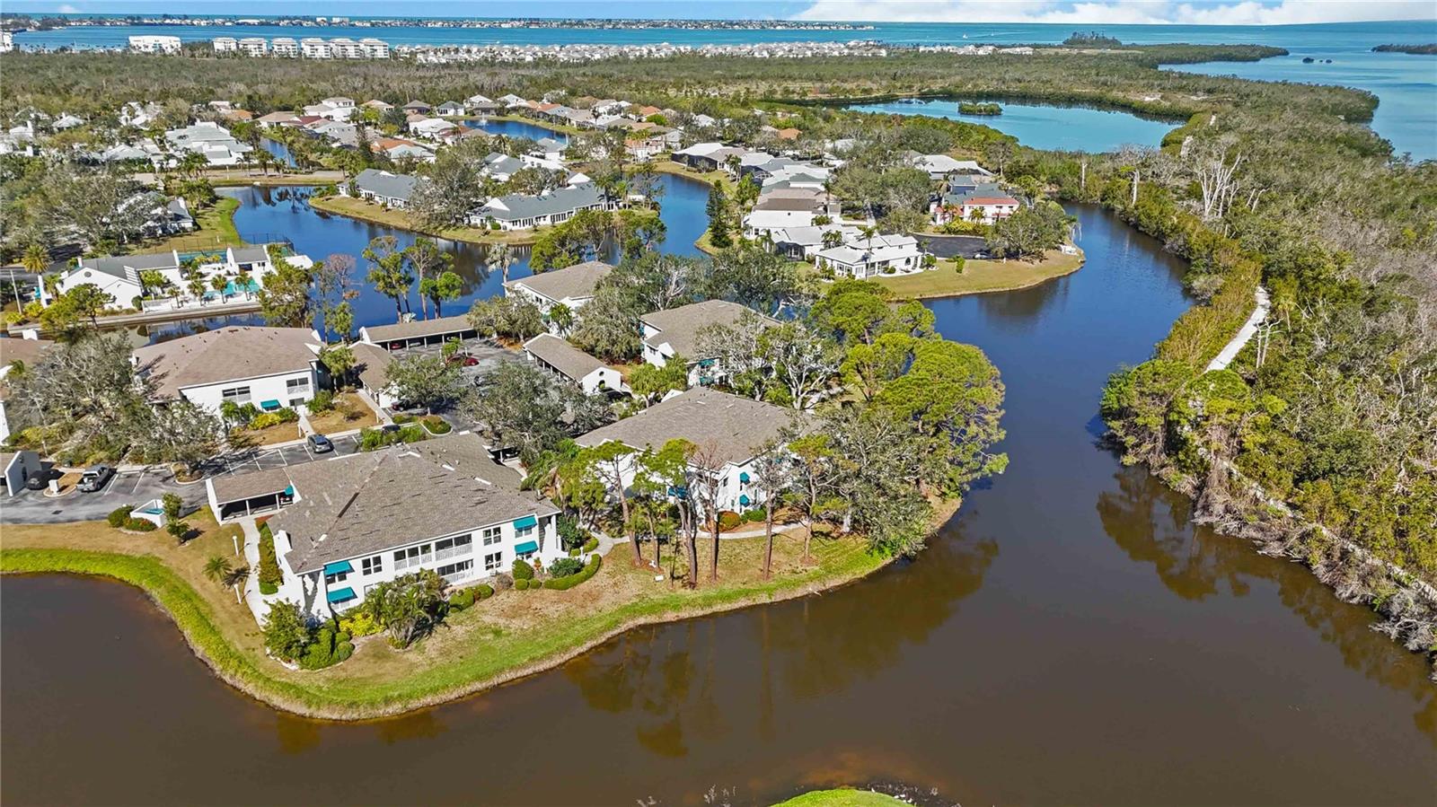 Experience unparalleled luxury in this fully updated 2-bedroom, 2-bath over 1400 sq ft condo on Perico Island. This stunning residence offers 180-degree water views from both bedrooms and the living room, enhanced by elegant crown molding and impact-resistant windows throughout. The chef’s kitchen, with its gleaming granite countertops, custom cabinetry, and top-of-the-line stainless range and dishwasher, is the heart of the home, perfect for entertaining. The engineered hardwood flooring throughout the majority of the unit truly shows off the craftmanship and pride of ownership that is unmistakable throughout the property. The primary suite offers a spacious walk-in closet, custom granite top vanities, and a gorgeously re-tiled shower that reflects the condo’s coastal charm. Enjoy your privacy with unique pocket doors that will lead directly out to a secondary living area or extension of the primary suite with one of the best views of the property. The guest bathroom also shines with a new vanity and elegant tile work. Abundant wildlife can be observed right from your front door and every window of the property, providing a serene backdrop year-round. Enjoy top-notch amenities, including a tennis court and a spacious community swimming pool. Located just a short distance from the award-winning beaches of Anna Maria Island, this condo is the ideal coastal retreat.