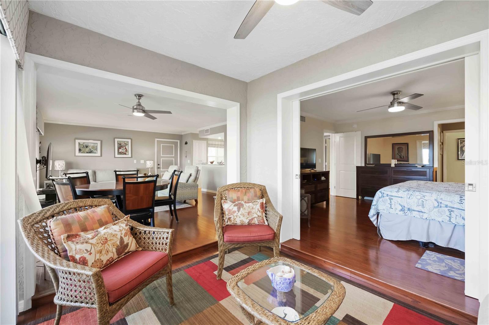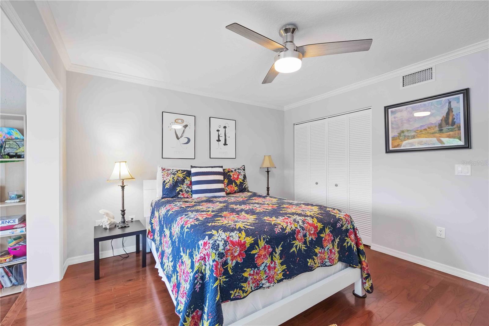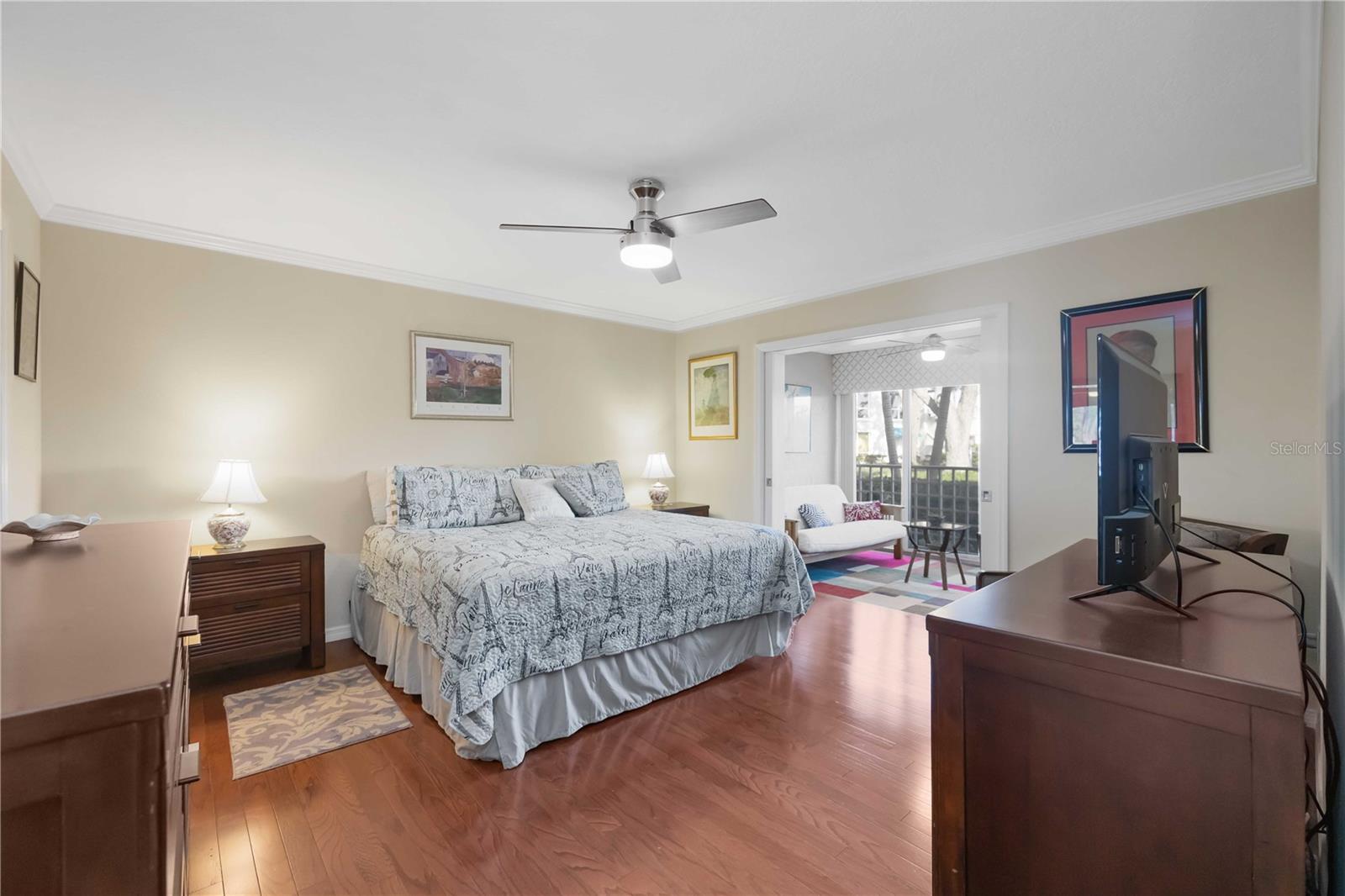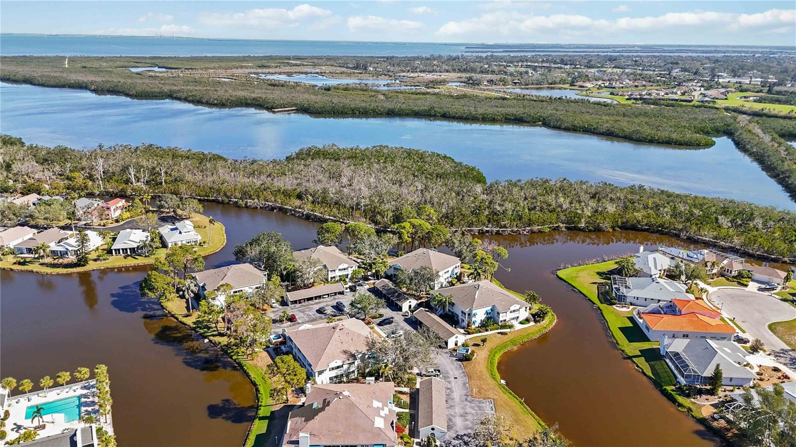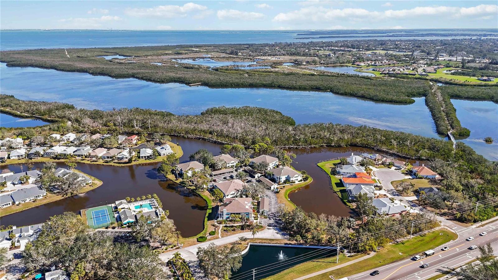 Experience unparalleled luxury in this fully updated 2-bedroom, 2-bath over 1400 sq ft condo on Perico Island. This stunning residence offers 180-degree water views from both bedrooms and the living room, enhanced by elegant crown molding and impact-resistant windows throughout. The chef’s kitchen, with its gleaming granite countertops, custom cabinetry, and top-of-the-line stainless range and dishwasher, is the heart of the home, perfect for entertaining. The engineered hardwood flooring throughout the majority of the unit truly shows off the craftmanship and pride of ownership that is unmistakable throughout the property. The primary suite offers a spacious walk-in closet, custom granite top vanities, and a gorgeously re-tiled shower that reflects the condo’s coastal charm. Enjoy your privacy with unique pocket doors that will lead directly out to a secondary living area or extension of the primary suite with one of the best views of the property. The guest bathroom also shines with a new vanity and elegant tile work. Abundant wildlife can be observed right from your front door and every window of the property, providing a serene backdrop year-round. Enjoy top-notch amenities, including a tennis court and a spacious community swimming pool. Located just a short distance from the award-winning beaches of Anna Maria Island, this condo is the ideal coastal retreat.