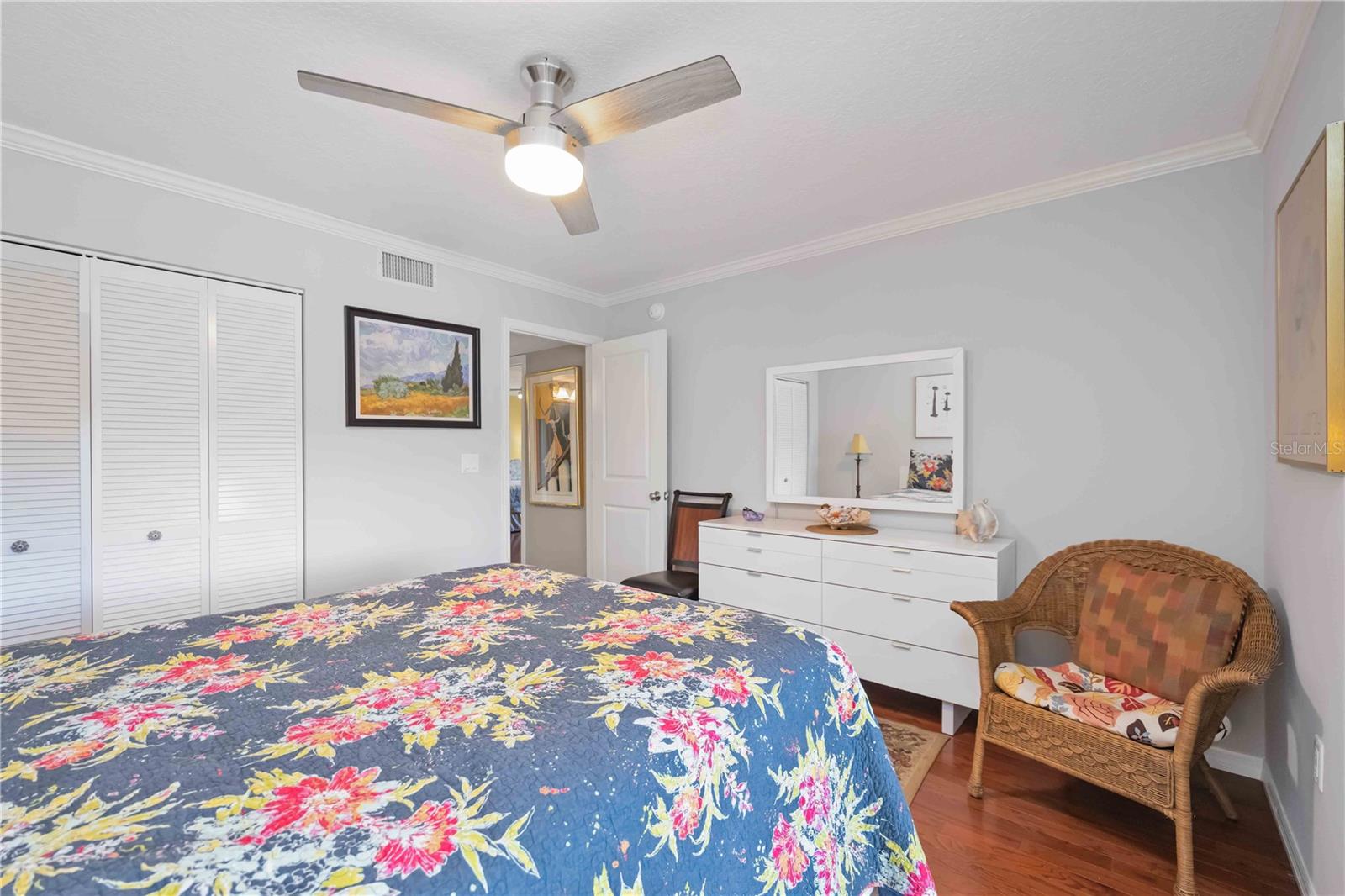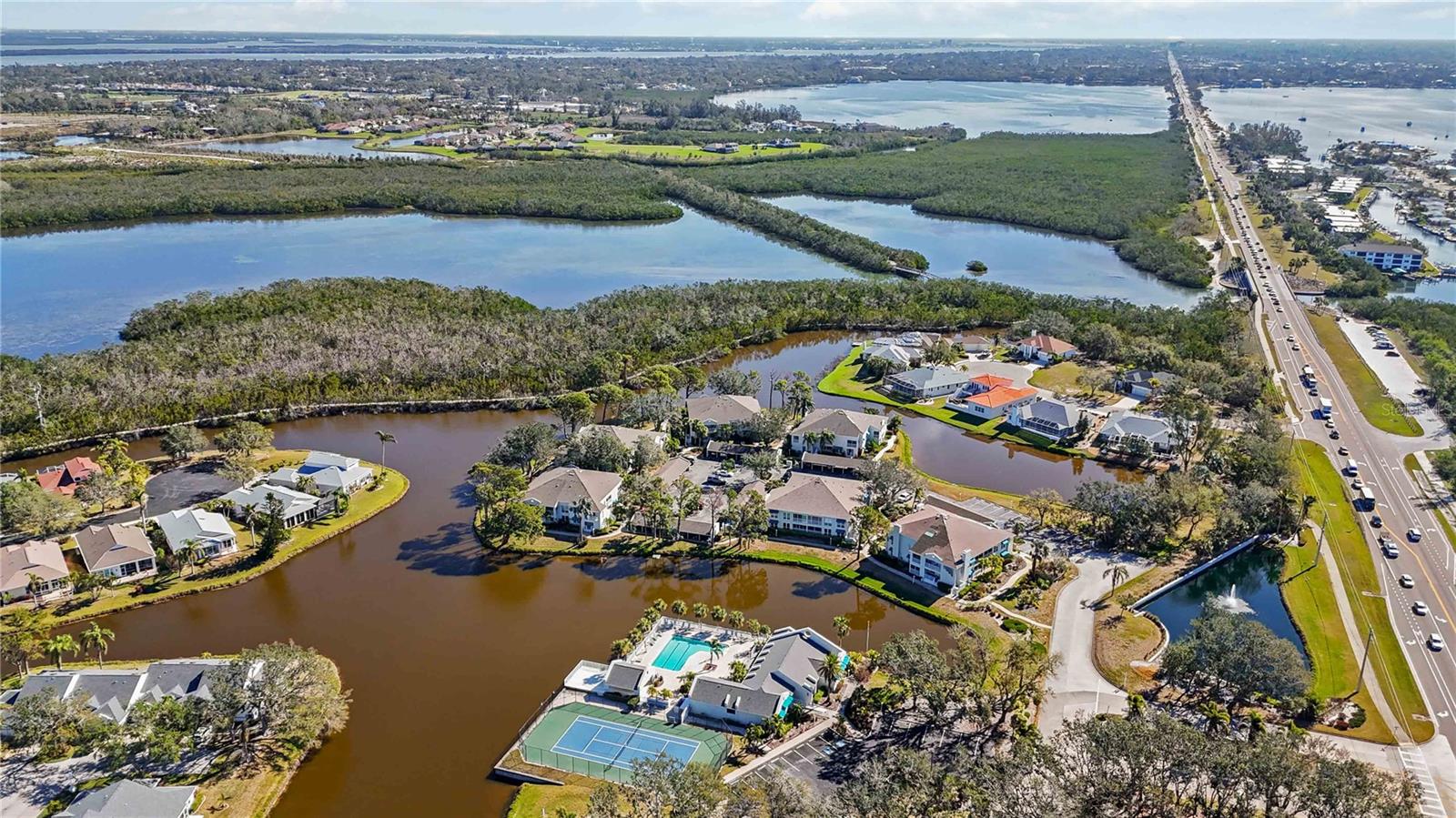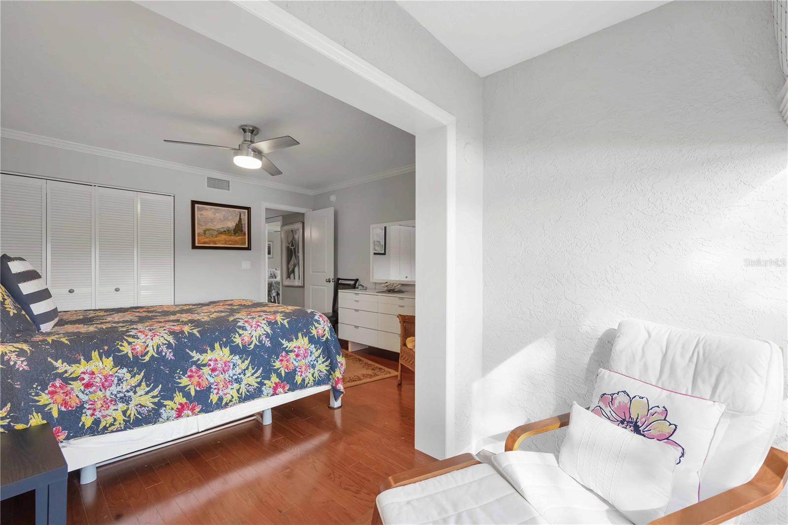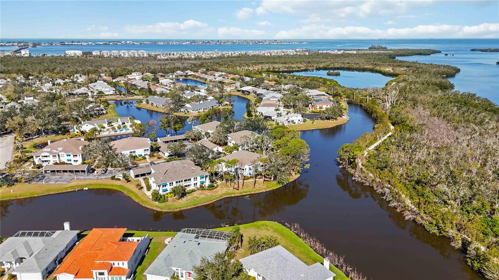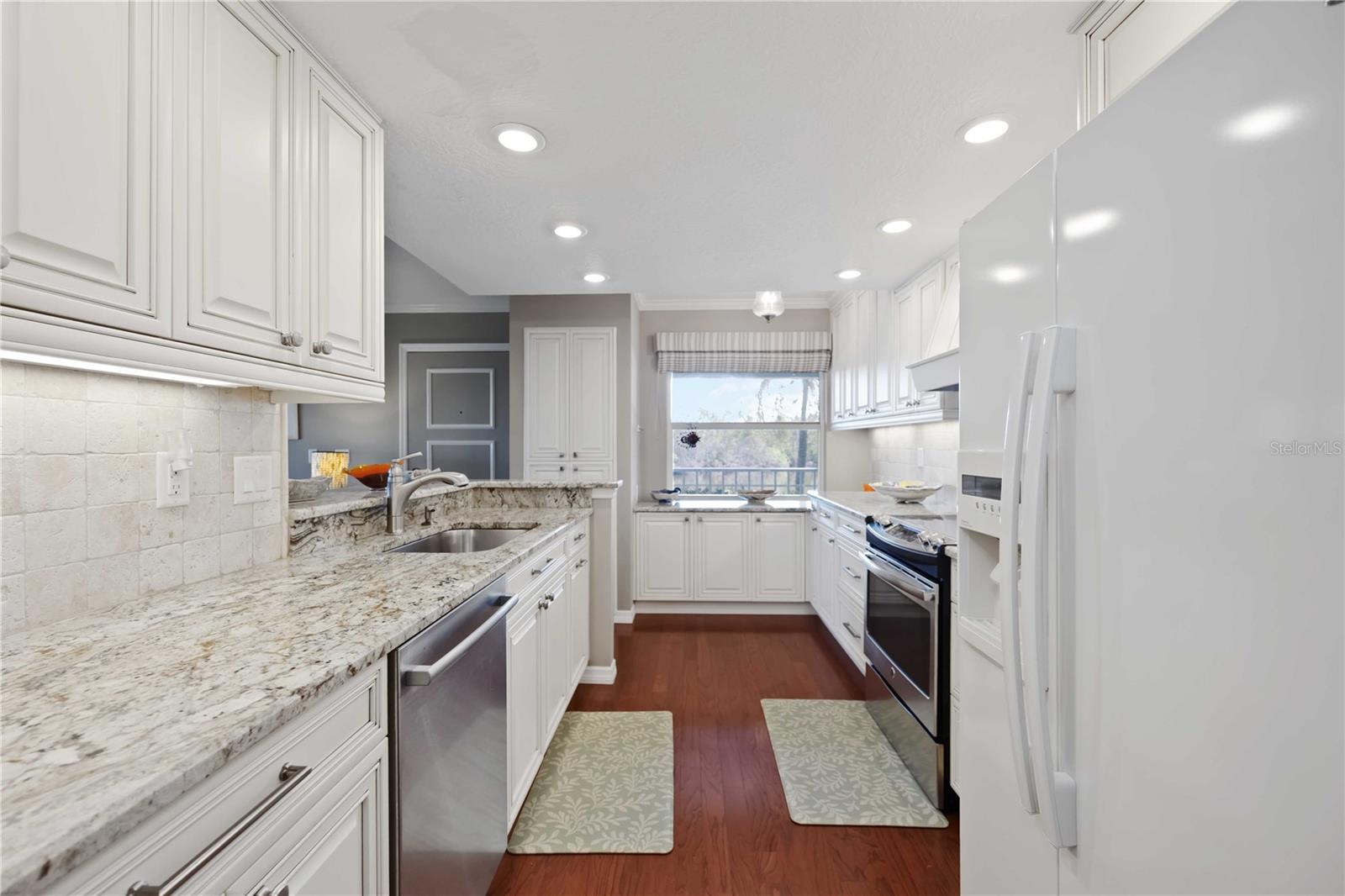 Experience unparalleled luxury in this fully updated 2-bedroom, 2-bath over 1400 sq ft condo on Perico Island. This stunning residence offers 180-degree water views from both bedrooms and the living room, enhanced by elegant crown molding and impact-resistant windows throughout. The chef’s kitchen, with its gleaming granite countertops, custom cabinetry, and top-of-the-line stainless range and dishwasher, is the heart of the home, perfect for entertaining. The engineered hardwood flooring throughout the majority of the unit truly shows off the craftmanship and pride of ownership that is unmistakable throughout the property. The primary suite offers a spacious walk-in closet, custom granite top vanities, and a gorgeously re-tiled shower that reflects the condo’s coastal charm. Enjoy your privacy with unique pocket doors that will lead directly out to a secondary living area or extension of the primary suite with one of the best views of the property. The guest bathroom also shines with a new vanity and elegant tile work. Abundant wildlife can be observed right from your front door and every window of the property, providing a serene backdrop year-round. Enjoy top-notch amenities, including a tennis court and a spacious community swimming pool. Located just a short distance from the award-winning beaches of Anna Maria Island, this condo is the ideal coastal retreat.
