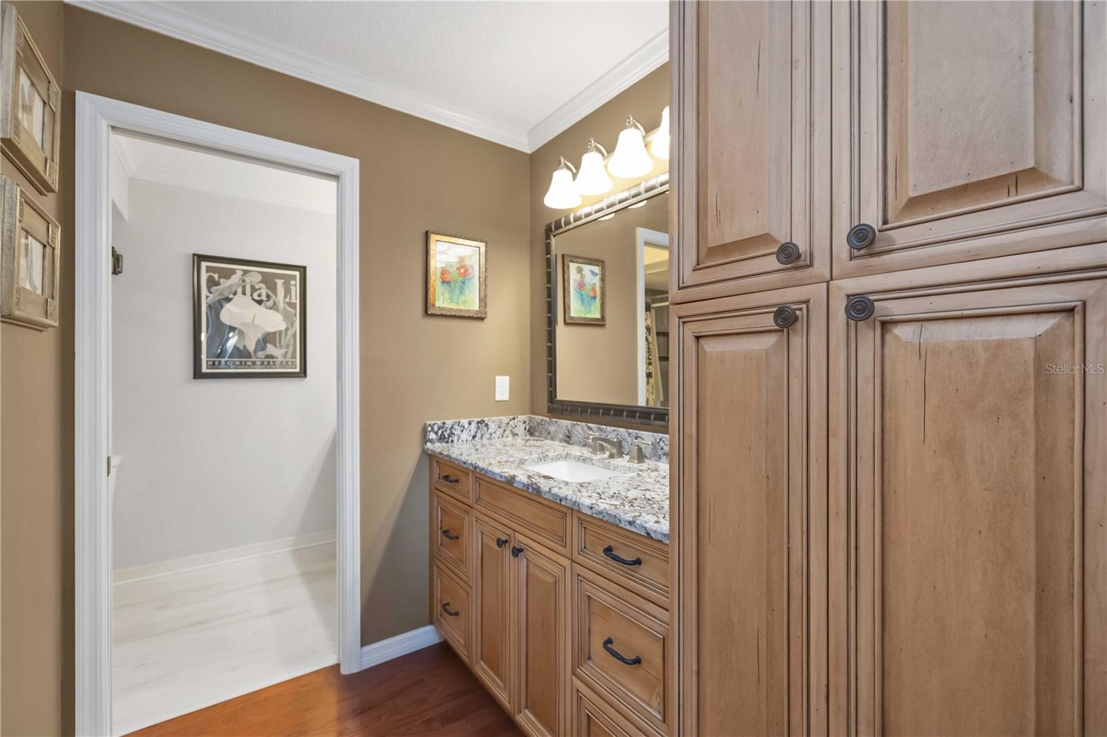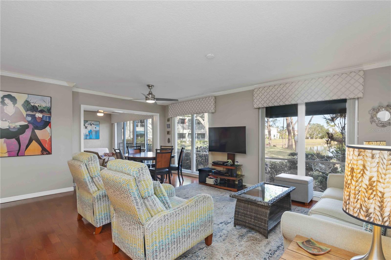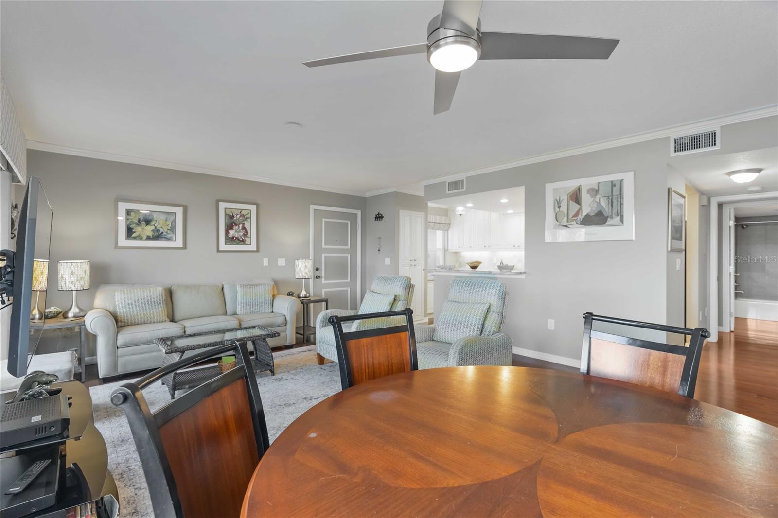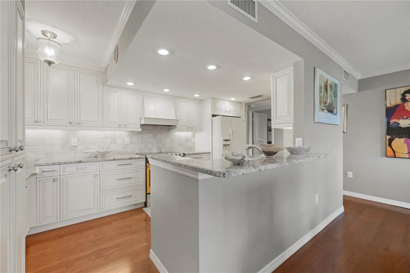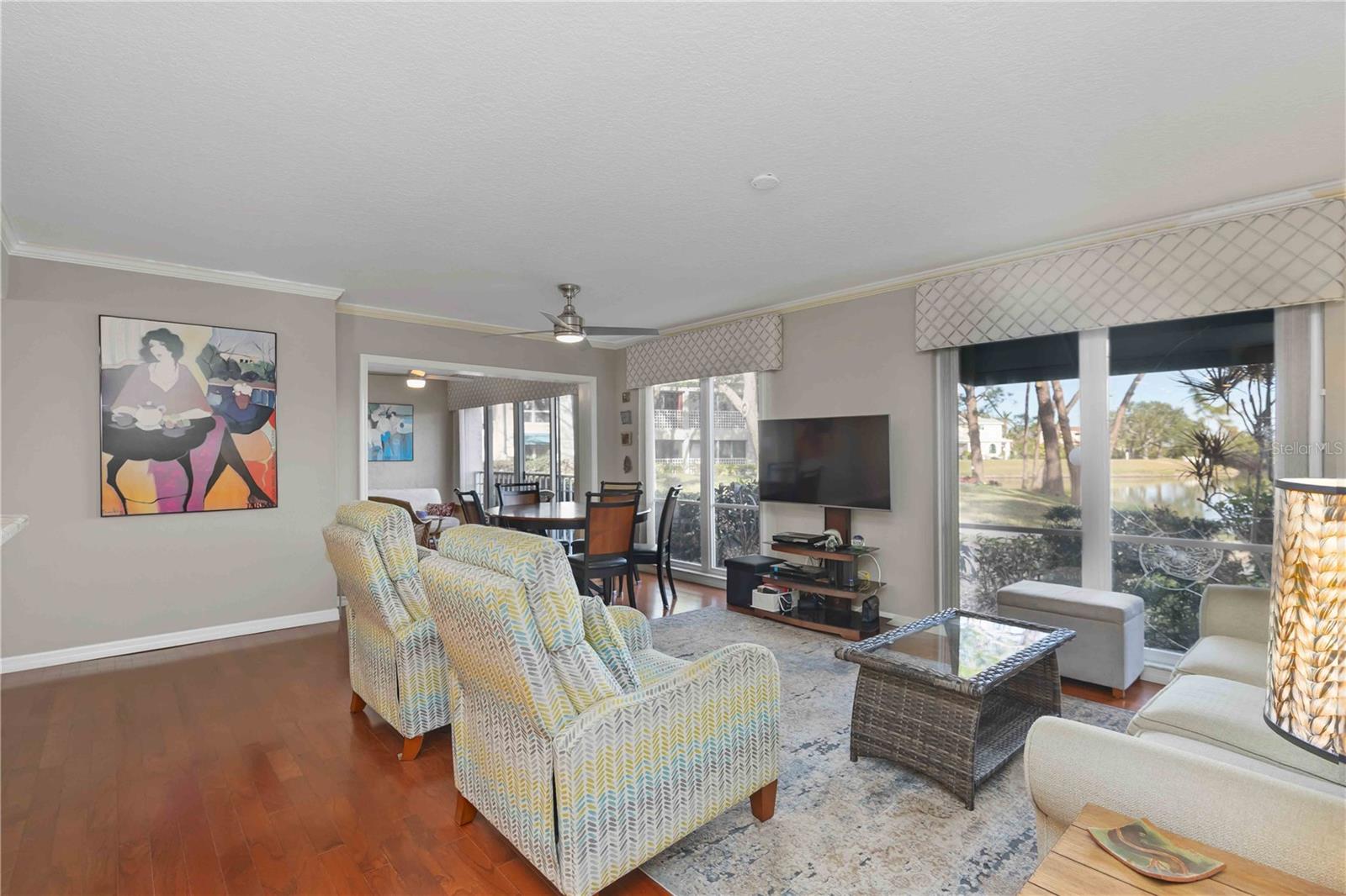 Experience unparalleled luxury in this fully updated 2-bedroom, 2-bath over 1400 sq ft condo on Perico Island. This stunning residence offers 180-degree water views from both bedrooms and the living room, enhanced by elegant crown molding and impact-resistant windows throughout. The chef’s kitchen, with its gleaming granite countertops, custom cabinetry, and top-of-the-line stainless range and dishwasher, is the heart of the home, perfect for entertaining. The engineered hardwood flooring throughout the majority of the unit truly shows off the craftmanship and pride of ownership that is unmistakable throughout the property. The primary suite offers a spacious walk-in closet, custom granite top vanities, and a gorgeously re-tiled shower that reflects the condo’s coastal charm. Enjoy your privacy with unique pocket doors that will lead directly out to a secondary living area or extension of the primary suite with one of the best views of the property. The guest bathroom also shines with a new vanity and elegant tile work. Abundant wildlife can be observed right from your front door and every window of the property, providing a serene backdrop year-round. Enjoy top-notch amenities, including a tennis court and a spacious community swimming pool. Located just a short distance from the award-winning beaches of Anna Maria Island, this condo is the ideal coastal retreat.