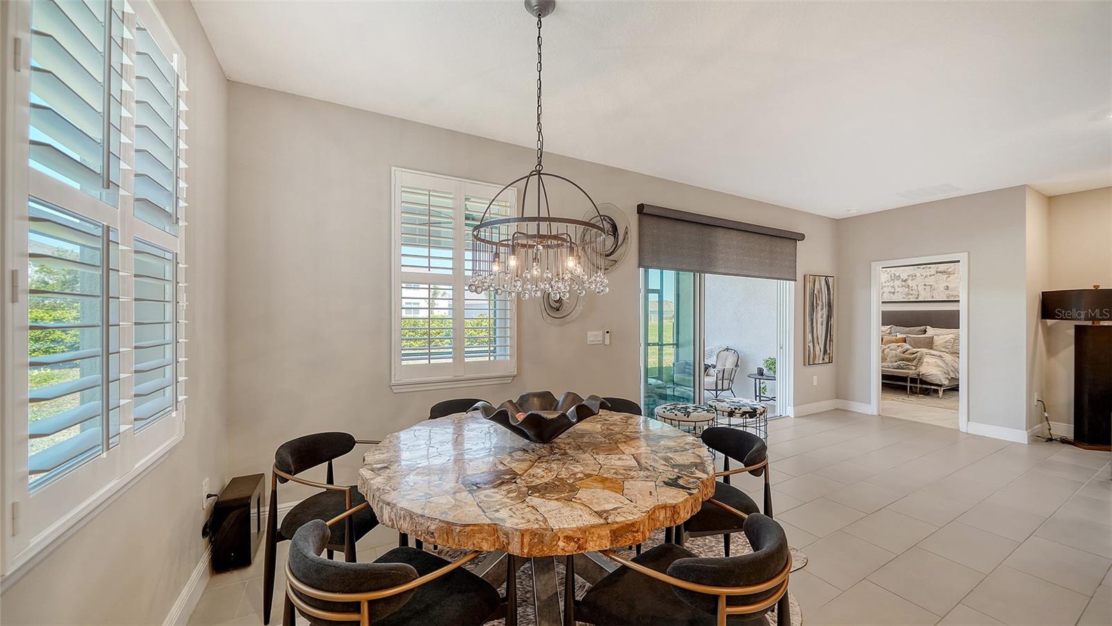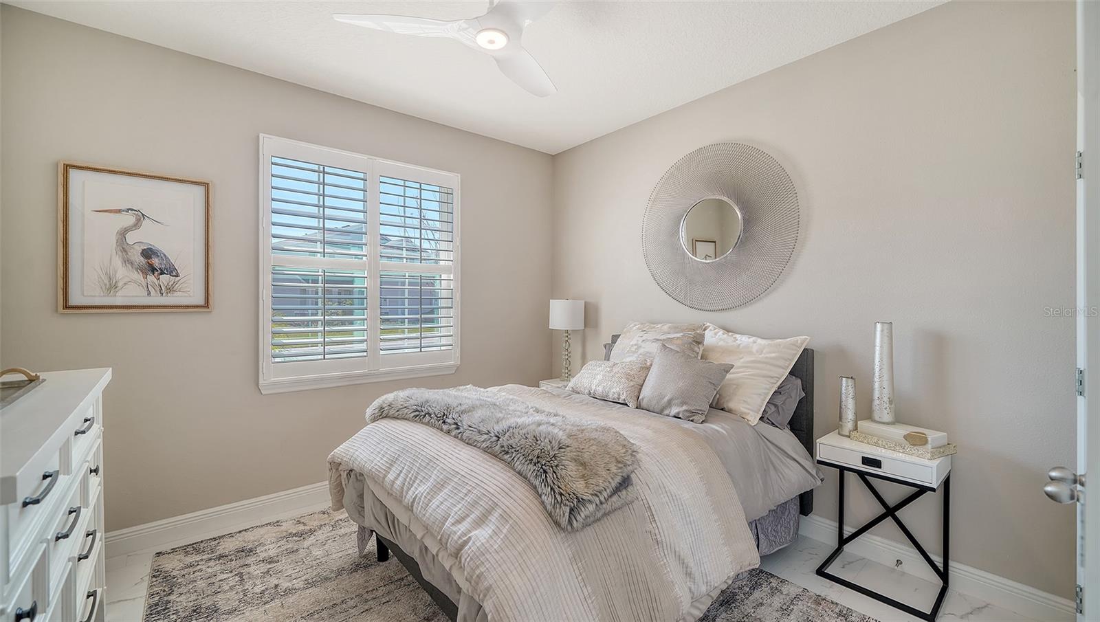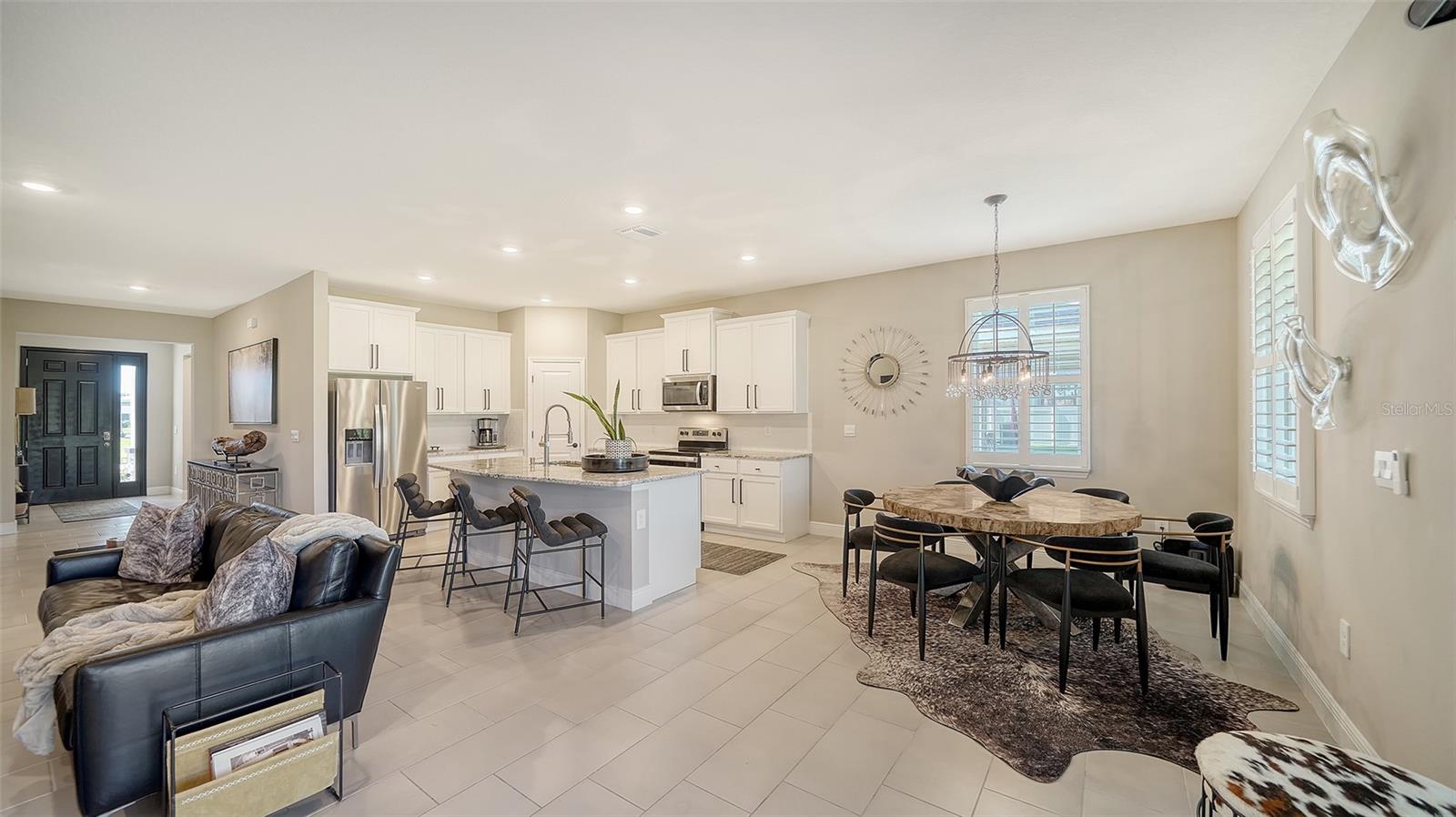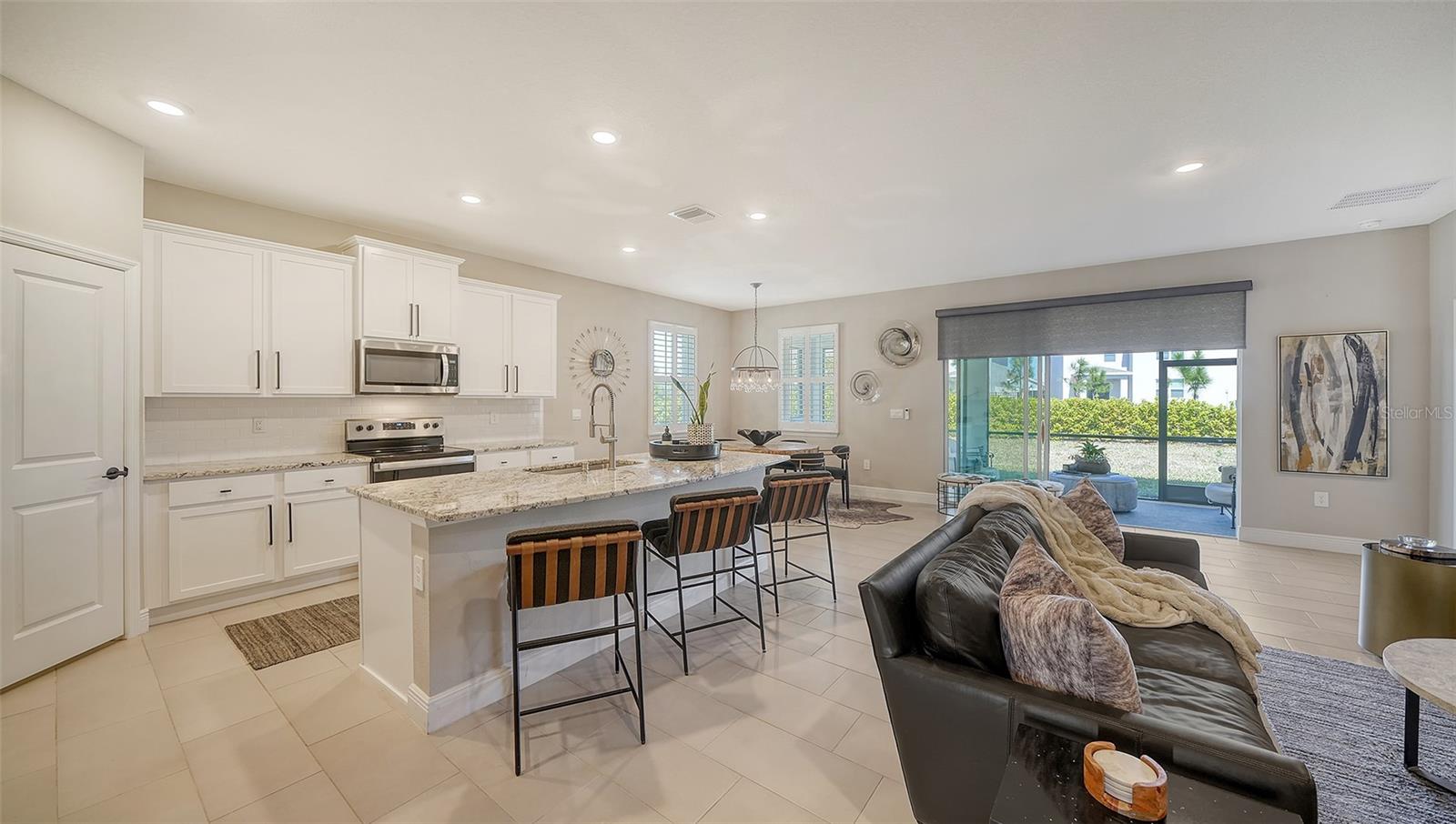 Don't wait for new construction! This gorgeous, upgraded MOVE IN READY residence is ready for you! This very popular Lantana floorplan features 4 bedrooms, 2.5 baths, tile flooring throughout, plantation shutters, screened lanai, 2-car garage, and an industry-leading smart home automation system. Home is built with concrete block construction and features open concept kitchen featuring staggered, crown-molded cabinets with upgraded hardware, splendid granite counters with white tile backsplash, upgraded faucet, stainless-steel appliances, walk-in pantry, and a huge island perfect for entertaining or enjoying meals with plenty of room for seating. The living room is wonderfully placed just off the kitchen, dining area, and screened in lanai. This layout allows plenty of space for everyone to socialize together whether you're watching tv, cooking in the kitchen or relaxing and enjoying the outdoor air. There is also a guest half bathroom just off the great room topping of this area perfect for entertaining. The primary bedroom overlooks the beautiful backyard and features a tray ceiling, as well as two walk-in closets. The large primary bathroom is beautifully designed with granite countertops, two sinks, walk-in shower, bathtub, and privacy glass window for plenty of natural light. The split floor plan with bedrooms two and three is perfect for guests, family, or children's rooms. The 4th bedroom would also make a great office space as it's right near the half bath. The nearby laundry room includes the washer and dryer. Solera homeowners enjoy the state-of-the-art amenities including a luxurious resort-style pool and cabana, two playgrounds, and lawncare with very low HOA and CDD fees! Solera is located across the street from the brand-new Lakewood Ranch community library, as well as the new community park. Conveniently located near "A" rated schools, LWR Main St., Waterside, airports, premiere shopping/UTC, dining, golf and of course the beaches!!!!