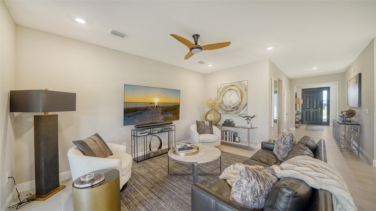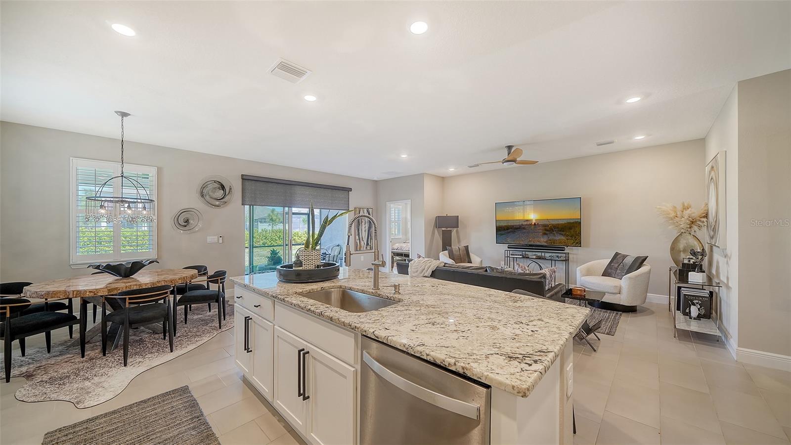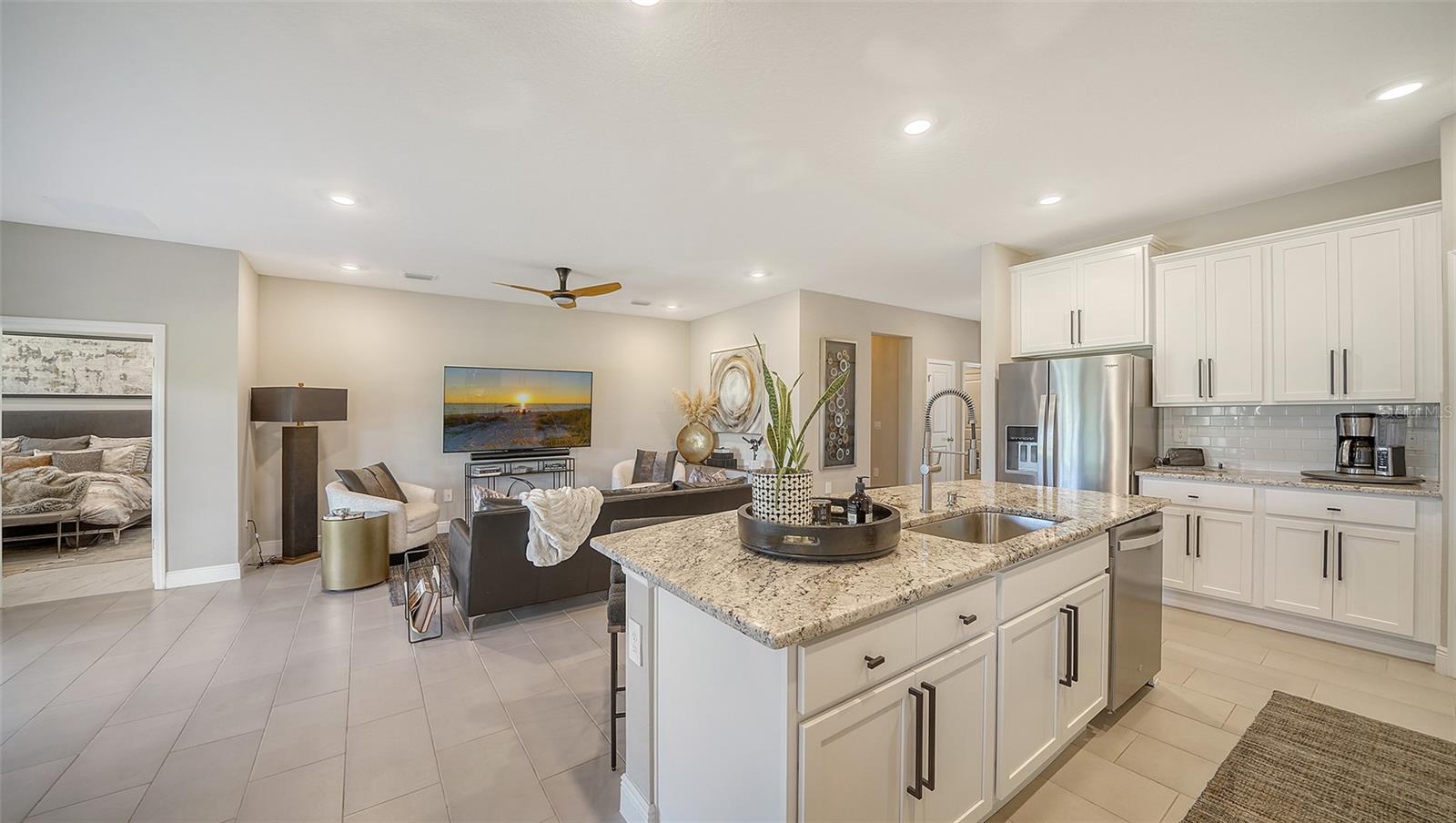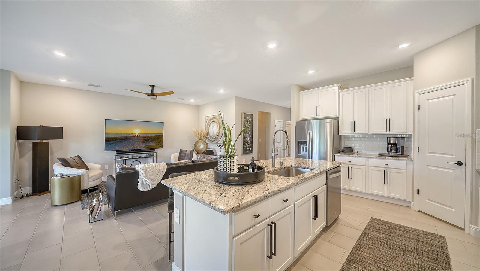 Don't wait for new construction! This gorgeous, upgraded MOVE IN READY residence is ready for you! This very popular Lantana floorplan features 4 bedrooms, 2.5 baths, tile flooring throughout, plantation shutters, screened lanai, 2-car garage, and an industry-leading smart home automation system. Home is built with concrete block construction and features open concept kitchen featuring staggered, crown-molded cabinets with upgraded hardware, splendid granite counters with white tile backsplash, upgraded faucet, stainless-steel appliances, walk-in pantry, and a huge island perfect for entertaining or enjoying meals with plenty of room for seating. The living room is wonderfully placed just off the kitchen, dining area, and screened in lanai. This layout allows plenty of space for everyone to socialize together whether you're watching tv, cooking in the kitchen or relaxing and enjoying the outdoor air. There is also a guest half bathroom just off the great room topping of this area perfect for entertaining. The primary bedroom overlooks the beautiful backyard and features a tray ceiling, as well as two walk-in closets. The large primary bathroom is beautifully designed with granite countertops, two sinks, walk-in shower, bathtub, and privacy glass window for plenty of natural light. The split floor plan with bedrooms two and three is perfect for guests, family, or children's rooms. The 4th bedroom would also make a great office space as it's right near the half bath. The nearby laundry room includes the washer and dryer. Solera homeowners enjoy the state-of-the-art amenities including a luxurious resort-style pool and cabana, two playgrounds, and lawncare with very low HOA and CDD fees! Solera is located across the street from the brand-new Lakewood Ranch community library, as well as the new community park. Conveniently located near "A" rated schools, LWR Main St., Waterside, airports, premiere shopping/UTC, dining, golf and of course the beaches!!!!