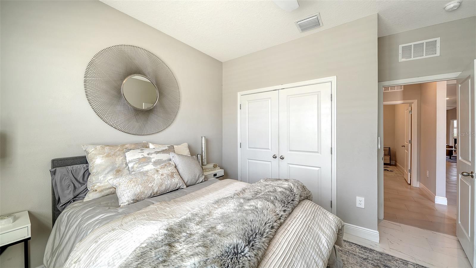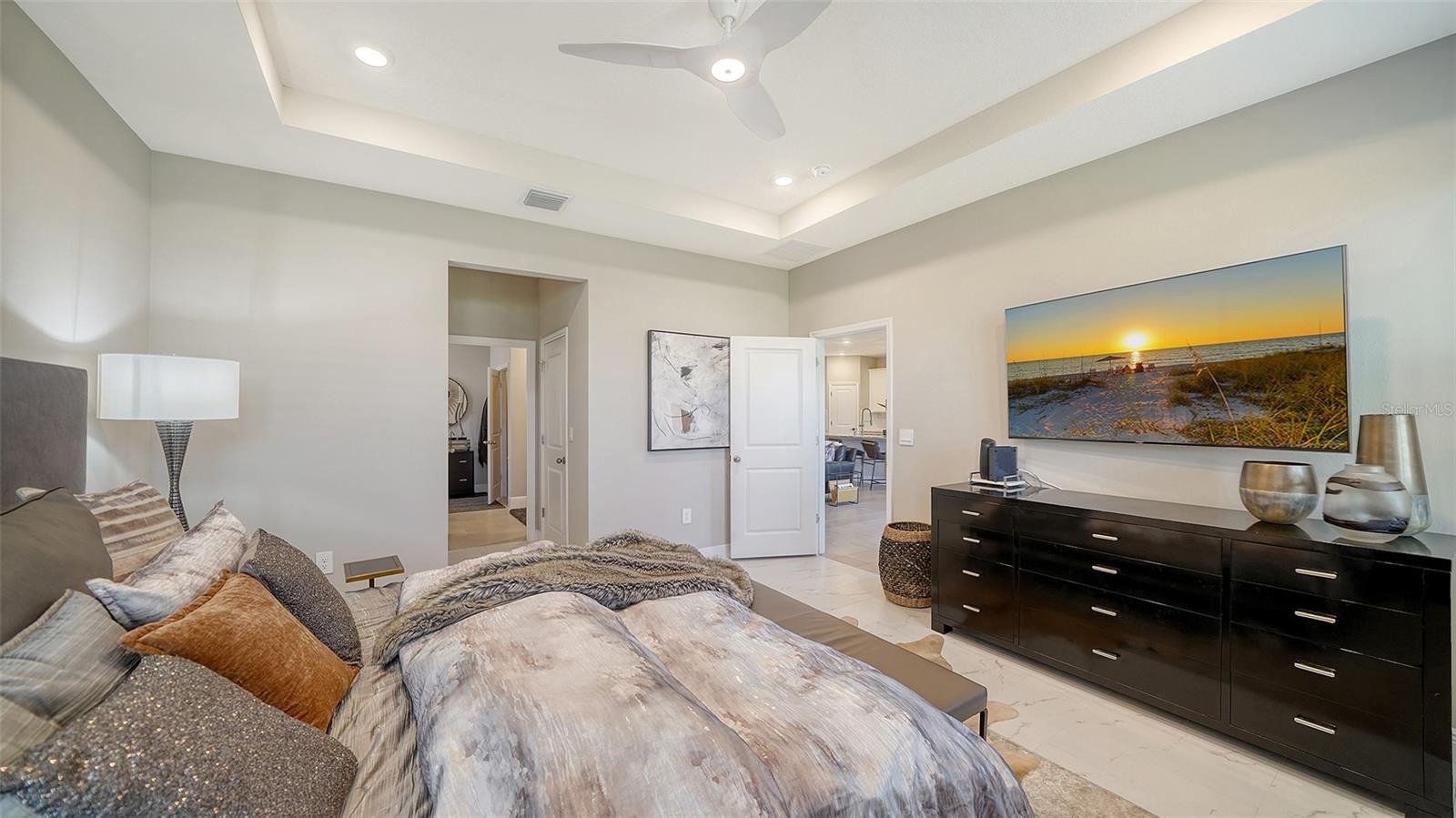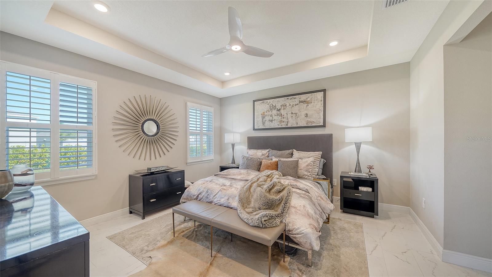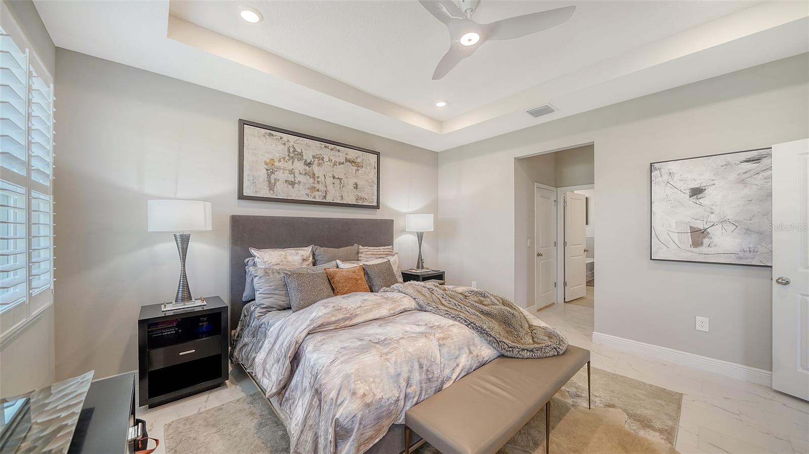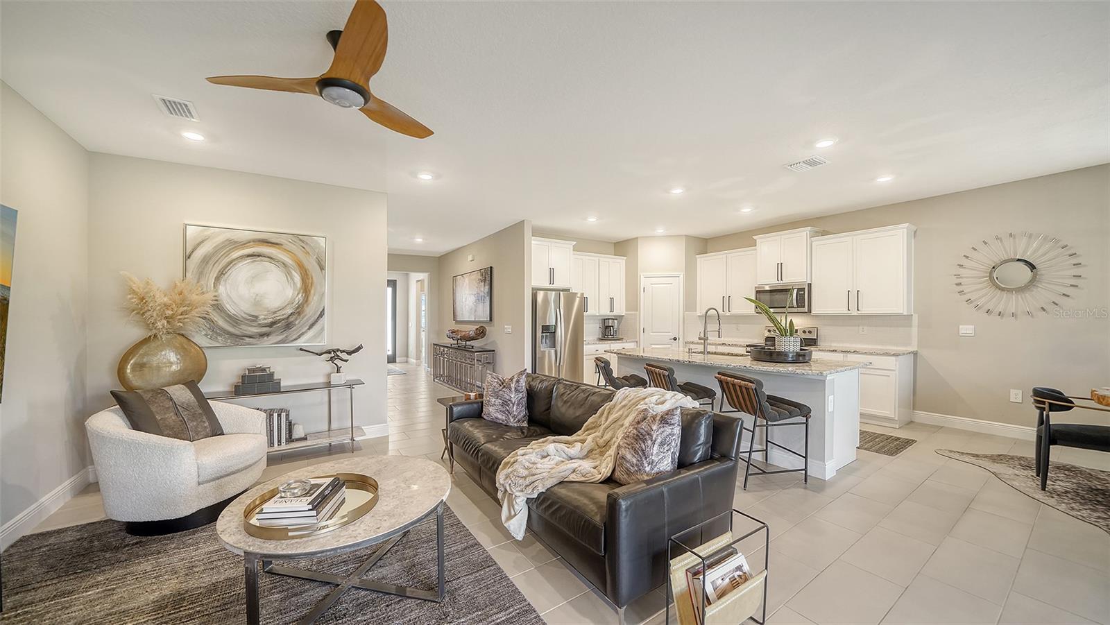 Don't wait for new construction! This gorgeous, upgraded MOVE IN READY residence is ready for you! This very popular Lantana floorplan features 4 bedrooms, 2.5 baths, tile flooring throughout, plantation shutters, screened lanai, 2-car garage, and an industry-leading smart home automation system. Home is built with concrete block construction and features open concept kitchen featuring staggered, crown-molded cabinets with upgraded hardware, splendid granite counters with white tile backsplash, upgraded faucet, stainless-steel appliances, walk-in pantry, and a huge island perfect for entertaining or enjoying meals with plenty of room for seating. The living room is wonderfully placed just off the kitchen, dining area, and screened in lanai. This layout allows plenty of space for everyone to socialize together whether you're watching tv, cooking in the kitchen or relaxing and enjoying the outdoor air. There is also a guest half bathroom just off the great room topping of this area perfect for entertaining. The primary bedroom overlooks the beautiful backyard and features a tray ceiling, as well as two walk-in closets. The large primary bathroom is beautifully designed with granite countertops, two sinks, walk-in shower, bathtub, and privacy glass window for plenty of natural light. The split floor plan with bedrooms two and three is perfect for guests, family, or children's rooms. The 4th bedroom would also make a great office space as it's right near the half bath. The nearby laundry room includes the washer and dryer. Solera homeowners enjoy the state-of-the-art amenities including a luxurious resort-style pool and cabana, two playgrounds, and lawncare with very low HOA and CDD fees! Solera is located across the street from the brand-new Lakewood Ranch community library, as well as the new community park. Conveniently located near "A" rated schools, LWR Main St., Waterside, airports, premiere shopping/UTC, dining, golf and of course the beaches!!!!