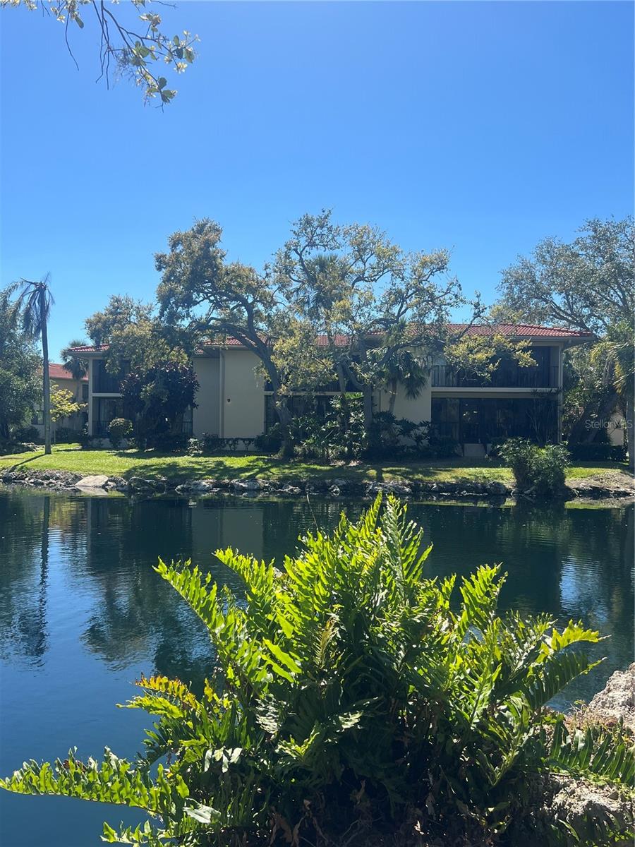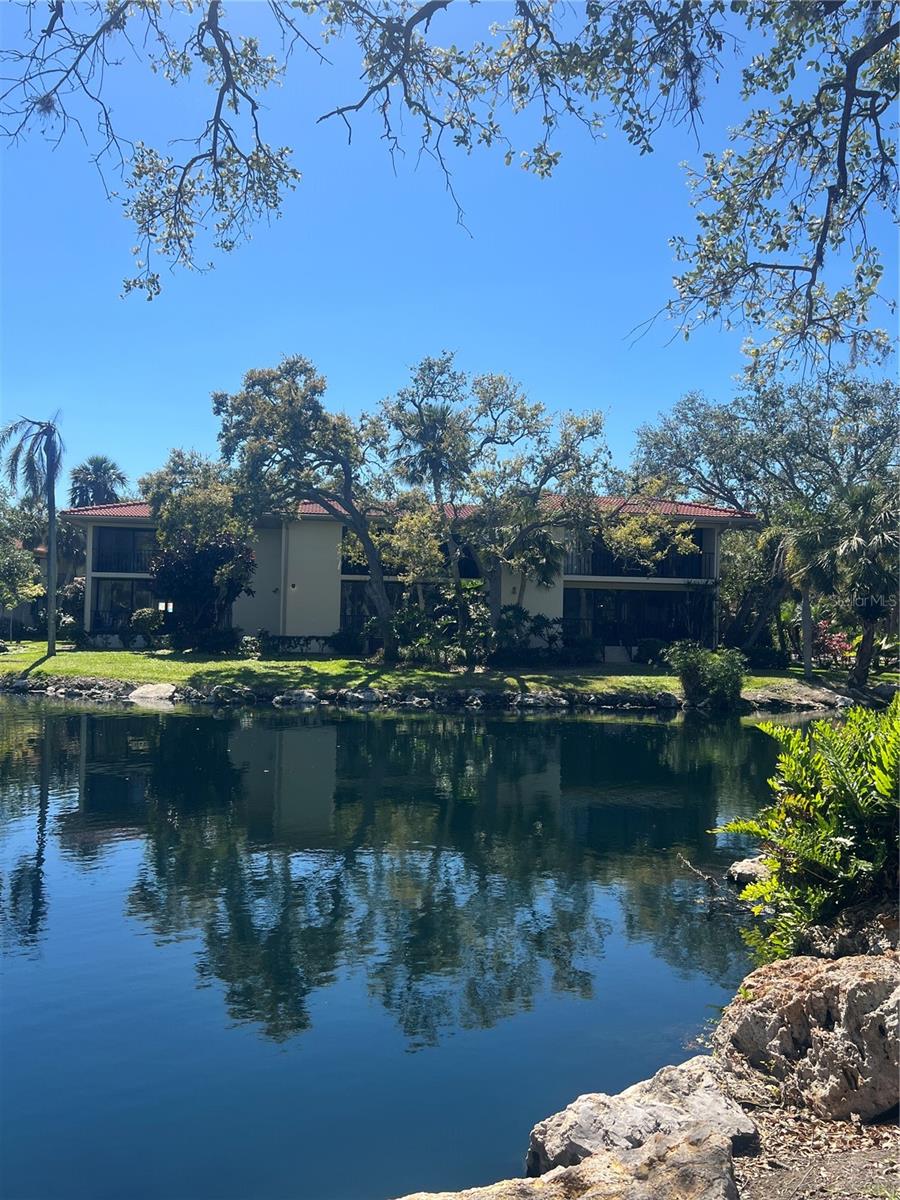 This Unit is less than 3 miles to IMG Academy. This is the Perfect Property to be close to students attending the Academy - and at the Perfect Price. Nestled in the heart of Wild Oak Bay, this generously sized second floor unit is located within Terrace II. This 48-unit section has 8-two story buildings built around a serene water feature. With a view of the tranquil pond, this home is surrounded by lush, tropical foliage and imposing Live Oak trees. Every room has a view of the peaceful natural surroundings. The Living/Dining Room has a wall of sliding glass doors opening to the over 19-foot x 11-foot covered and screen patio where there is plenty of room for outdoor dining and relaxing. Beyond the patio is an additional 19’x4’ open air private balcony with a 7’x3’ storage closet. The Primary Bedroom has sliding glass doors that also open the Patio and Balcony beyond. The bedroom includes a spacious 6.5’x6.5’ Walk-In Closet and an en-suite bathroom with walk-in shower. The Kitchen has a pass-through to the Living/Dining area to take in the natural beauty of the surroundings. With an eat-in breakfast area, closeted Washer/Dryer, and 3 large windows, the Kitchen is light, bright and inviting. The second bedroom has sliders opening to the front walkway, two closets, and is near the 2nd bathroom. Terrace II is a maintenance free community that includes a Community Pool, Spa and beautiful walking streets. Cable, Internet, Water, Sewer and Trash are included the quarterly maintenance fee. Wild Oaks is located close to IMG Academy, Bradenton Country Club, shopping, dining and Island Beaches. Don’t miss your little piece of paradise!