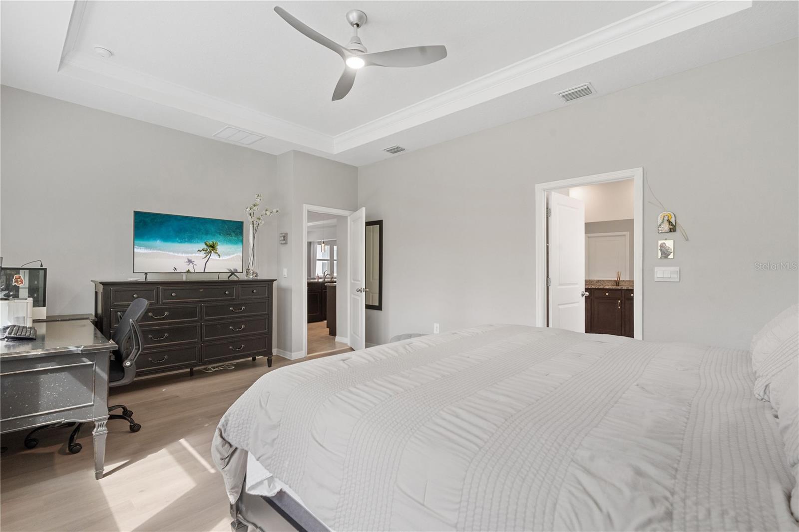 $10,000 Closing Credit and NEW PRICE!!! Welcome to this Stylish Haven! Basically a new-build home, this 2022 residence blends comfort, style, and quality of life in the sought-after Solera at Lakewood Ranch. Featuring 4 bedrooms, 3.5 bathrooms, and located within walking distance to the newly approved Athletics and Aquatics Center at the Premier Sports Campus which includes pickleball courts, swimming pools, and walking trails this property offers a full lifestyle experience. As you step inside, you're welcomed by an open and airy layout enhanced with crown molding, tray ceilings, and elegant shiplap accents, creating a refined yet inviting ambiance. The spacious living area flows seamlessly into the dining and kitchen spaces, perfect for relaxing or entertaining. The kitchen is a culinary dream, with granite countertops, upgraded cabinetry, high-end appliances, and designer fixtures. A standout feature is the upgraded bonus room, styled like an in-law apartment. This area is equipped with a fridge, wet bar, and mini-kitchenette and includes a flex room that can serve as a guest bedroom, home office, gym, or personal retreat, offering unmatched versatility. Additional highlights: Whole-house Culligan water softening system + reverse osmosis at the kitchen sink Negotiable furnishings and accents Spacious 3-car garage with top-of-the-line polyaspartic flooring and smart storage Screened-in lanai overlooking a large backyard that borders a conservation area, offering privacy, tranquility, and excellent bird-watching Upgraded ADT security system You will love the low HOA fees, community pool, nearby playscape, and spacious clubhouse. The home is also zoned for the new Lake Manatee K-8 School, opening Fall 2025, which features a one-of-a-kind partnership with Mote Marine Laboratory and Aquarium for enhanced learning opportunities. This home defines premium Lakewood Ranch living, where comfort meets flexibility, and nature meets convenience. Schedule your private tour today! Coming soon! A state-of-the-art Athletic and Aquatic Center is planned for the area. Rendering shown is for illustration purposes only; final design and completion timeline may vary.