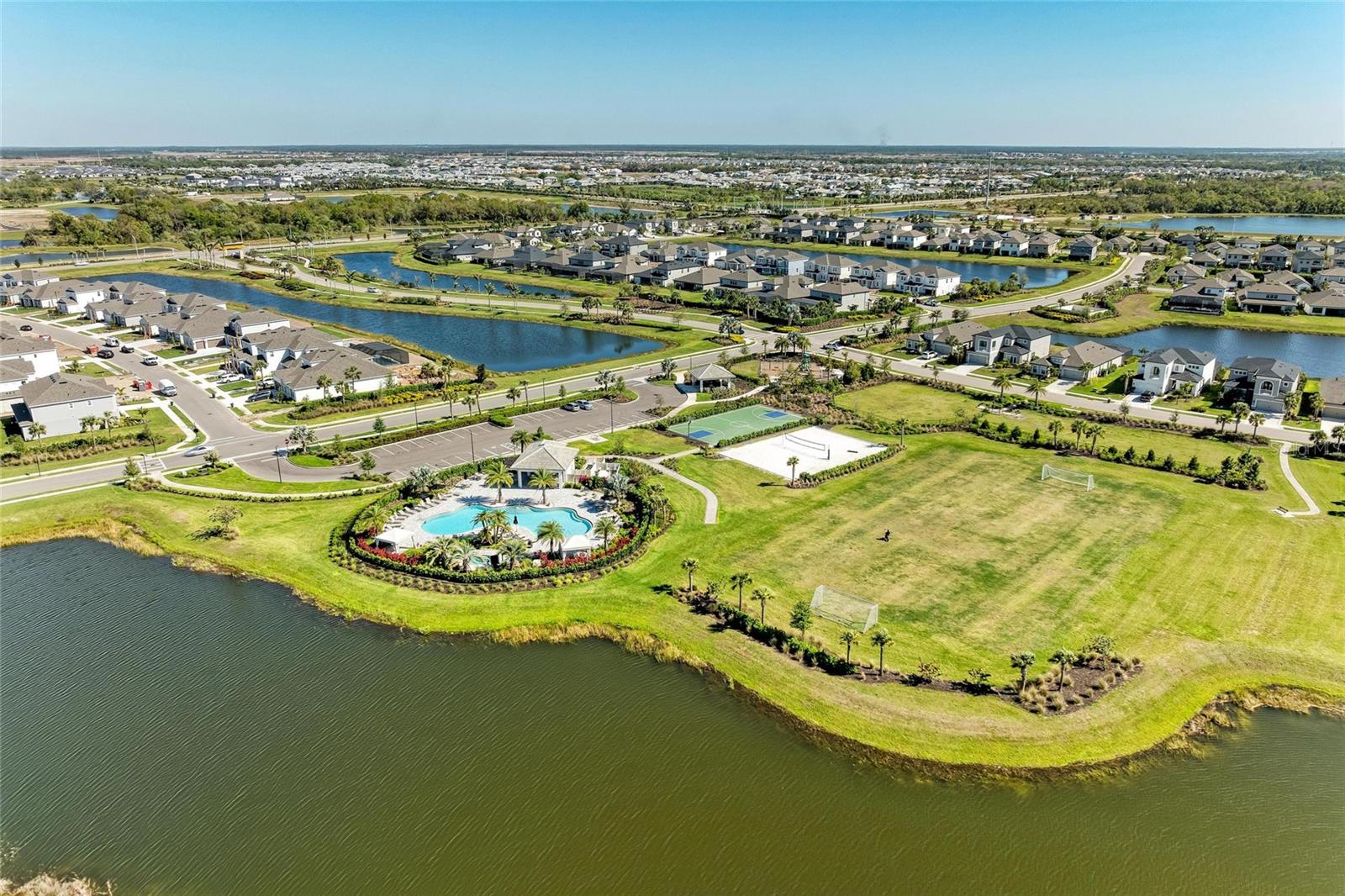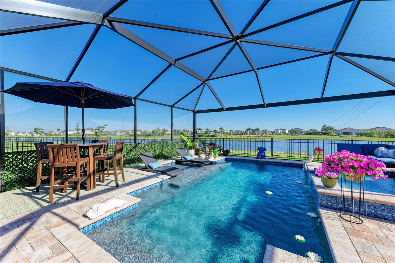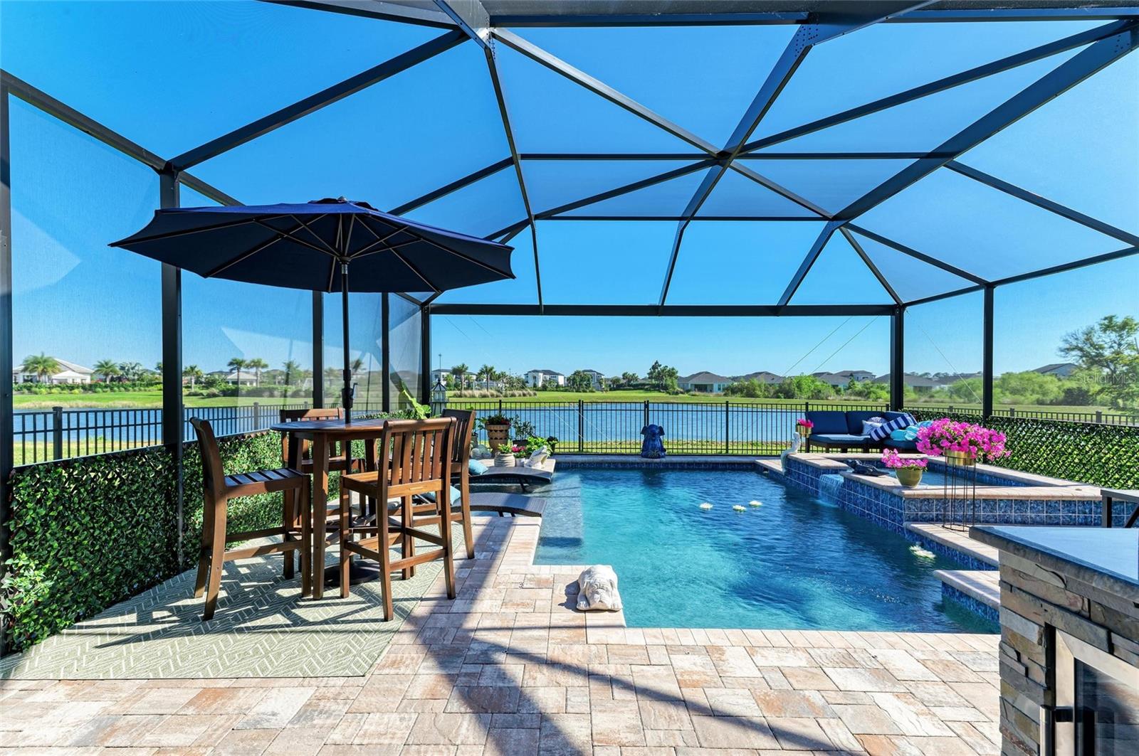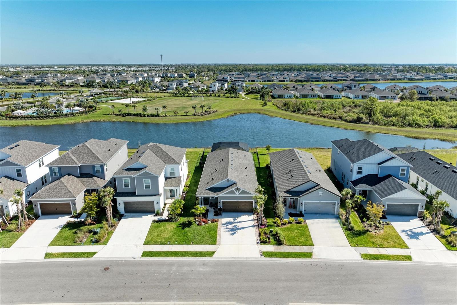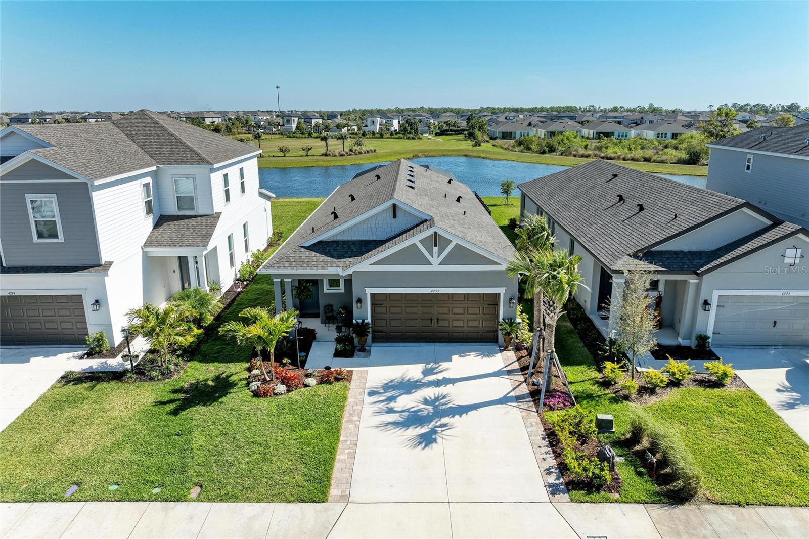 Discover your dream home in this magnificent 3 bedroom, 2 bathroom residence, completed in 2024, nestled within the coveted Park East at Azario Community in Lakewood Ranch. This home is a harmonious blend of modern comfort and luxurious living, offering a spectacular water view that creates a serene backdrop to your daily life. As you step inside, you're greeted by a sprawling layout adorned with ceiling fans throughout, ensuring a comfortable atmosphere year-round. In the heart of this home is a stunning kitchen, boasting ample storage and a generous island, perfect for culinary adventures and entertaining guests. The living room exudes warmth and coziness, featuring an electric fireplace that sets the mood for relaxed evenings. Seamlessly transition to the outdoor oasis through the convenient sliding doors, where you'll find an outdoor kitchen and grill, ideal for alfresco dining, and a sparkling lanai pool area that promises endless fun under the sun. The owner's suite is a private sanctuary, complete with an en-suite bathroom a large walk-in shower and dual sinks, catering to your every need. The additional bedrooms are thoughtfully designed, providing comfortable spaces for your loved ones to retreat and relax. Beyond the exceptional features of the house, Park East at Azario Community offers an array of amenities tailored to elevate your living experience. Bask in the sunshine at the community pool, engage in friendly competition on the volleyball or basketball courts, or indulge in various activities on the sports field. Lakewood Ranch, the #1 best-selling multigenerational community in the U.S., provides an unparled lifestyle with easy access to golf courses, shopping, dining, medical facilities, excellent schools, and award-winning beaches. Immerse yourself in the vibrant entertainment scenes at Lakewood Ranch Main Street, Waterside, University Town Park, and downtown Sarasota areas, all just minutes from I-75. Don't miss out on the opportunity to call this remarkable residence your home. Contact us today to schedule a private tour and experience the epitome of modern luxury living in Lakewood Ranch.
