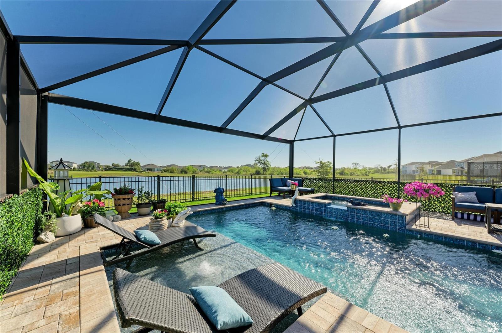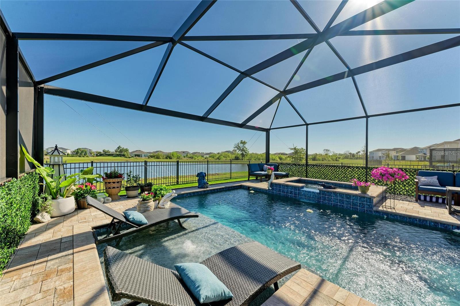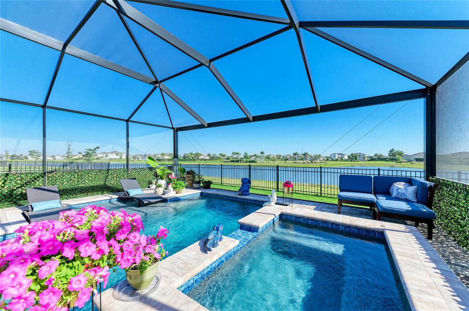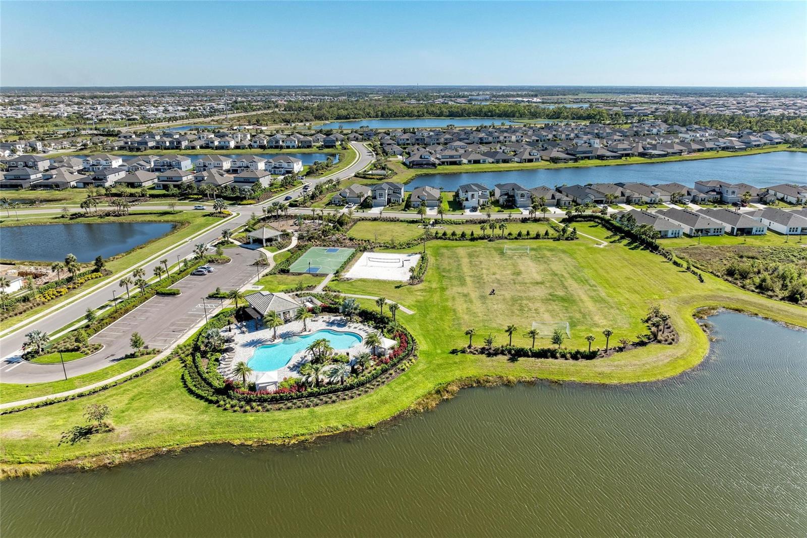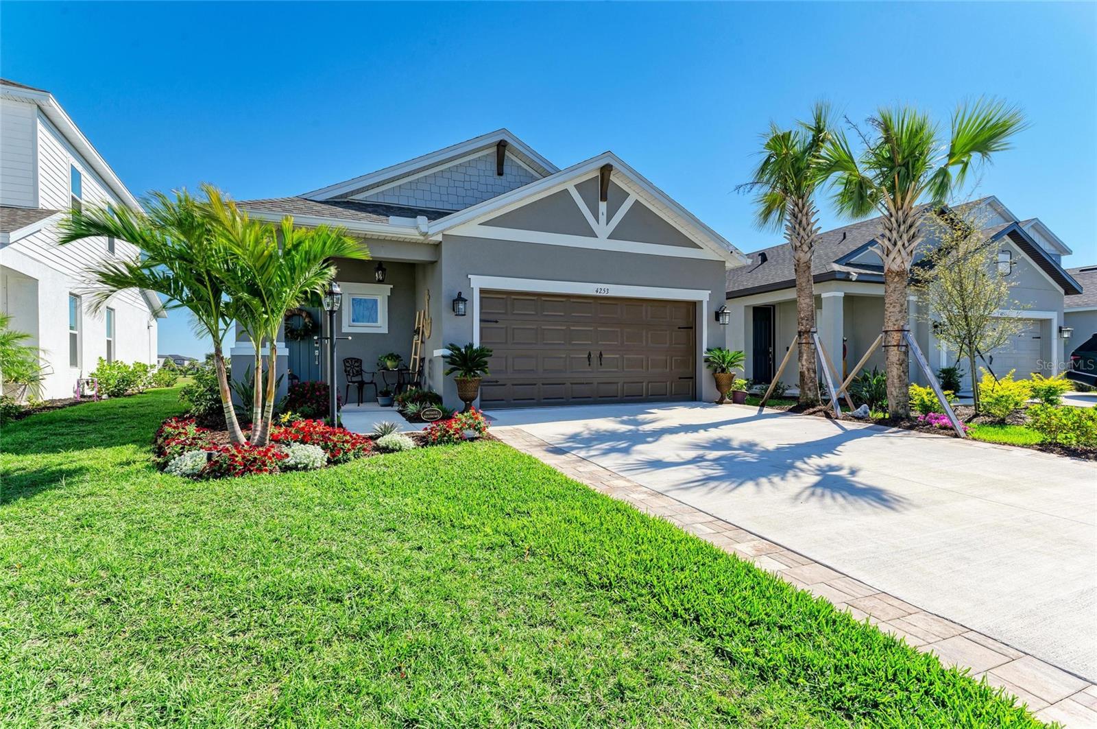 Discover your dream home in this magnificent 3 bedroom, 2 bathroom residence, completed in 2024, nestled within the coveted Park East at Azario Community in Lakewood Ranch. This home is a harmonious blend of modern comfort and luxurious living, offering a spectacular water view that creates a serene backdrop to your daily life. As you step inside, you're greeted by a sprawling layout adorned with ceiling fans throughout, ensuring a comfortable atmosphere year-round. In the heart of this home is a stunning kitchen, boasting ample storage and a generous island, perfect for culinary adventures and entertaining guests. The living room exudes warmth and coziness, featuring an electric fireplace that sets the mood for relaxed evenings. Seamlessly transition to the outdoor oasis through the convenient sliding doors, where you'll find an outdoor kitchen and grill, ideal for alfresco dining, and a sparkling lanai pool area that promises endless fun under the sun. The owner's suite is a private sanctuary, complete with an en-suite bathroom a large walk-in shower and dual sinks, catering to your every need. The additional bedrooms are thoughtfully designed, providing comfortable spaces for your loved ones to retreat and relax. Beyond the exceptional features of the house, Park East at Azario Community offers an array of amenities tailored to elevate your living experience. Bask in the sunshine at the community pool, engage in friendly competition on the volleyball or basketball courts, or indulge in various activities on the sports field. Lakewood Ranch, the #1 best-selling multigenerational community in the U.S., provides an unparled lifestyle with easy access to golf courses, shopping, dining, medical facilities, excellent schools, and award-winning beaches. Immerse yourself in the vibrant entertainment scenes at Lakewood Ranch Main Street, Waterside, University Town Park, and downtown Sarasota areas, all just minutes from I-75. Don't miss out on the opportunity to call this remarkable residence your home. Contact us today to schedule a private tour and experience the epitome of modern luxury living in Lakewood Ranch.