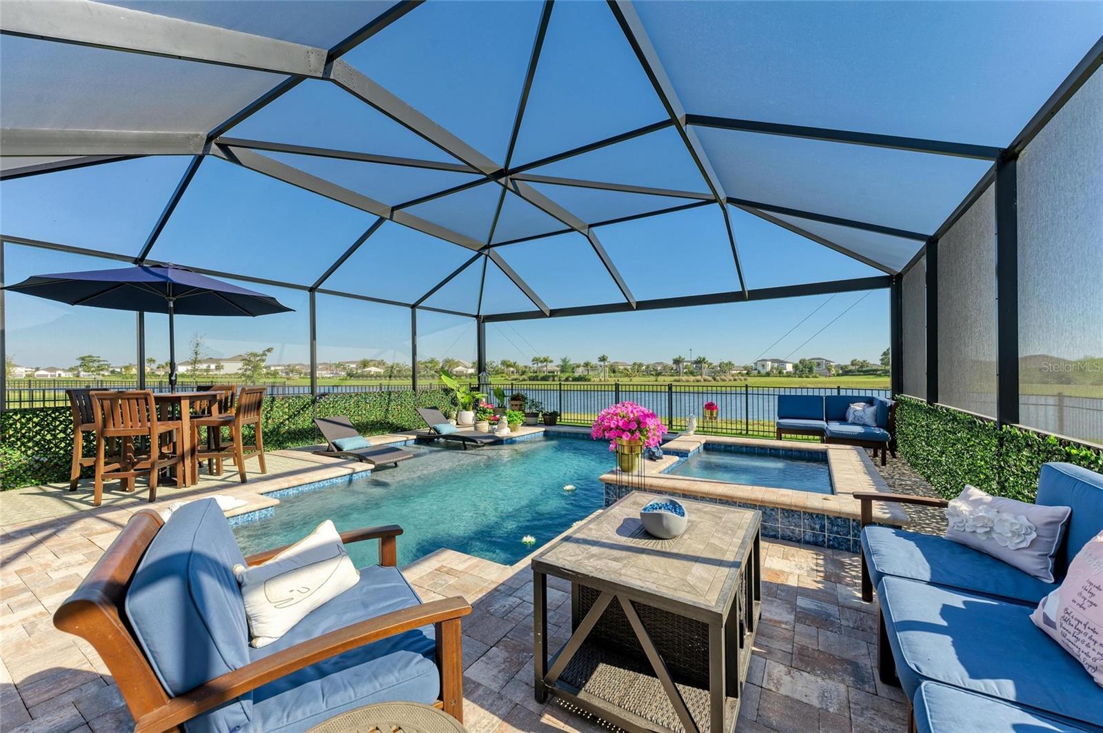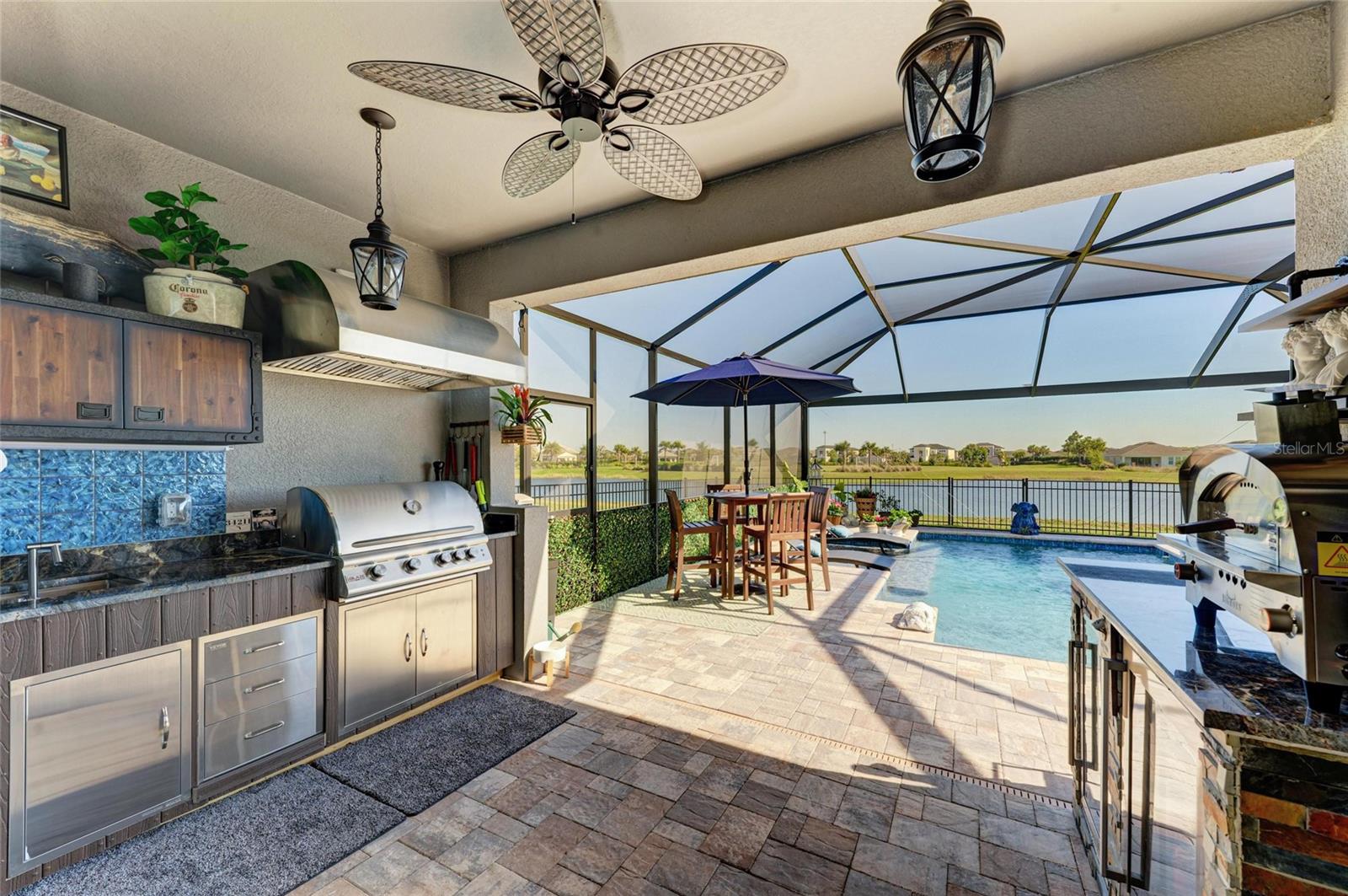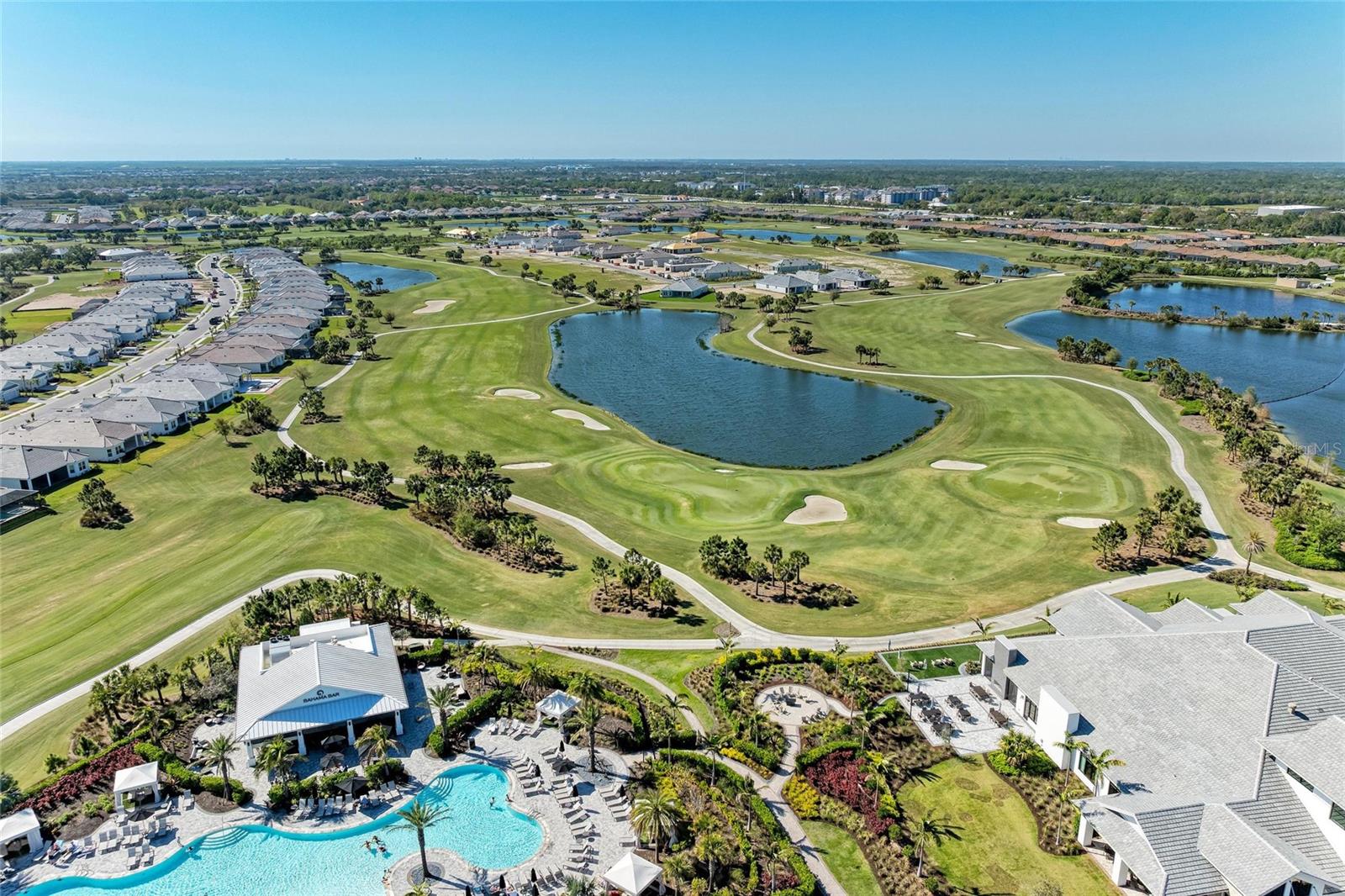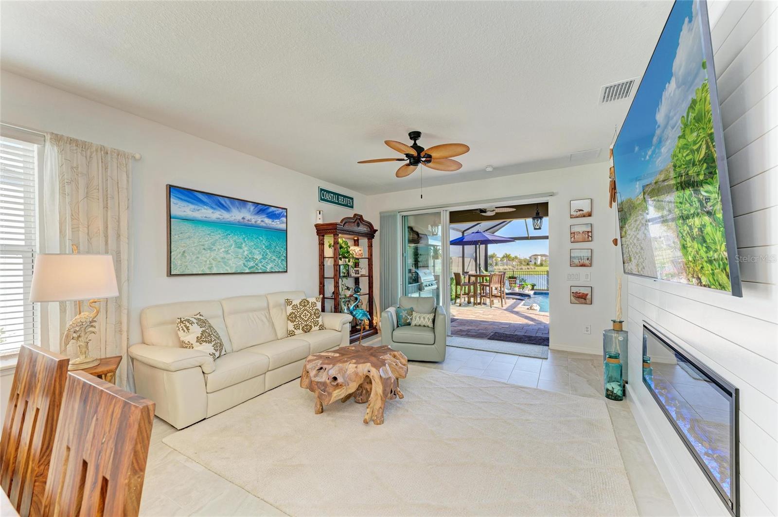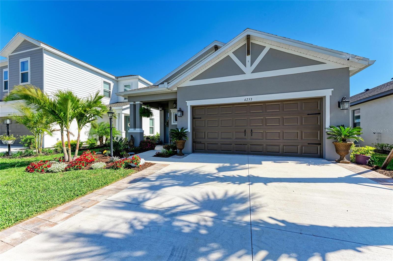 Discover your dream home in this magnificent 3 bedroom, 2 bathroom residence, completed in 2024, nestled within the coveted Park East at Azario Community in Lakewood Ranch. This home is a harmonious blend of modern comfort and luxurious living, offering a spectacular water view that creates a serene backdrop to your daily life. As you step inside, you're greeted by a sprawling layout adorned with ceiling fans throughout, ensuring a comfortable atmosphere year-round. In the heart of this home is a stunning kitchen, boasting ample storage and a generous island, perfect for culinary adventures and entertaining guests. The living room exudes warmth and coziness, featuring an electric fireplace that sets the mood for relaxed evenings. Seamlessly transition to the outdoor oasis through the convenient sliding doors, where you'll find an outdoor kitchen and grill, ideal for alfresco dining, and a sparkling lanai pool area that promises endless fun under the sun. The owner's suite is a private sanctuary, complete with an en-suite bathroom a large walk-in shower and dual sinks, catering to your every need. The additional bedrooms are thoughtfully designed, providing comfortable spaces for your loved ones to retreat and relax. Beyond the exceptional features of the house, Park East at Azario Community offers an array of amenities tailored to elevate your living experience. Bask in the sunshine at the community pool, engage in friendly competition on the volleyball or basketball courts, or indulge in various activities on the sports field. Lakewood Ranch, the #1 best-selling multigenerational community in the U.S., provides an unparled lifestyle with easy access to golf courses, shopping, dining, medical facilities, excellent schools, and award-winning beaches. Immerse yourself in the vibrant entertainment scenes at Lakewood Ranch Main Street, Waterside, University Town Park, and downtown Sarasota areas, all just minutes from I-75. Don't miss out on the opportunity to call this remarkable residence your home. Contact us today to schedule a private tour and experience the epitome of modern luxury living in Lakewood Ranch.
