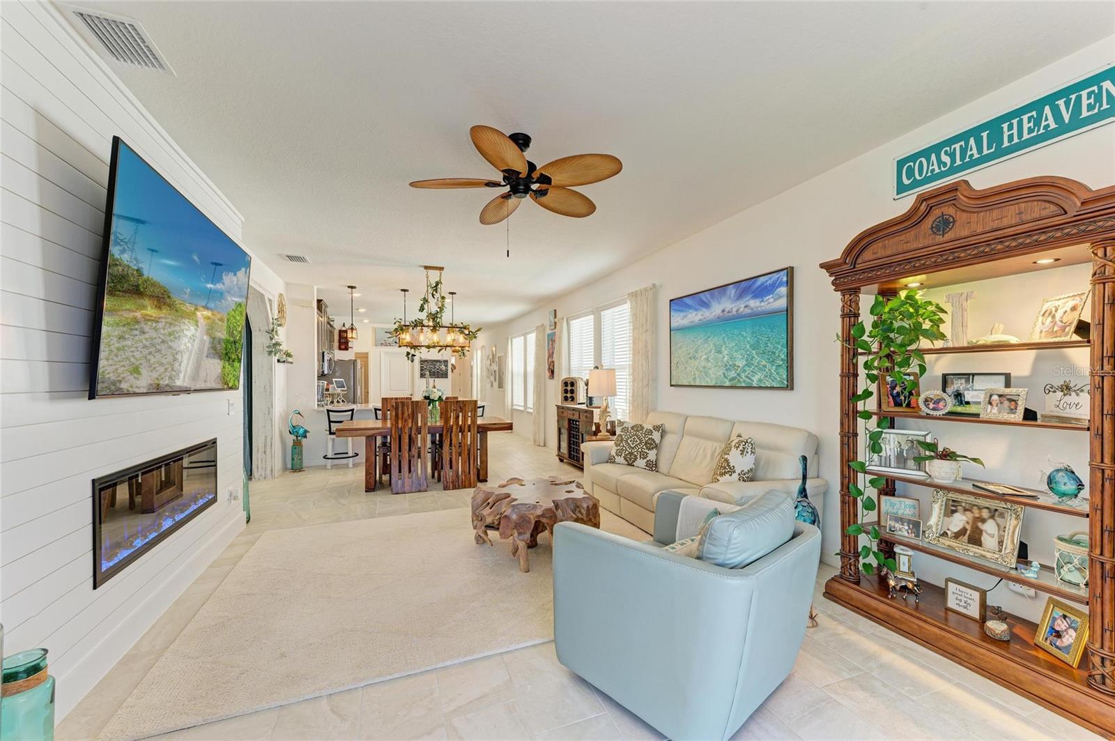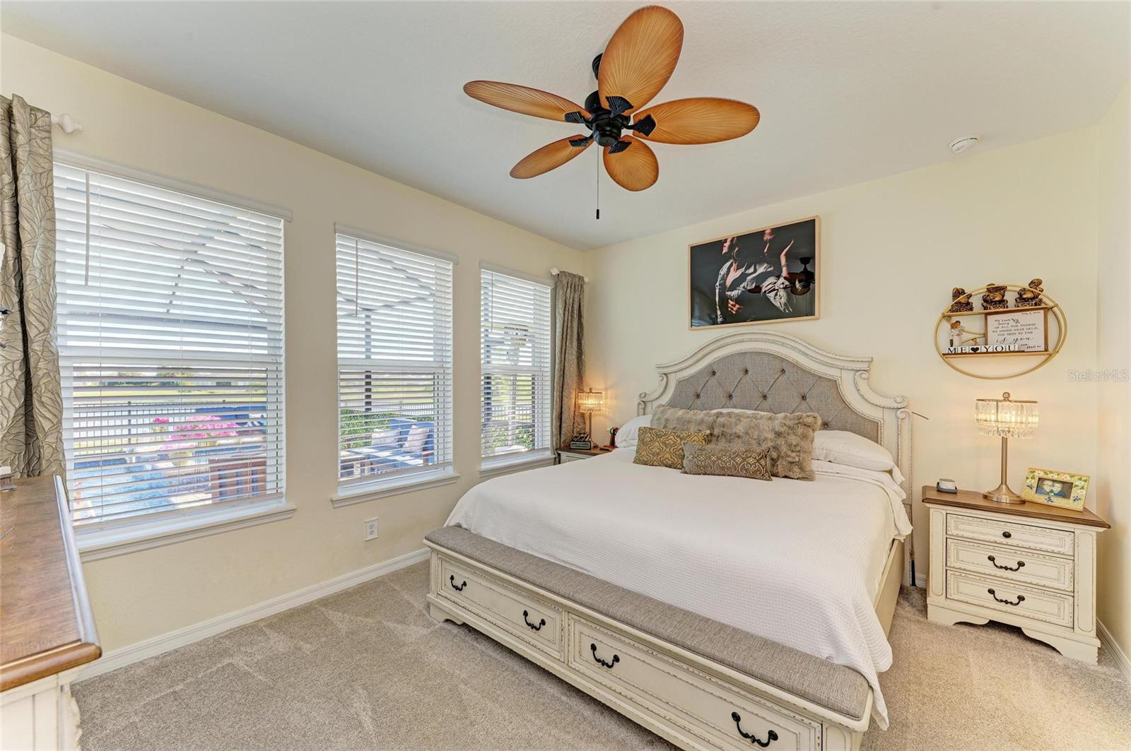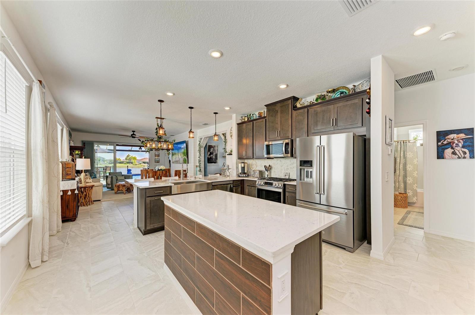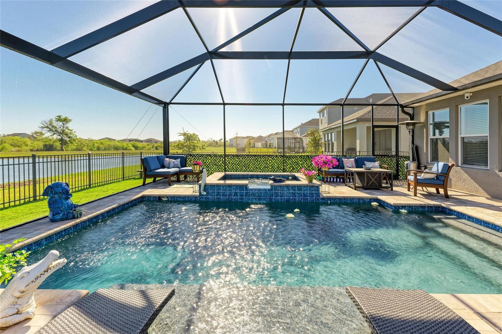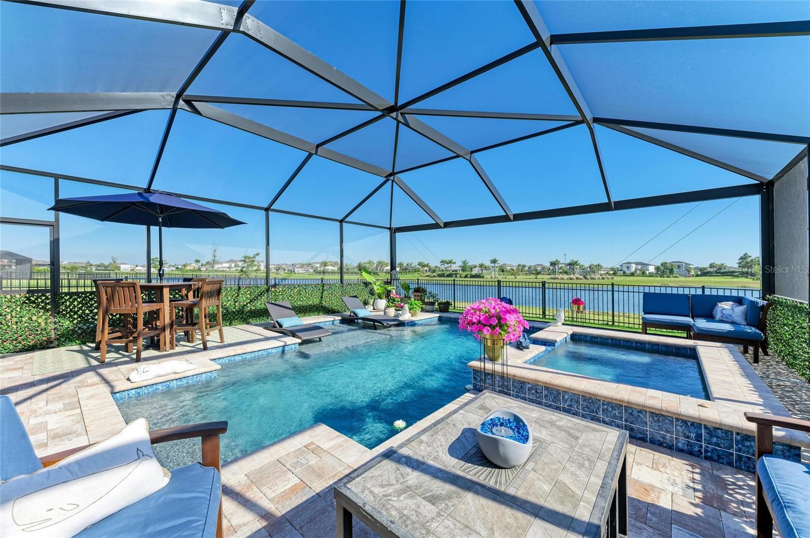 Discover your dream home in this magnificent 3 bedroom, 2 bathroom residence, completed in 2024, nestled within the coveted Park East at Azario Community in Lakewood Ranch. This home is a harmonious blend of modern comfort and luxurious living, offering a spectacular water view that creates a serene backdrop to your daily life. As you step inside, you're greeted by a sprawling layout adorned with ceiling fans throughout, ensuring a comfortable atmosphere year-round. In the heart of this home is a stunning kitchen, boasting ample storage and a generous island, perfect for culinary adventures and entertaining guests. The living room exudes warmth and coziness, featuring an electric fireplace that sets the mood for relaxed evenings. Seamlessly transition to the outdoor oasis through the convenient sliding doors, where you'll find an outdoor kitchen and grill, ideal for alfresco dining, and a sparkling lanai pool area that promises endless fun under the sun. The owner's suite is a private sanctuary, complete with an en-suite bathroom a large walk-in shower and dual sinks, catering to your every need. The additional bedrooms are thoughtfully designed, providing comfortable spaces for your loved ones to retreat and relax. Beyond the exceptional features of the house, Park East at Azario Community offers an array of amenities tailored to elevate your living experience. Bask in the sunshine at the community pool, engage in friendly competition on the volleyball or basketball courts, or indulge in various activities on the sports field. Lakewood Ranch, the #1 best-selling multigenerational community in the U.S., provides an unparled lifestyle with easy access to golf courses, shopping, dining, medical facilities, excellent schools, and award-winning beaches. Immerse yourself in the vibrant entertainment scenes at Lakewood Ranch Main Street, Waterside, University Town Park, and downtown Sarasota areas, all just minutes from I-75. Don't miss out on the opportunity to call this remarkable residence your home. Contact us today to schedule a private tour and experience the epitome of modern luxury living in Lakewood Ranch.