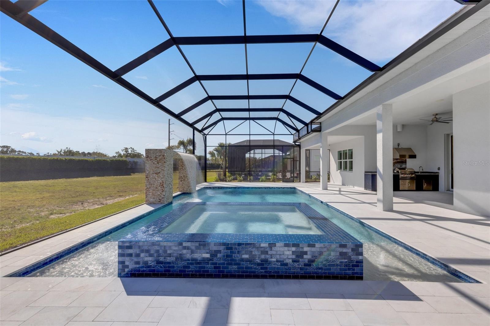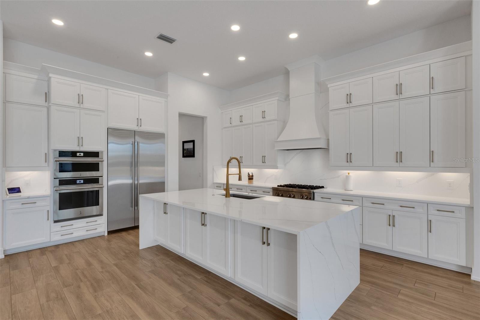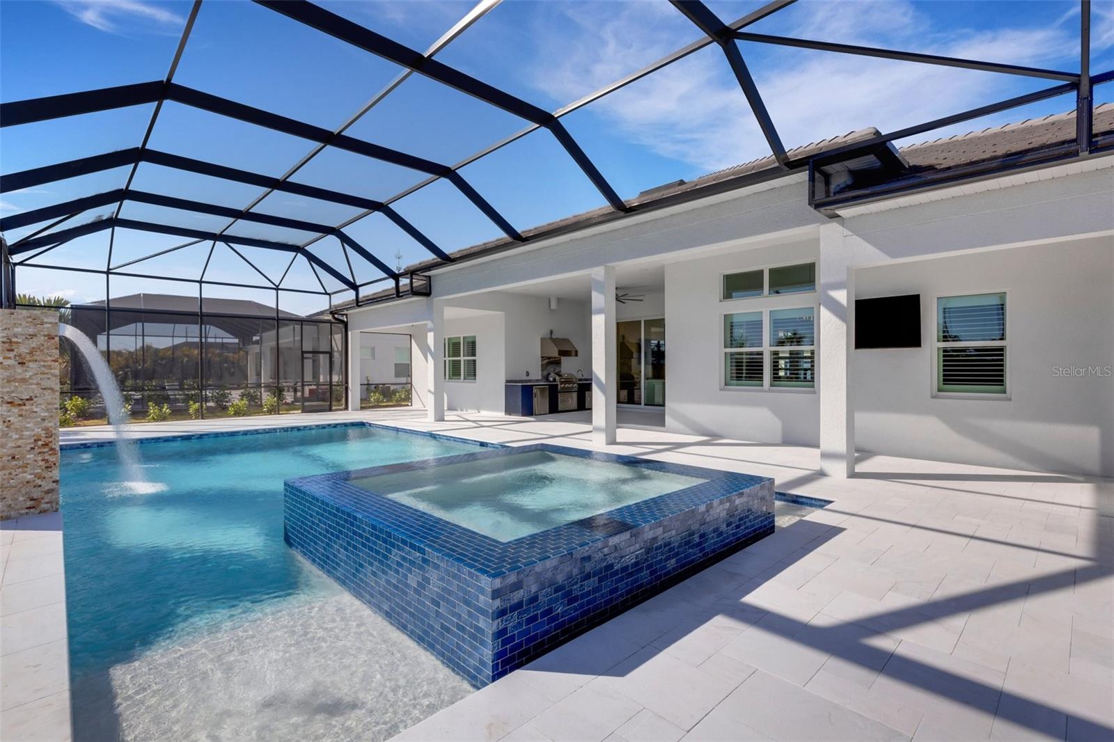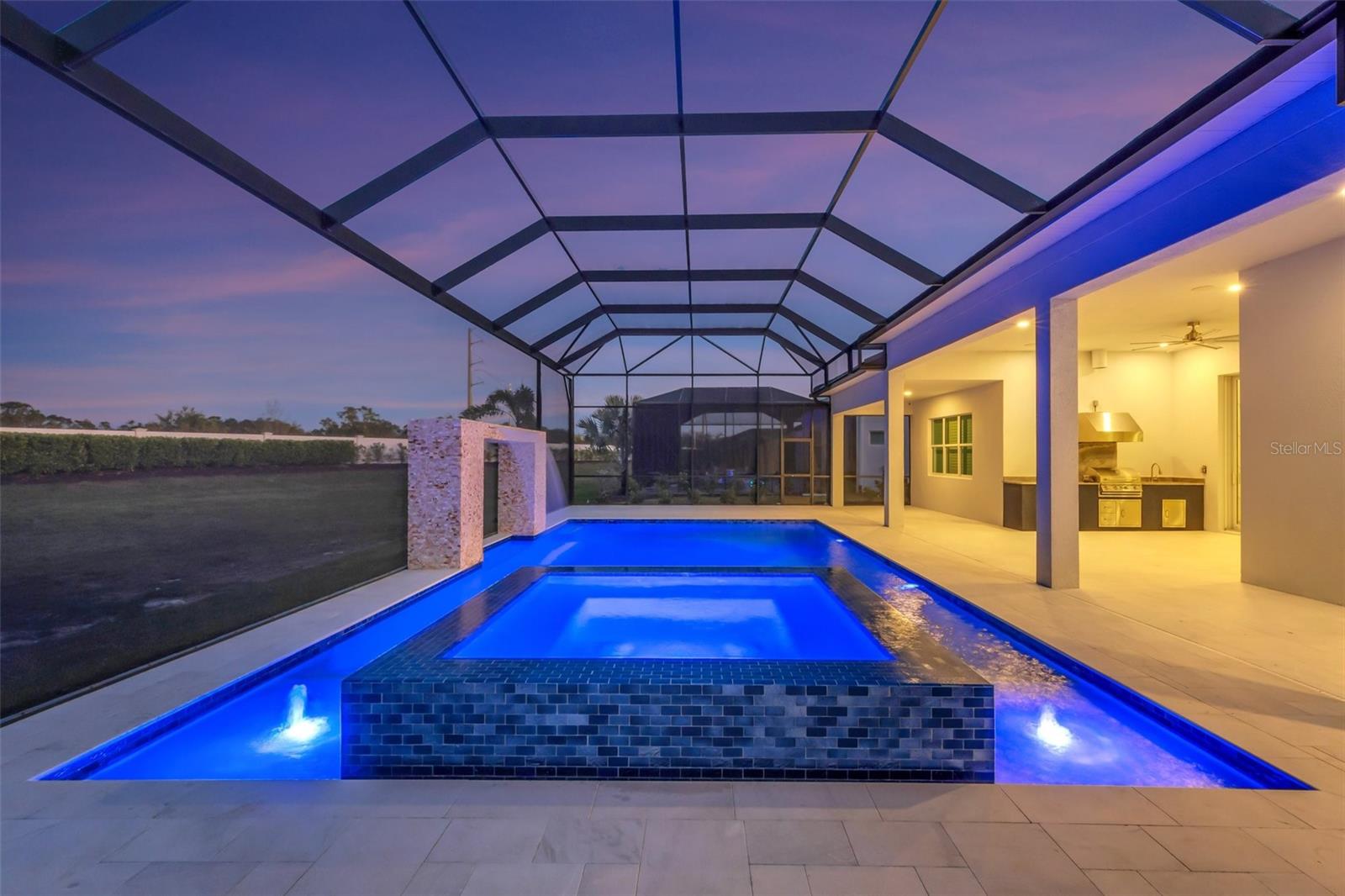 Custom Built and truly turnkey estate in The Isles of Lakewood Ranch. This remarkable home in the heart of Lakewood Ranch boasts over 4,234 sqft of indoor living space. Situated on an oversized lot on a quiet street in the coveted guard-gated community of The Isles at Lakewood Ranch. The primarily one-story residence features 4 bedrooms, 7 bathrooms, plus an additional office/den. In addition, a versatile bonus room with a full en-suite bath that could easily serve as a 5th bedroom, loft, media room, gym or office, The 12-foot ceilings throughout the estate as well as the custom wood wall millwork create a grand ambiance, complemented by exceptional Restoration Hardware light fixtures. The gourmet kitchen is perfect for entertaining, with a 10-foot oversized island, waterfall Quartz countertops, and high-end Jenn Air appliances including a built in 48 inch refrigerator. No carpet with all tile and marble-like flooring enhance the luxurious feel throughout the home. The primary suite occupies its own wing and showcases two walk-in closets with upgraded custom Classy Closet systems. The elegant primary bathroom is a spa-like retreat, featuring an oversized steam shower with a rain head, a freestanding soak tub inside the shower, and marble-like accents from floor to ceiling. All bedrooms have ensuite full bathrooms, each adorned with marble-like accents. High impact windows and Plantation Shutters throughout the home add a touch of sophistication. The outdoor space is equally impressive, with upgraded L-shaped sliding glass doors leading to an oversized lanai and an incredible 40 ft heated saltwater swimming pool and the largest residential jacuzzi you will find in the area at 8x8 with a 360 degree spillover. The 15 ft dramatic waterfall also is equally impressive! The lanai also features a cabana bathroom and gourmet outdoor kitchen with gas grill, refrigerator, sink and quartz countertops and backsplash. The backyard pool and kitchen are literally brand new (completed in March 2025) with a cost of over $200k! The laundry room and mudroom is incredibly spacious, featuring 2 washers and 2 dryers! This smart home is equipped with an enhanced high-speed network, security cameras, and indoor and outdoor surround sound. The Isles at Lakewood Ranch is renowned for its premier amenities, including The Pier house with a full monthly social calendar, resort-style and lap pools, fitness center, tennis, pickleball, fishing pier, and nature trail. The affordable HOA fee covers all yard care and irrigation maintenance. This exclusive enclave is near UTC Shopping, Gulf Beaches, Downtown Sarasota, A-rated schools, and more. Truly a turnkey masterpiece in a prime location!