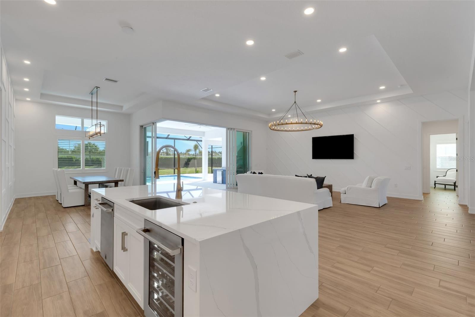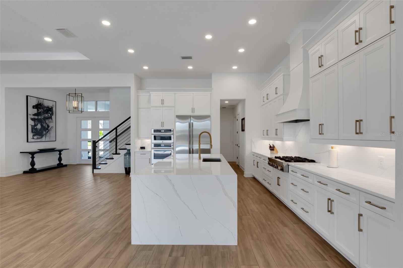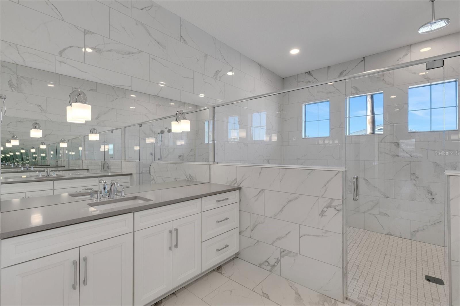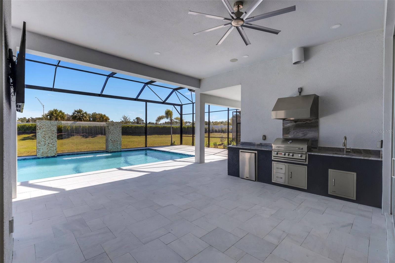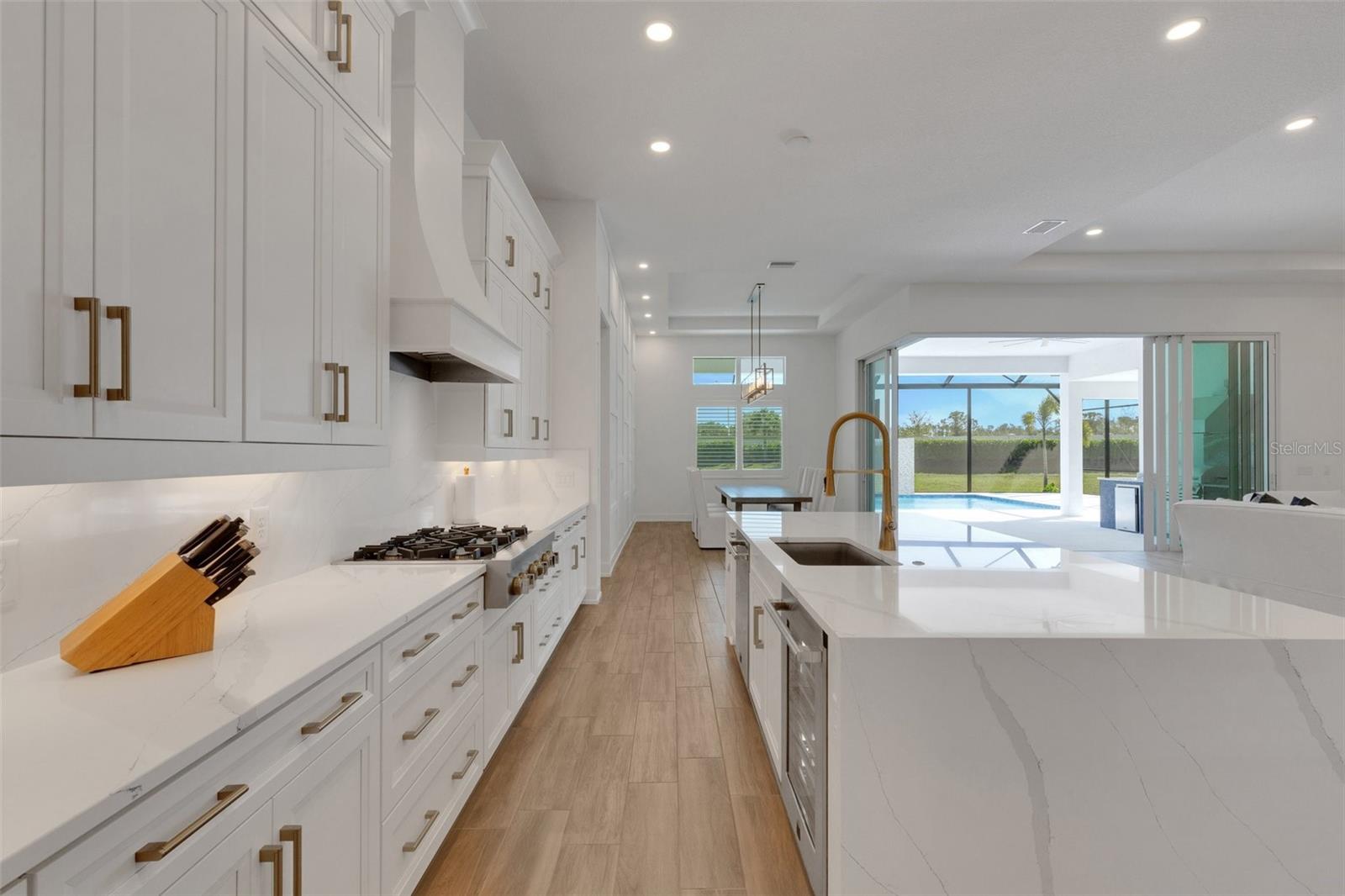 Custom Built and truly turnkey estate in The Isles of Lakewood Ranch. This remarkable home in the heart of Lakewood Ranch boasts over 4,234 sqft of indoor living space. Situated on an oversized lot on a quiet street in the coveted guard-gated community of The Isles at Lakewood Ranch. The primarily one-story residence features 4 bedrooms, 7 bathrooms, plus an additional office/den. In addition, a versatile bonus room with a full en-suite bath that could easily serve as a 5th bedroom, loft, media room, gym or office, The 12-foot ceilings throughout the estate as well as the custom wood wall millwork create a grand ambiance, complemented by exceptional Restoration Hardware light fixtures. The gourmet kitchen is perfect for entertaining, with a 10-foot oversized island, waterfall Quartz countertops, and high-end Jenn Air appliances including a built in 48 inch refrigerator. No carpet with all tile and marble-like flooring enhance the luxurious feel throughout the home. The primary suite occupies its own wing and showcases two walk-in closets with upgraded custom Classy Closet systems. The elegant primary bathroom is a spa-like retreat, featuring an oversized steam shower with a rain head, a freestanding soak tub inside the shower, and marble-like accents from floor to ceiling. All bedrooms have ensuite full bathrooms, each adorned with marble-like accents. High impact windows and Plantation Shutters throughout the home add a touch of sophistication. The outdoor space is equally impressive, with upgraded L-shaped sliding glass doors leading to an oversized lanai and an incredible 40 ft heated saltwater swimming pool and the largest residential jacuzzi you will find in the area at 8x8 with a 360 degree spillover. The 15 ft dramatic waterfall also is equally impressive! The lanai also features a cabana bathroom and gourmet outdoor kitchen with gas grill, refrigerator, sink and quartz countertops and backsplash. The backyard pool and kitchen are literally brand new (completed in March 2025) with a cost of over $200k! The laundry room and mudroom is incredibly spacious, featuring 2 washers and 2 dryers! This smart home is equipped with an enhanced high-speed network, security cameras, and indoor and outdoor surround sound. The Isles at Lakewood Ranch is renowned for its premier amenities, including The Pier house with a full monthly social calendar, resort-style and lap pools, fitness center, tennis, pickleball, fishing pier, and nature trail. The affordable HOA fee covers all yard care and irrigation maintenance. This exclusive enclave is near UTC Shopping, Gulf Beaches, Downtown Sarasota, A-rated schools, and more. Truly a turnkey masterpiece in a prime location!