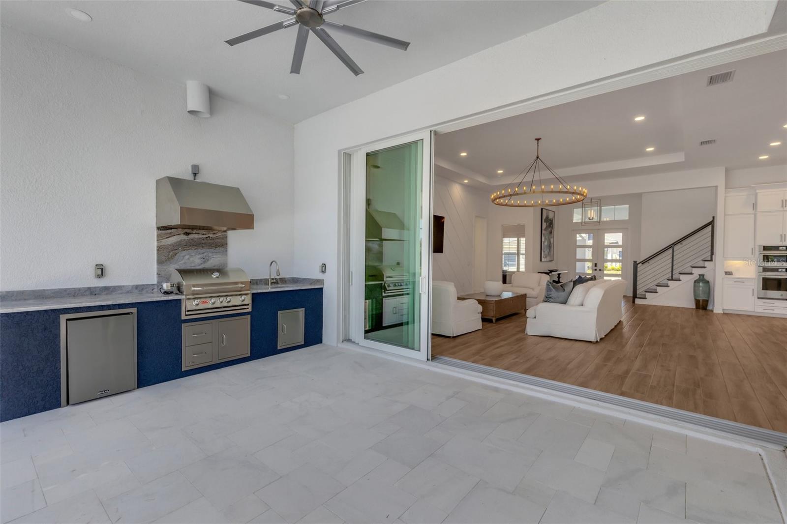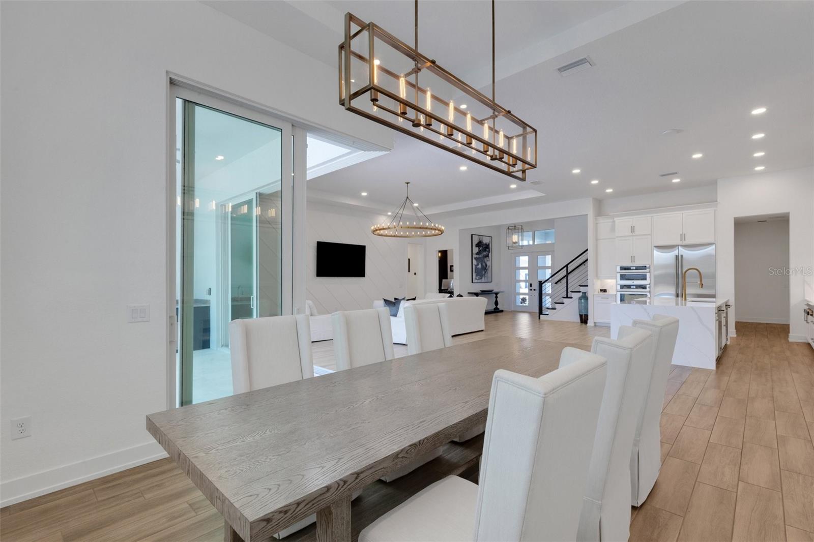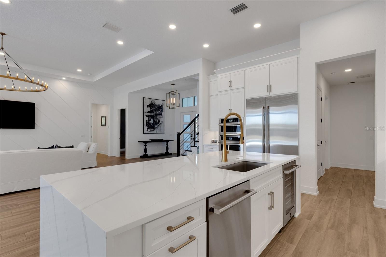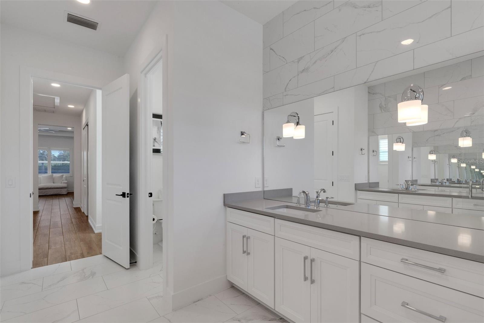 Custom Built and truly turnkey estate in The Isles of Lakewood Ranch. This remarkable home in the heart of Lakewood Ranch boasts over 4,234 sqft of indoor living space. Situated on an oversized lot on a quiet street in the coveted guard-gated community of The Isles at Lakewood Ranch. The primarily one-story residence features 4 bedrooms, 7 bathrooms, plus an additional office/den. In addition, a versatile bonus room with a full en-suite bath that could easily serve as a 5th bedroom, loft, media room, gym or office, The 12-foot ceilings throughout the estate as well as the custom wood wall millwork create a grand ambiance, complemented by exceptional Restoration Hardware light fixtures. The gourmet kitchen is perfect for entertaining, with a 10-foot oversized island, waterfall Quartz countertops, and high-end Jenn Air appliances including a built in 48 inch refrigerator. No carpet with all tile and marble-like flooring enhance the luxurious feel throughout the home. The primary suite occupies its own wing and showcases two walk-in closets with upgraded custom Classy Closet systems. The elegant primary bathroom is a spa-like retreat, featuring an oversized steam shower with a rain head, a freestanding soak tub inside the shower, and marble-like accents from floor to ceiling. All bedrooms have ensuite full bathrooms, each adorned with marble-like accents. High impact windows and Plantation Shutters throughout the home add a touch of sophistication. The outdoor space is equally impressive, with upgraded L-shaped sliding glass doors leading to an oversized lanai and an incredible 40 ft heated saltwater swimming pool and the largest residential jacuzzi you will find in the area at 8x8 with a 360 degree spillover. The 15 ft dramatic waterfall also is equally impressive! The lanai also features a cabana bathroom and gourmet outdoor kitchen with gas grill, refrigerator, sink and quartz countertops and backsplash. The backyard pool and kitchen are literally brand new (completed in March 2025) with a cost of over $200k! The laundry room and mudroom is incredibly spacious, featuring 2 washers and 2 dryers! This smart home is equipped with an enhanced high-speed network, security cameras, and indoor and outdoor surround sound. The Isles at Lakewood Ranch is renowned for its premier amenities, including The Pier house with a full monthly social calendar, resort-style and lap pools, fitness center, tennis, pickleball, fishing pier, and nature trail. The affordable HOA fee covers all yard care and irrigation maintenance. This exclusive enclave is near UTC Shopping, Gulf Beaches, Downtown Sarasota, A-rated schools, and more. Truly a turnkey masterpiece in a prime location!