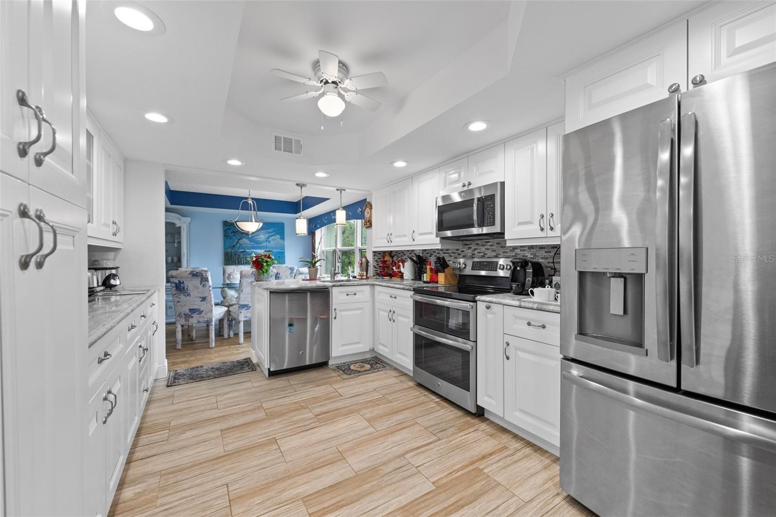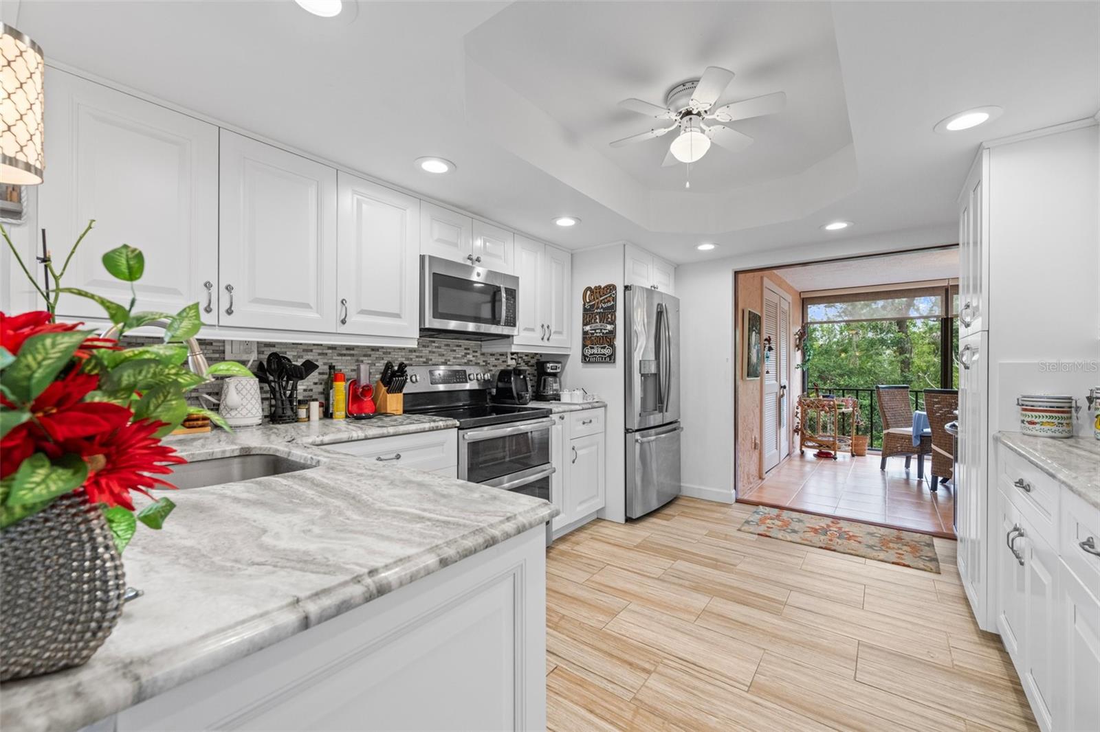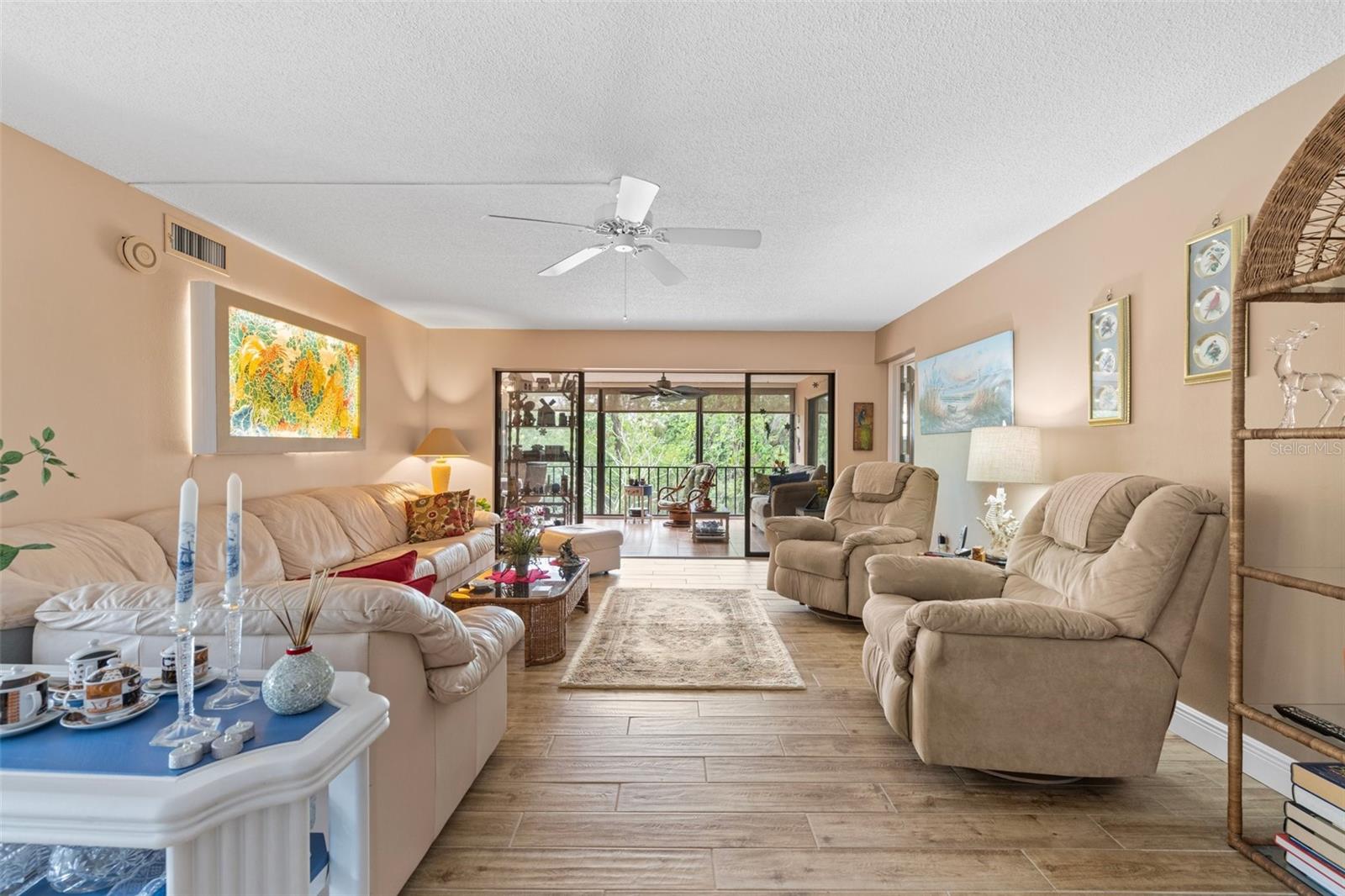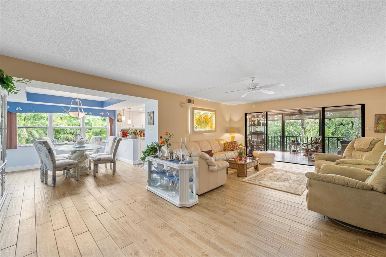 This condo is designer-style with Central A/C , has been fully renovated (with new windows, porcelain tiled floors, to include all washrooms walls, modern appliances and fixtures, modern furniture and decorations are optional. It has 3 bedrooms and 2 full bathrooms and is located on the second floor of a 3 story concrete building with an elevator. It has an "assigned covered parking space" and may include a Lincoln Town car with low mileage and in excellent condition. All this in a quiet, vibrant 55 plus PET friendly community. Timber Creek is designated as a Bird Sanctuary by the State of Florida. The large Master bedroom includes a renovated bathroom with double vanity, shower and a large walk-in closet. The 2 bedroom guests area is separated by an "in wall sliding partition", which offers additional privacy for guests and with a full bathroom. This condo has a spacious, luxurious kitchen including modern appliances, hidden spice rack and a wine cooler. It has fabulous views of the golf course, no neighbors on 3 sides and is only minutes to the beaches. It has a large enclosed lanai with full size tinted weather proof sliding glass doors and screens. The community has a well equipped fitness room, Clubhouse, pool, spa, sauna, large recreation area, kitchen, tennis/pickle ball court, shuffle-board , and a 9 HOLE PAR 3 GOLF COURSE with seasonal membership option for owners, This is great for your short game. Sarasota Bradenton Int airport is 15 minutes away, Miami, Orlando, Tampa all within range. ANNA MARIA ISLAND is 5 miles away and you can safely ride your bikes to AMI. ROBINSON PRESERVE, a 650 acres wilderness has fabulous walking trails, the fishing is great from shore, piers, docks and at the beach.