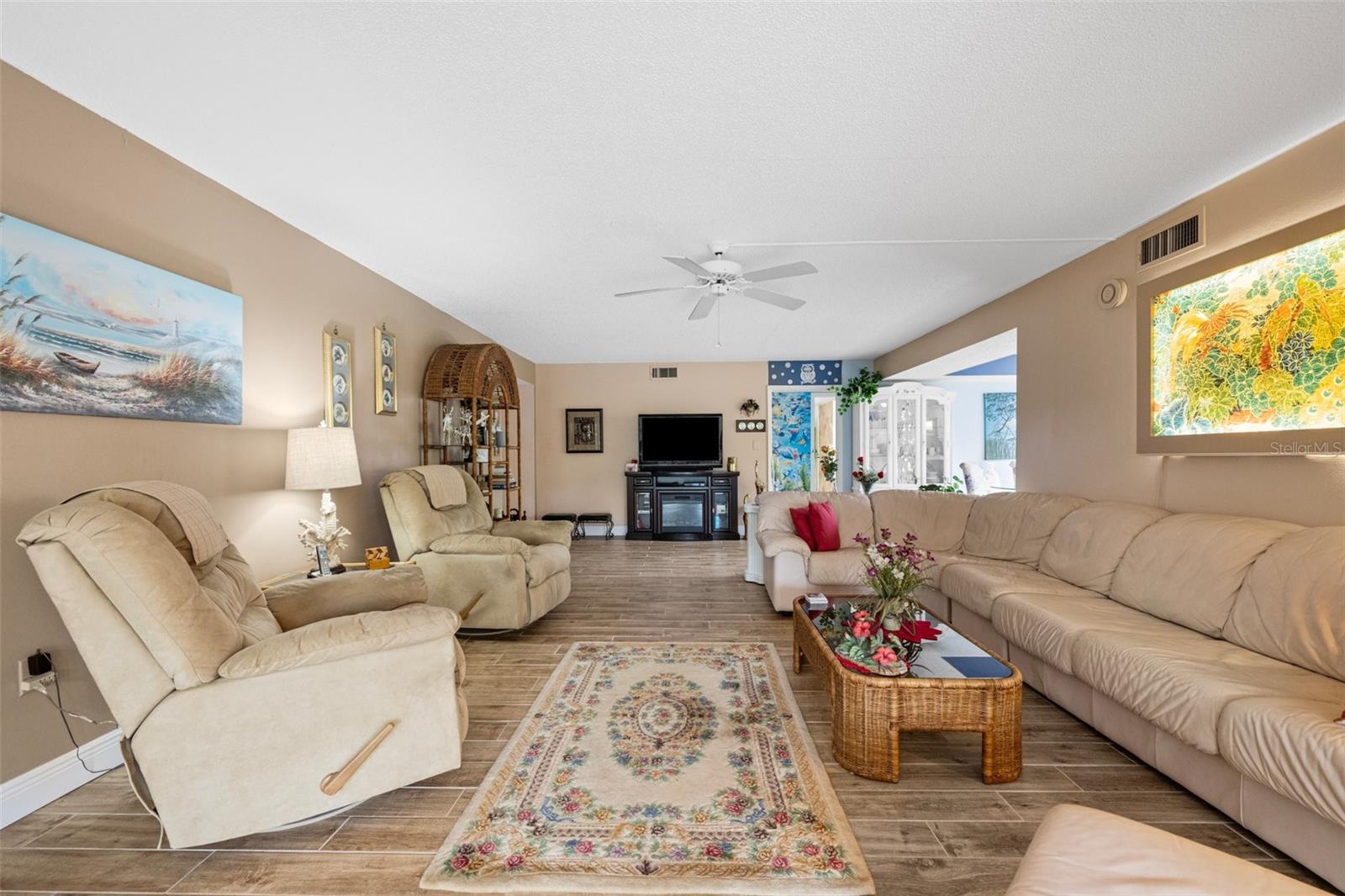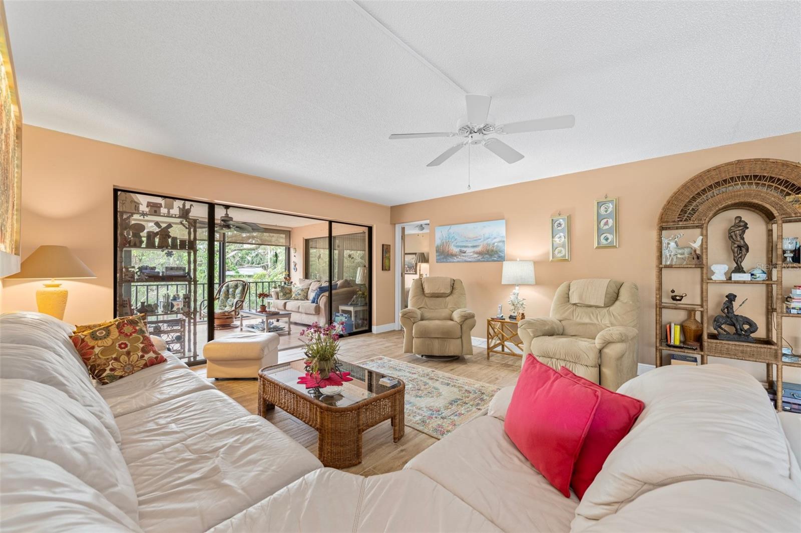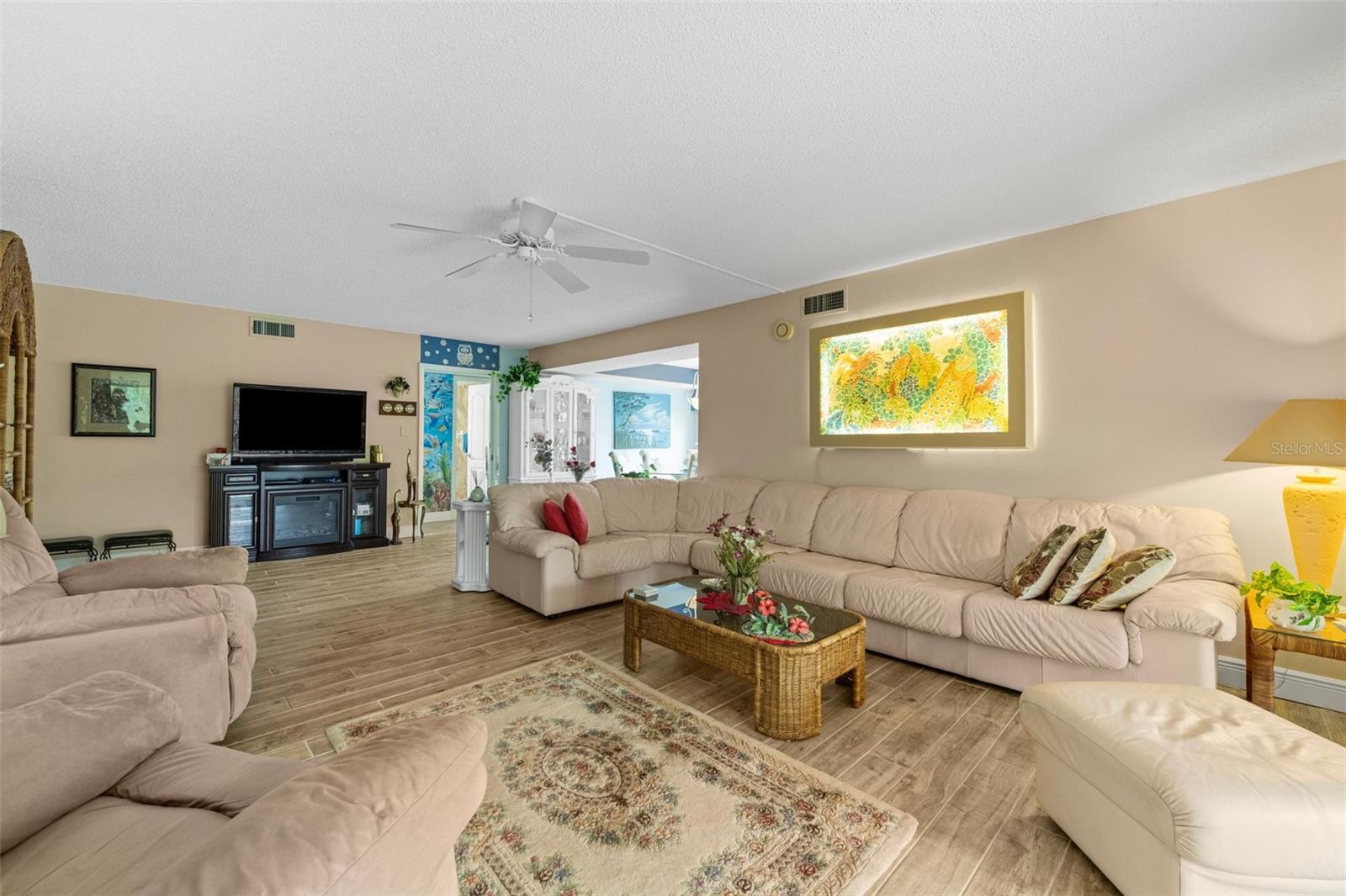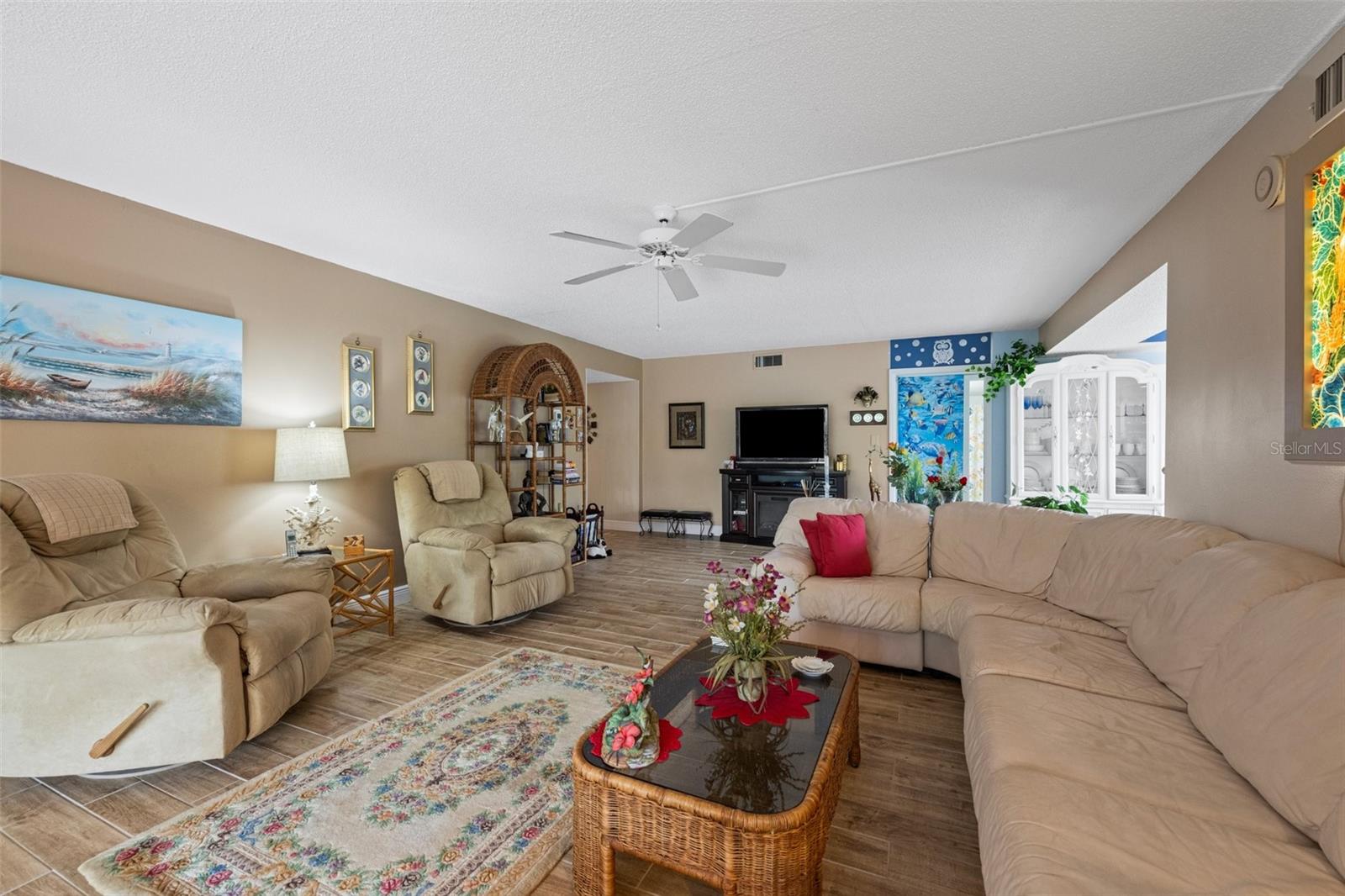 This condo is designer-style with Central A/C , has been fully renovated (with new windows, porcelain tiled floors, to include all washrooms walls, modern appliances and fixtures, modern furniture and decorations are optional. It has 3 bedrooms and 2 full bathrooms and is located on the second floor of a 3 story concrete building with an elevator. It has an "assigned covered parking space" and may include a Lincoln Town car with low mileage and in excellent condition. All this in a quiet, vibrant 55 plus PET friendly community. Timber Creek is designated as a Bird Sanctuary by the State of Florida. The large Master bedroom includes a renovated bathroom with double vanity, shower and a large walk-in closet. The 2 bedroom guests area is separated by an "in wall sliding partition", which offers additional privacy for guests and with a full bathroom. This condo has a spacious, luxurious kitchen including modern appliances, hidden spice rack and a wine cooler. It has fabulous views of the golf course, no neighbors on 3 sides and is only minutes to the beaches. It has a large enclosed lanai with full size tinted weather proof sliding glass doors and screens. The community has a well equipped fitness room, Clubhouse, pool, spa, sauna, large recreation area, kitchen, tennis/pickle ball court, shuffle-board , and a 9 HOLE PAR 3 GOLF COURSE with seasonal membership option for owners, This is great for your short game. Sarasota Bradenton Int airport is 15 minutes away, Miami, Orlando, Tampa all within range. ANNA MARIA ISLAND is 5 miles away and you can safely ride your bikes to AMI. ROBINSON PRESERVE, a 650 acres wilderness has fabulous walking trails, the fishing is great from shore, piers, docks and at the beach.