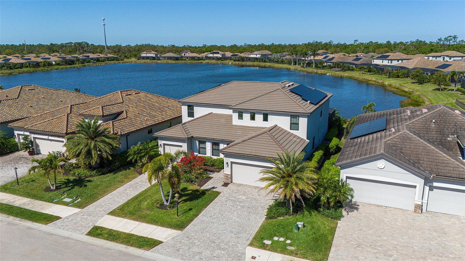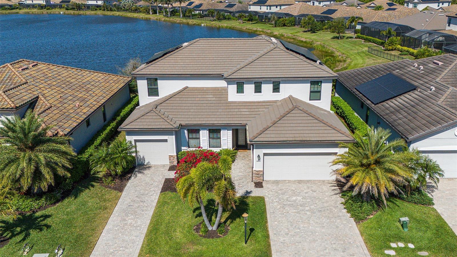 STELLAR NEW PRICING- GENERATOR/ SOLAR POWER ASSIST/ IMPACT WINDOWS 2nd LEVEL. COME SEE THE DIFFERENCE. Welcome to Polo Run, a premier gated Lakewood Ranch community! This stunning lakefront home offers a versatile floor plan with separate apartment/suite space which is ideal for multi-generational families or the ultimate space for working from home! The dual garage layout also allows for the ultimate in flexibility. This home offers six bedrooms, four and a half bathrooms, and over 3,900 square feet of refined living area. Major selling points are the whole home gas generator, solar panels to help with electricity costs, impact glass windows installed on the second level, and a gas heated pool and spa with forever views. The primary suite is located on the second level and has abundant space for privacy and convenience. The main living level features beautiful diagonally-laid tile, an electric decorative fireplace, and lots of beautiful trim work. The open concept kitchen features granite countertops and stainless steel appliances. The balance of this amazing and spacious home allows for an abundance of uses with plenty of spare bedrooms and space to utilize! Polo Run features great amenities including a community resort-style pool, tennis and pickleball courts, bocce ball, dog park, basketball and on-site fitness center! The feel of the community is amazing with spacious water vistas and sidewalk lined streets. This unique home is truly a special opportunity, schedule your private showing today!