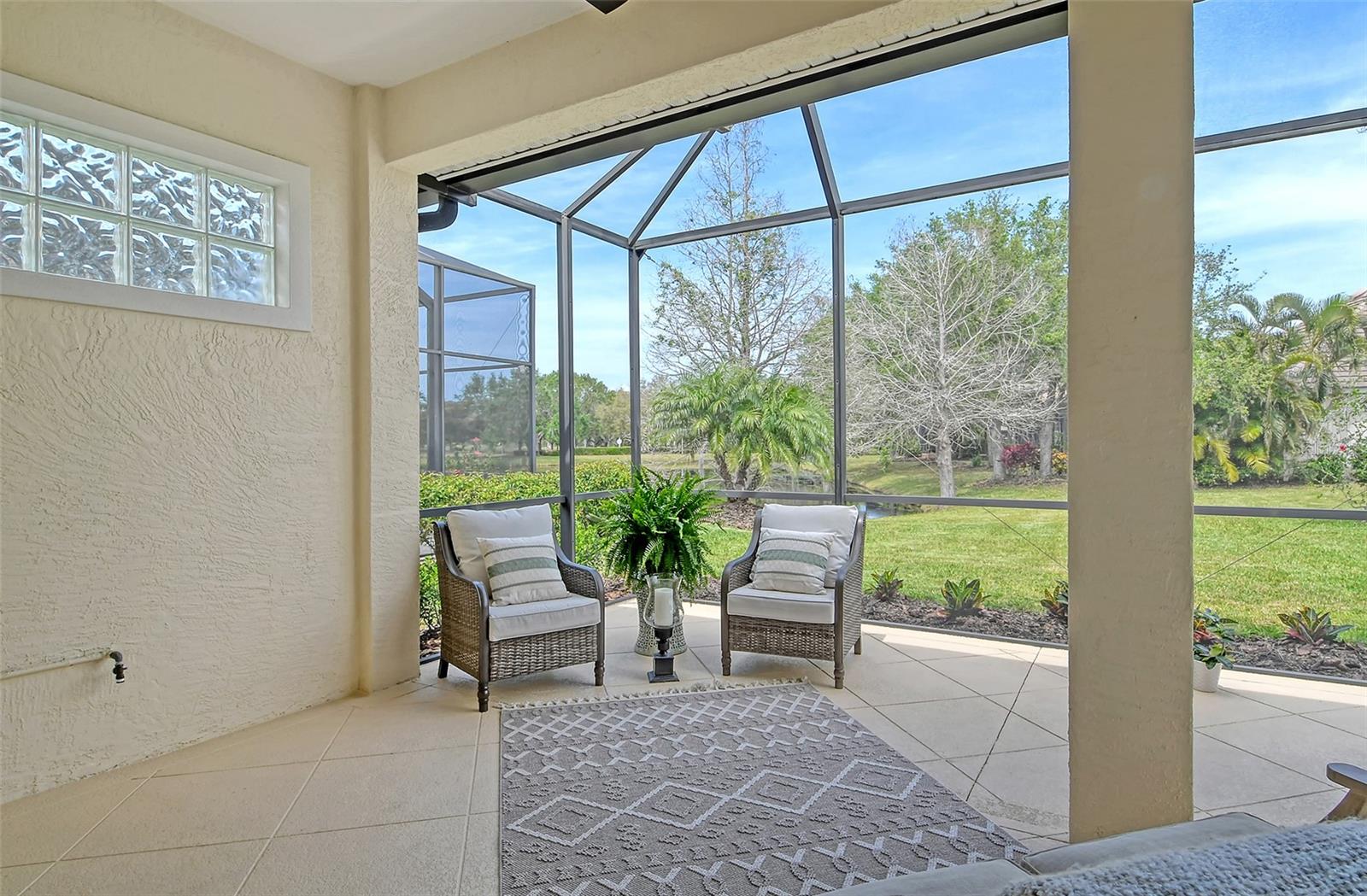Discover effortless Florida living in this beautifully maintained maintenance-free home located in the sought-after Country Club of Lakewood Ranch. Enjoy serene water views from your expanded lanai, perfect for relaxing or entertaining. This charming 2-bedroom + den/office home showcases a desirable great room floor plan with light neutral tones, tile flooring throughout the living areas, and engineered wood in the bedrooms. The chef’s kitchen boasts staggered cabinetry, silestone countertops, and a cozy breakfast nook with sliding doors that bathe the space in natural light. A separate formal dining room adds an elegant touch, while the spacious living area features two sets of sliders leading to the lanai for seamless indoor-outdoor living. Retreat to the primary suite, a private oasis with two custom walk-in closets, tray ceiling, and a relaxing sitting area. The spa-like primary bath includes dual vanities, a garden tub, and a walk-in shower. Recent updates include fresh interior paint, stylish upgraded light fixtures and fans, modern cabinetry hardware, plantation shutters and shades, hurricane shutters on front and side windows, electric hurricane shutter on front door, and enhanced landscaping. The Orchid Island neighborhood offers lawn care, a community pool, and low-maintenance fees for stress-free living. Lakewood Ranch is a premier master-planned community featuring a private Country Club, four championship golf courses, 18 lighted tennis courts, a top-tier athletic center, a polo club, scenic parks, and walking trails. Plus, you're just minutes from Waterside Place, Lakewood Ranch Main Street, University Town Center, and world-class Gulf Coast beaches. Experience the best of Florida living—schedule your private showing today!