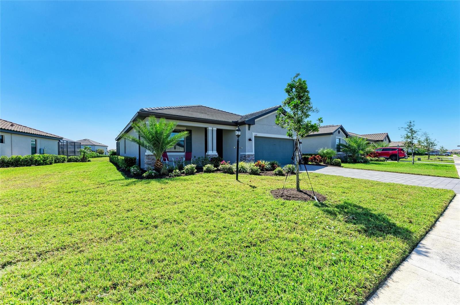 Check out the PRIME TIME DEAL! ! 30k price improvement ! Bring Offers!!Welcome to Lorraine Lakes, the premier community in Lakewood Ranch! Why wait for new when this home is ready and meticulously upgraded. This stunning home offers 1,849 sq. ft. of thoughtfully designed living space, featuring 3 bedrooms, 3 bathrooms, and breathtaking water views on a quiet cul-de-sac with lush all around landscaping. The split floor plan ensures privacy, while the open-concept design seamlessly connects the dining room, kitchen, and family room—perfect for modern living. A large glass sliding door leads to the 18 x 8 covered lanai and extended 25 x15 lanai with marble tile, creating an effortless indoor-outdoor flow for entertaining. Enjoy phenomenal west-facing views from the front yard, where stunning sunsets paint the sky each evening. Freshly painted throughout with designer paint, all new Stainless Steel Appliances, and washer and dryer included. The gourmet kitchen features a huge island with quartz counters, breakfast bar and walk-in pantry. Each bedroom has its own bathroom for easy living. The newly enclosed front porch keeps out those pesky bugs. The epoxied garage floor offers several benefits that enhance both the functionality and aesthetics of your space. Enjoy the added convenience of generator hook up.Living in Lorraine Lakes means access to resort-style amenities, including a resort pool, lap pool, splash pad and Tiki Bar, hot tub, an indoor basketball court, a fitness center, putting green, Coffee Bar, Shuffle Board, Beach Volleyball, Arcade, sports courts, Bocce Ball, a playground, and scenic walking trails. Plus, the community’s on-site bar and restaurant add an extra touch of convenience. With top-rated schools, Waterside Place, UTC Mall, and Siesta Key Beach just minutes away, you’re never far from world-class shopping, dining, and entertainment. The low HOA fees include lawncare, irrigation, cable TV/Internet and all the fabulous amenities. This home perfectly blends luxury, comfort, and convenience in one of Florida’s most sought-after communities. Don’t miss out—schedule your private showing today and experience the ultimate Lakewood Ranch lifestyle! (CDD included in taxes)